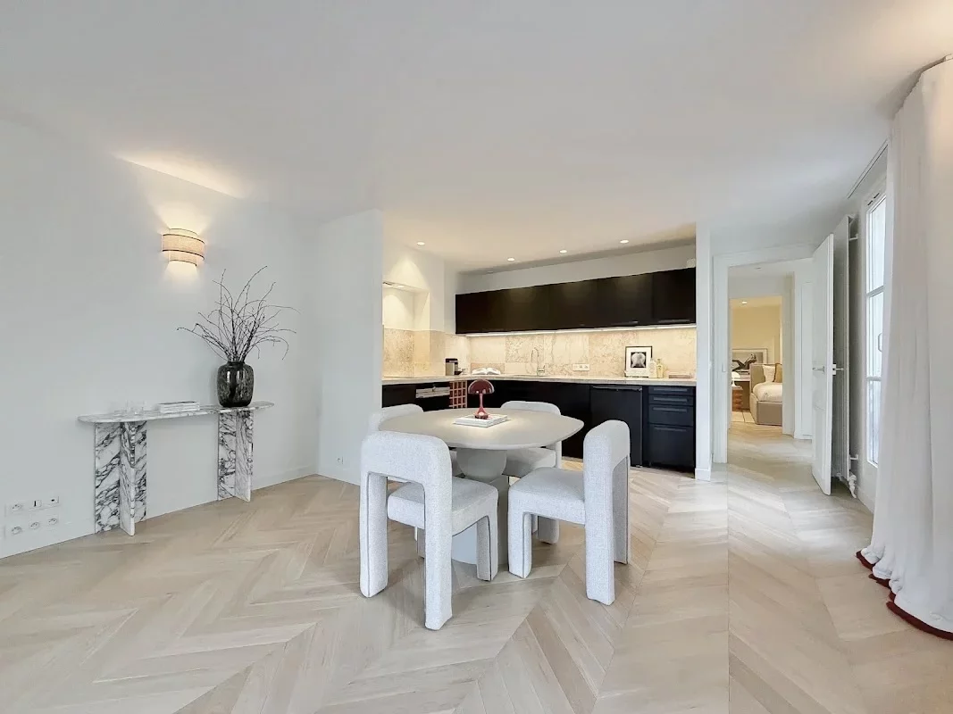 In a quiet location, this light-filled 72.62sqm Carrez law apartment is situated on the third floor of a beautiful building, Place du March, Saint-Honor. The space-saving layout comprises an entrance hall, living room with open kitchen, bedroom, study, shower room and guest toilet.