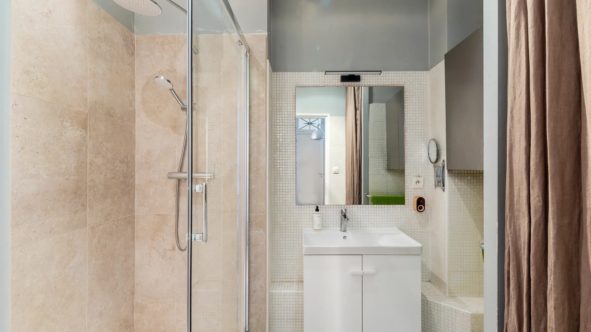 Its perfectly optimized layout includes a west-facing living room extended by a veranda opening onto a lovely 15.50m² terrace, a kitchen opening onto the living room, two bedrooms, a shower room and separate toilet.