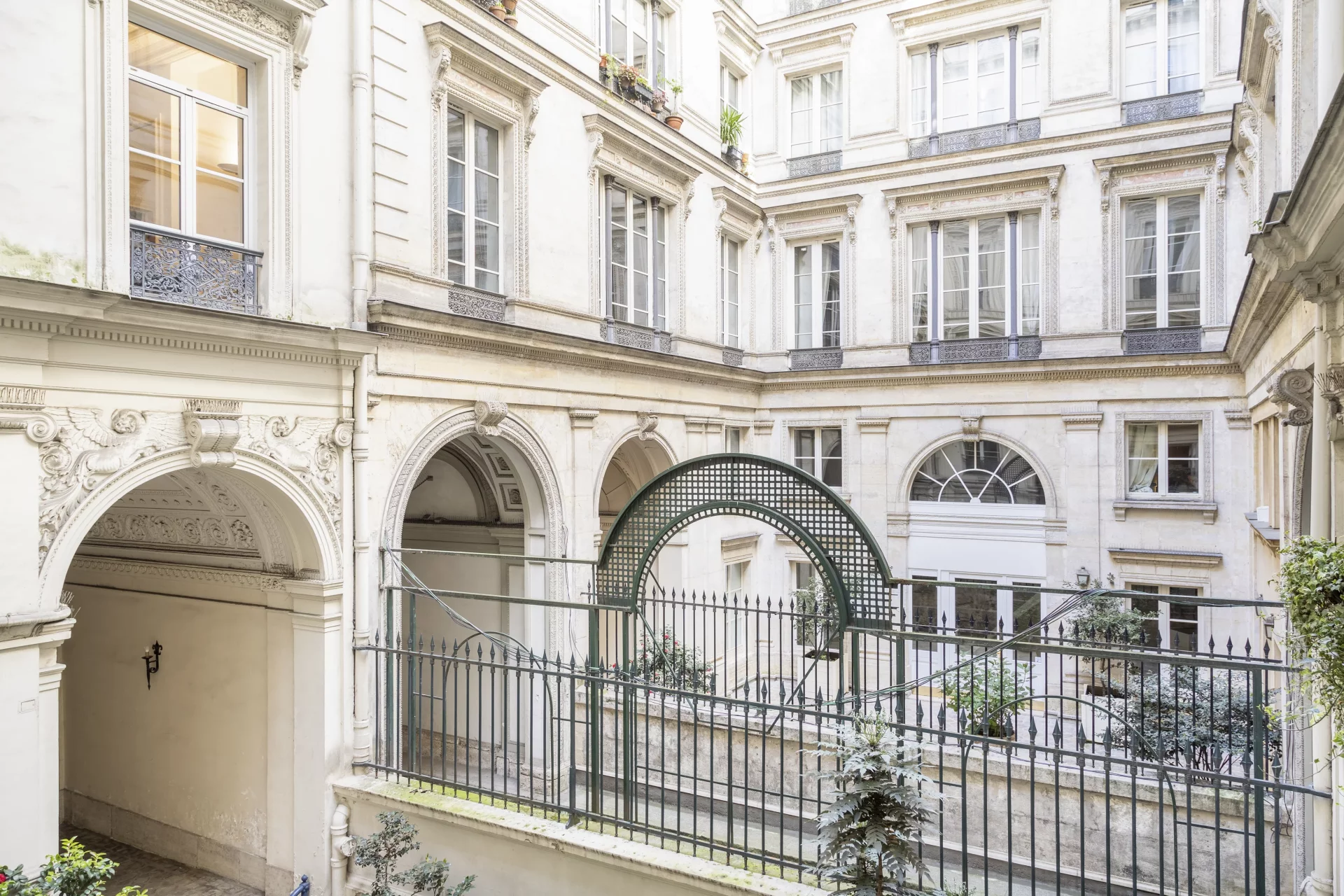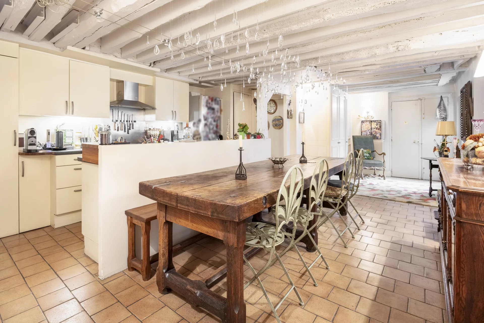 In an attractive condominium with janitor, 132.20sqm loi Carrez walk-through apartment on second floor with elevator. In absolute calm, it overlooks two courtyards. It comprises an entrance hall opening onto a dining room with open kitchen, a large living room, two bedrooms, one of which is very large (possibility of a third bedroom), a bathroom with shower and bath, a storeroom, separate toilet and plenty of built-in storage space.