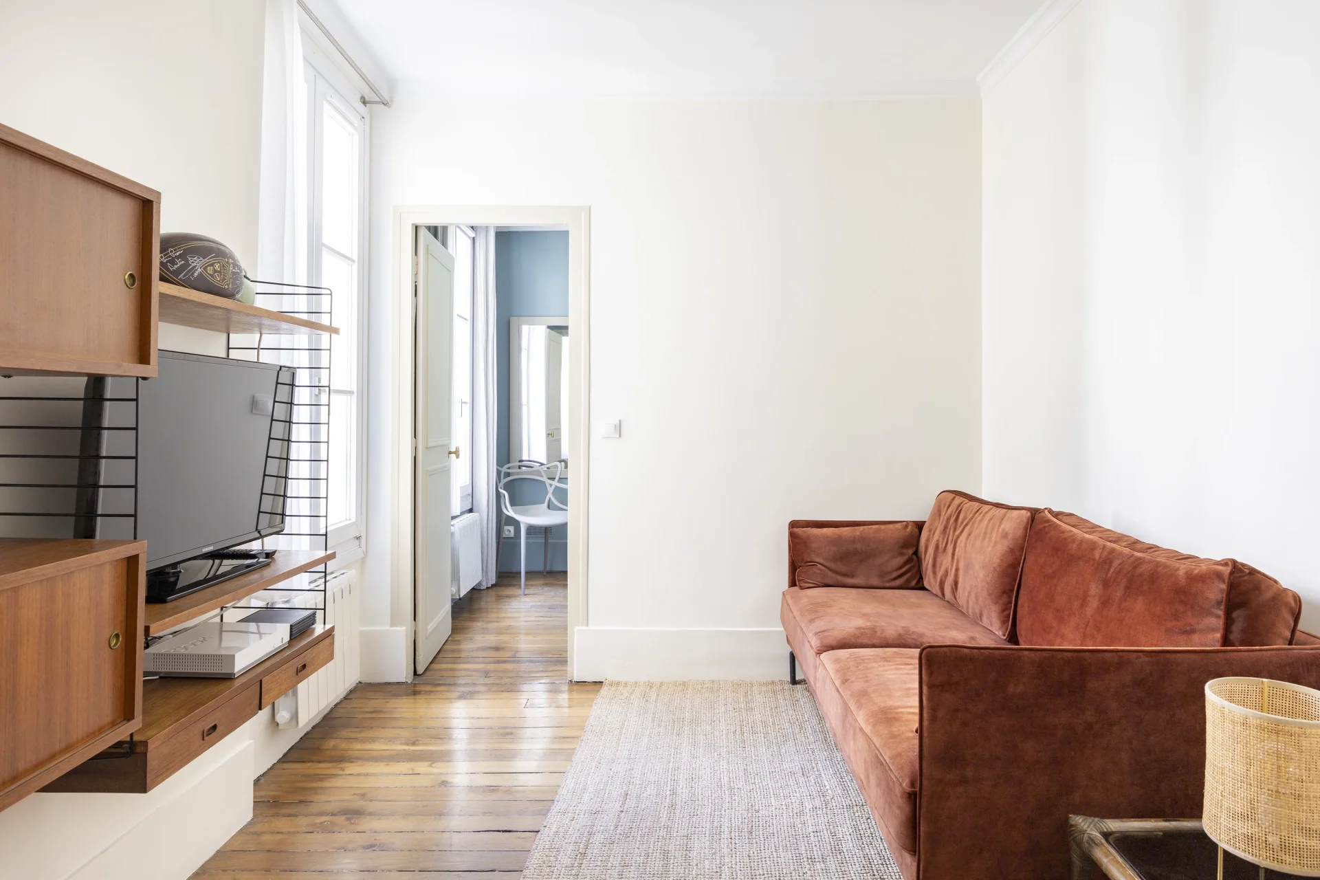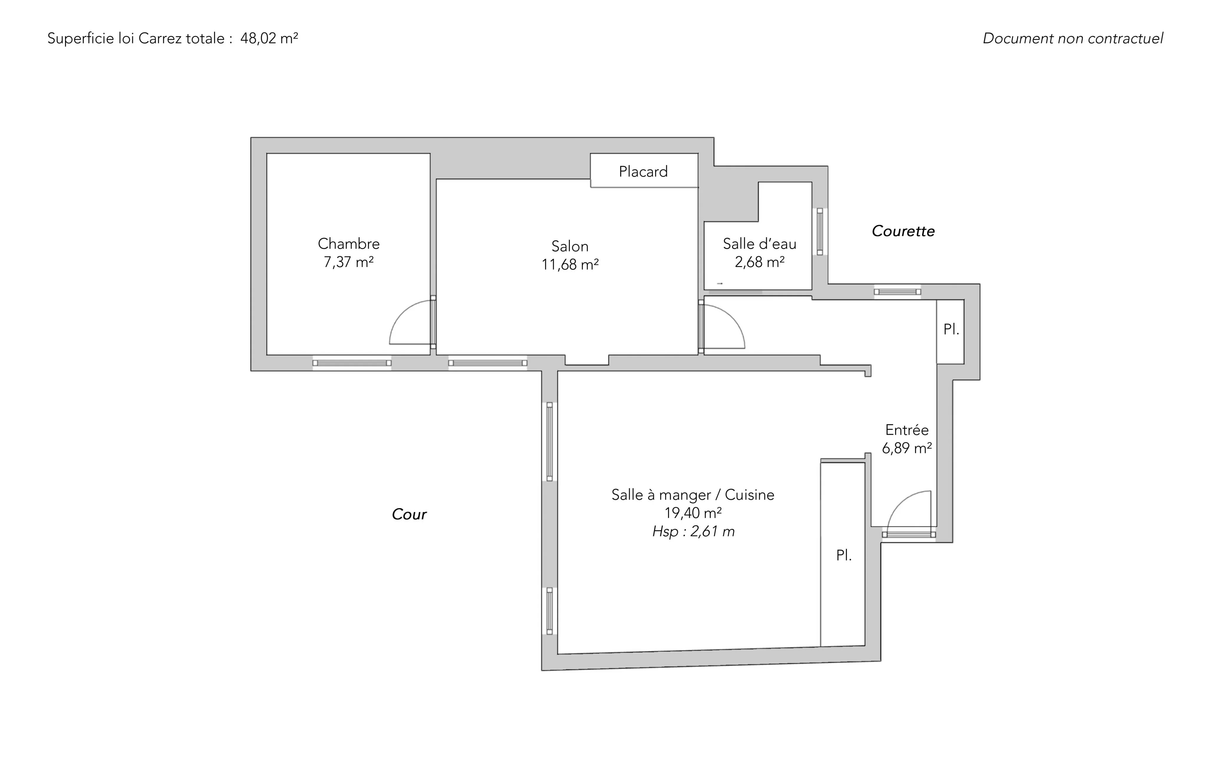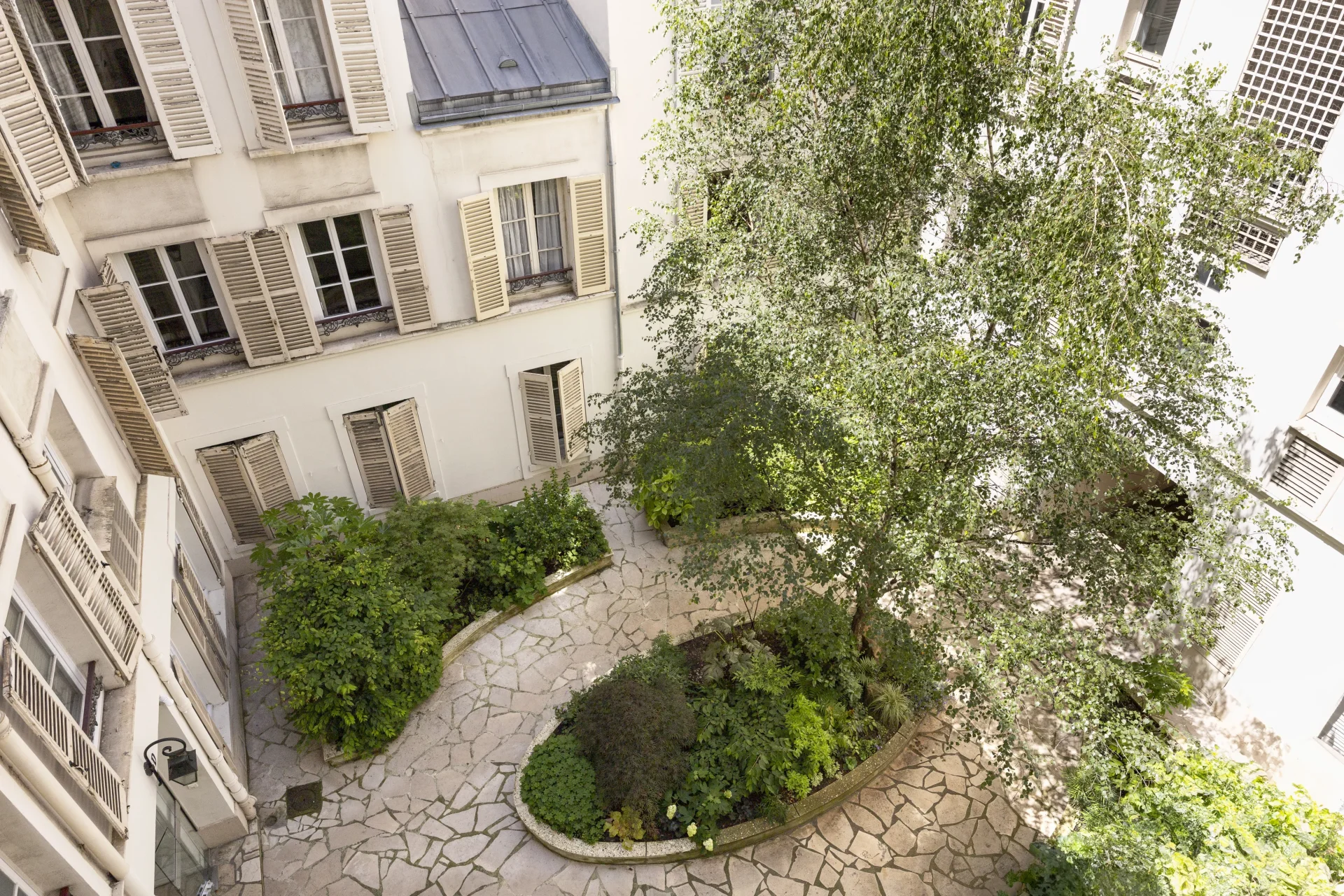 The property, in excellent general condition, is bright and sunny, very quiet and overlooks a pretty, large wooded courtyard.