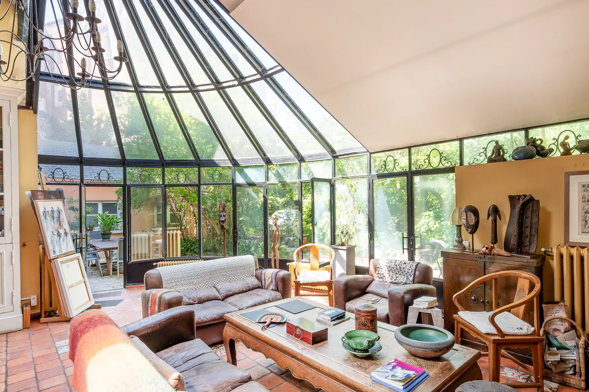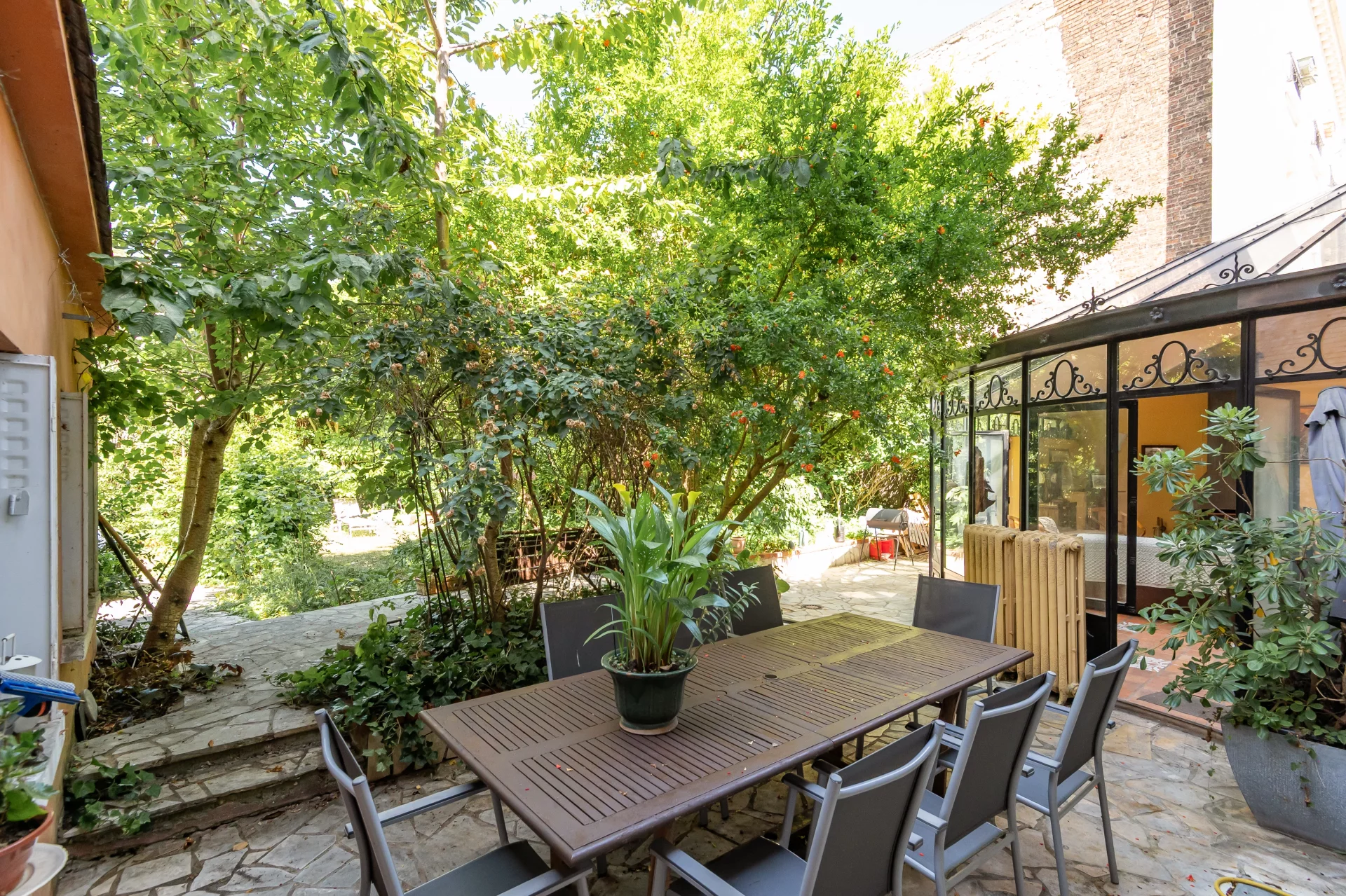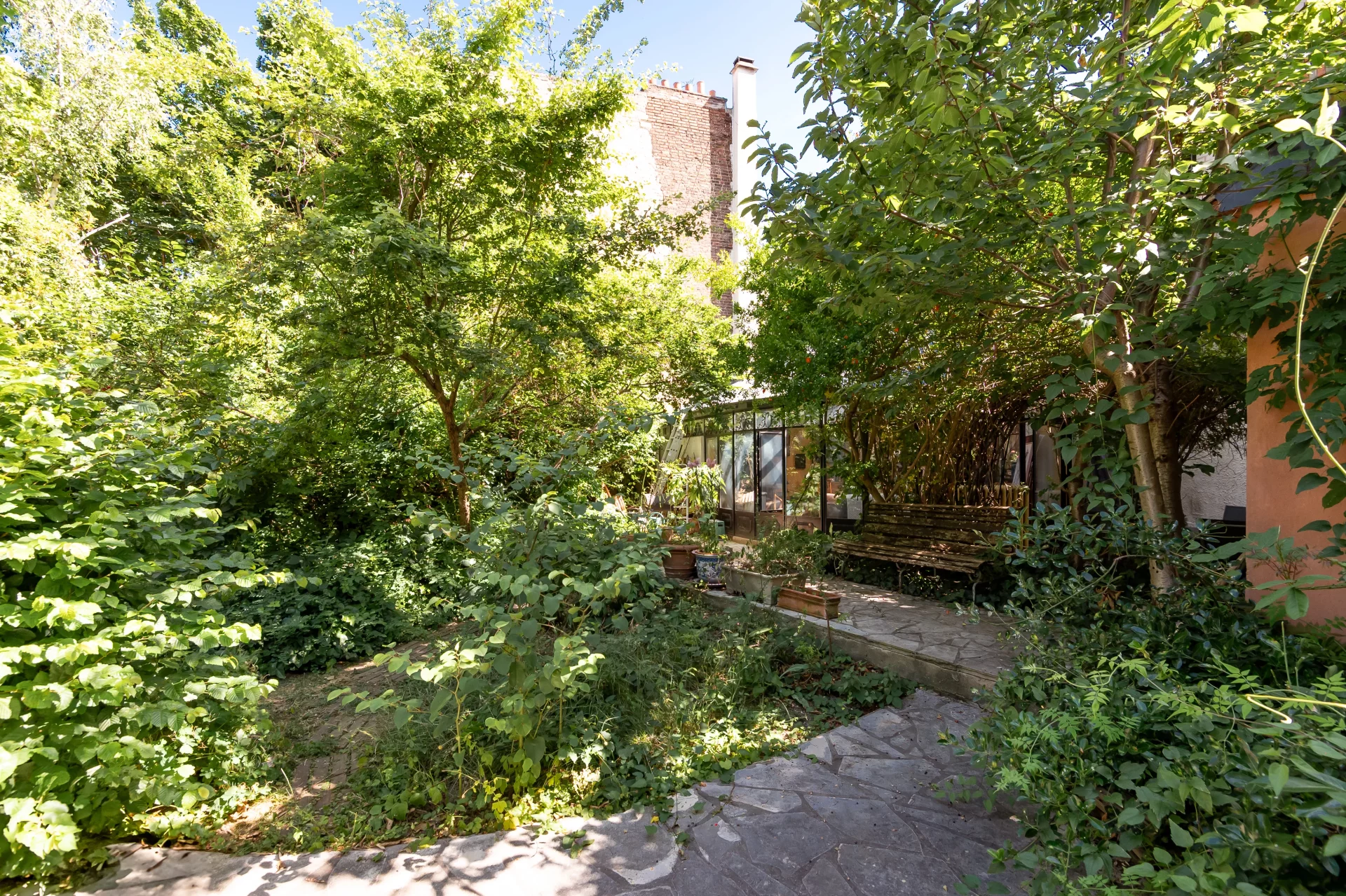 In the heart of the residential district of Saint-Ouen and close to line 14, superb family home of 190.09sqm of living space built on a plot of 501sqm. On the first level, it includes a spacious living room under glass with more than seven meters of ceiling height, an open kitchen, a master suite with bathroom, an office or bedroom. On the upper floor, three beautiful bedrooms, a bathroom and separate toilet. In the basement, a space converted into a laundry room and storage area. The whole overlooks a magnificent wooded garden without vis-à-vis. Bathed in light from its triple exposure and immersed in greenery, this house offers very beautiful volumes, absolute calm and a very good layout with its five potential bedrooms.