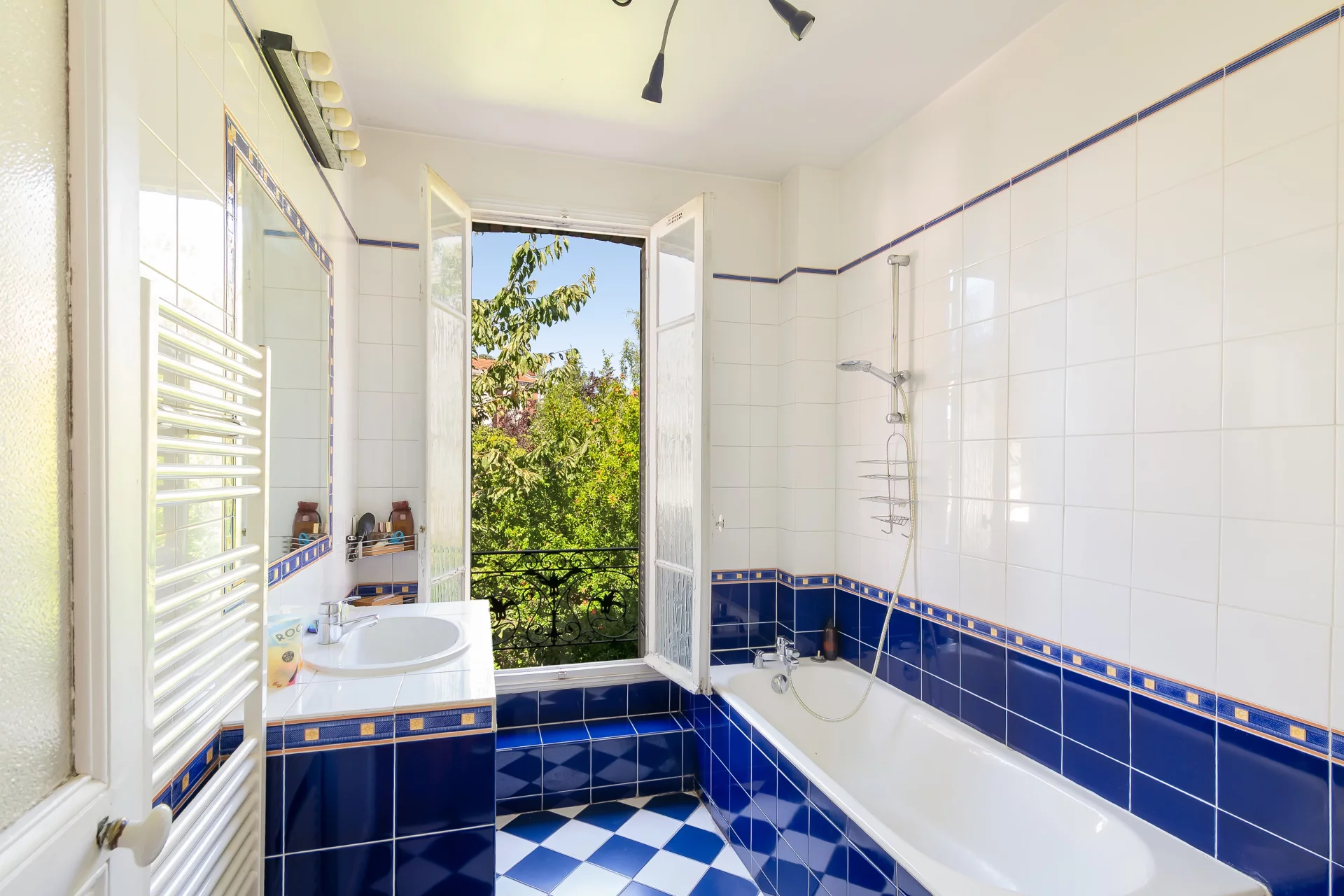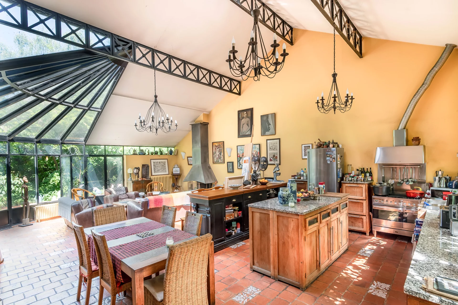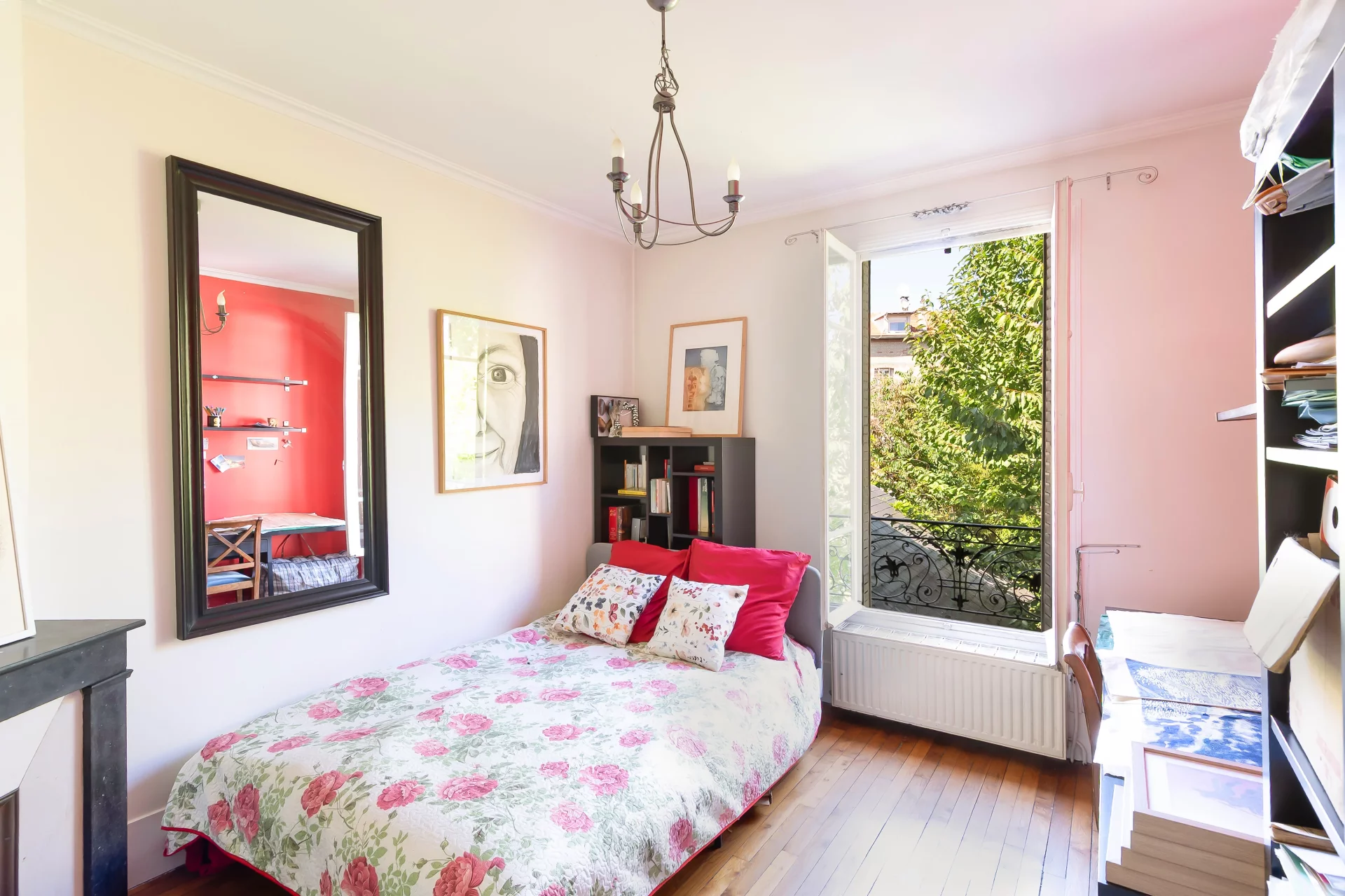 In the heart of the residential district of Saint-Ouen and close to line 14, superb family home of 190.09sqm of living space built on a plot of 501sqm. On the first level, it includes a spacious living room under glass with more than seven meters of ceiling height, an open kitchen, a master suite with bathroom, an office or bedroom. On the upper floor, three beautiful bedrooms, a bathroom and separate toilet. In the basement, a space converted into a laundry room and storage area. The whole overlooks a magnificent wooded garden without vis-à-vis. Bathed in light from its triple exposure and immersed in greenery, this house offers very beautiful volumes, absolute calm and a very good layout with its five potential bedrooms.