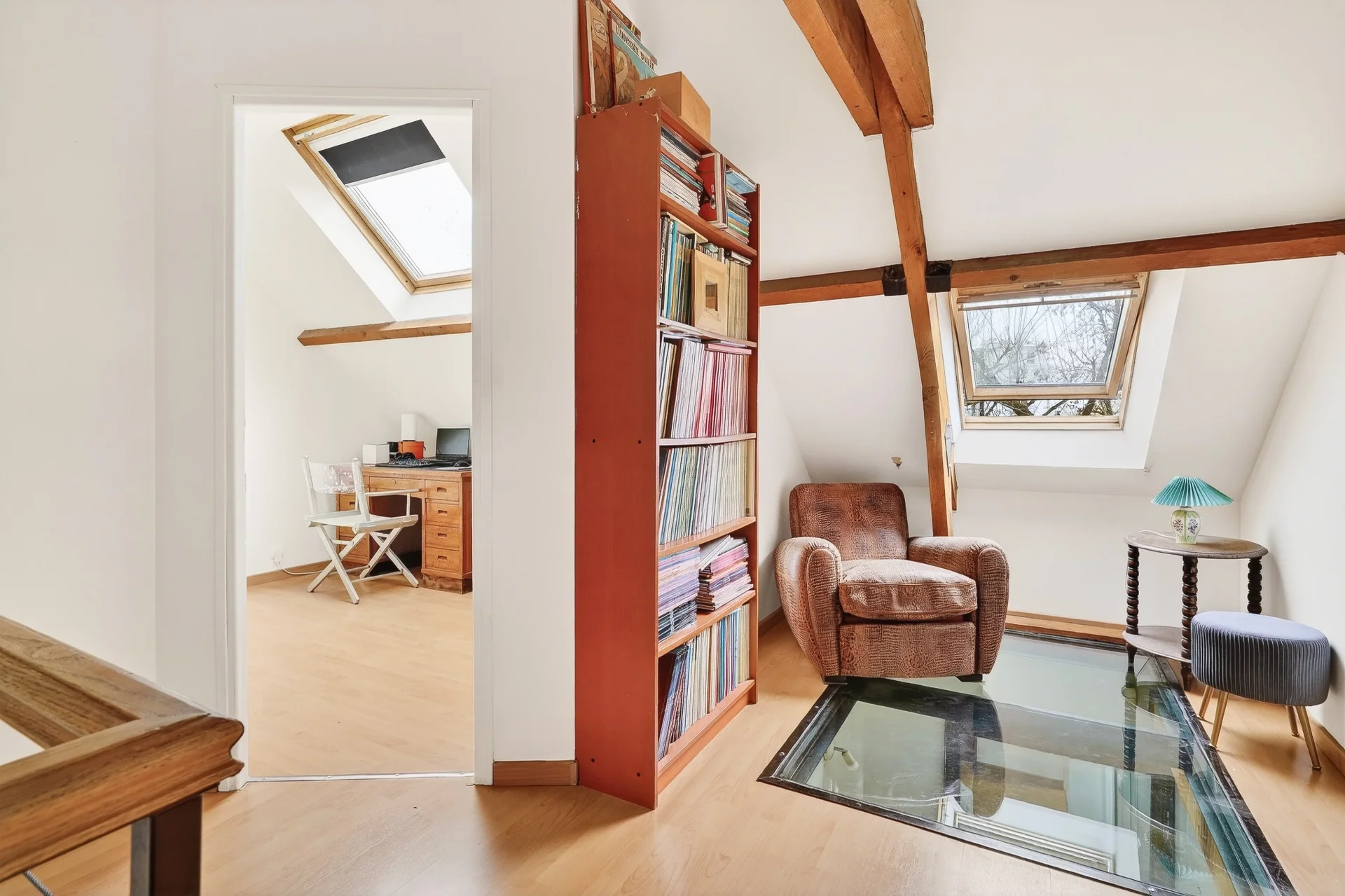 The second floor includes two additional bedrooms, including a suite with a bathroom and toilet, as well as an adaptable attic, offering great potential to create an office, a playroom, or storage space.
