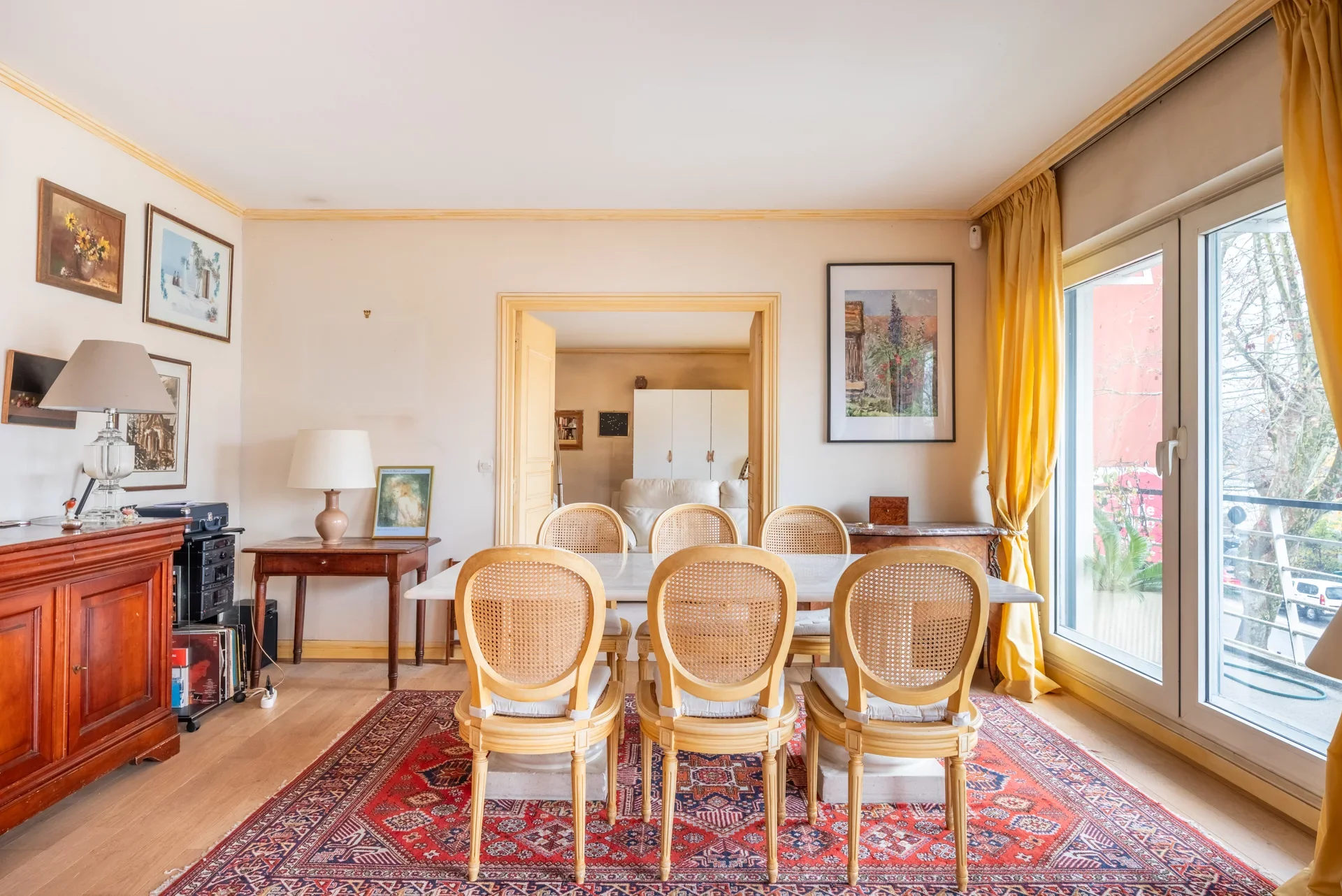 balcony overlooking the Seine, a master suite with bathroom 40 sqm with bathroom and toilet. On the night side, at the end of a corridor with ample a shower room and toilet, a second and third bedroom with storage space.
