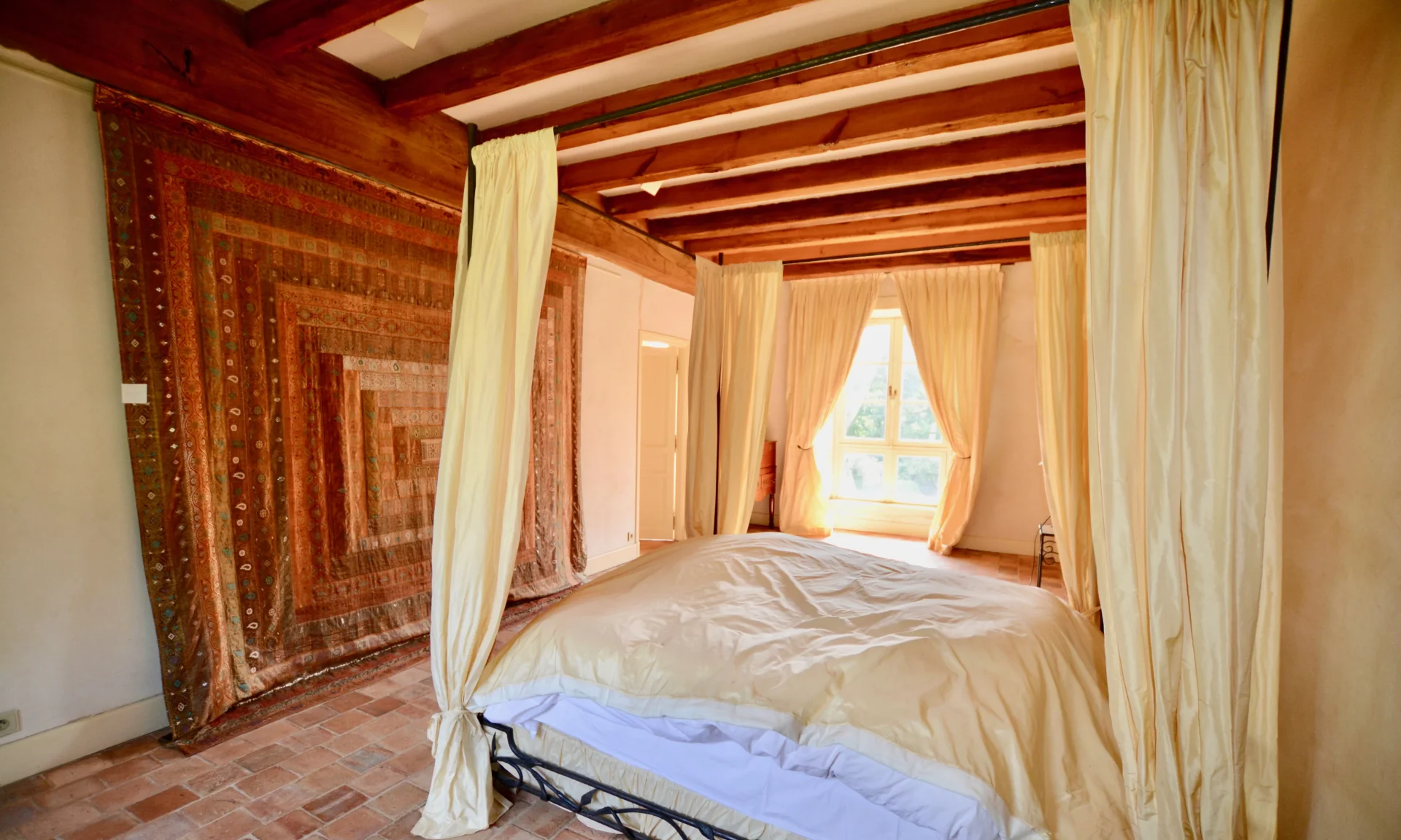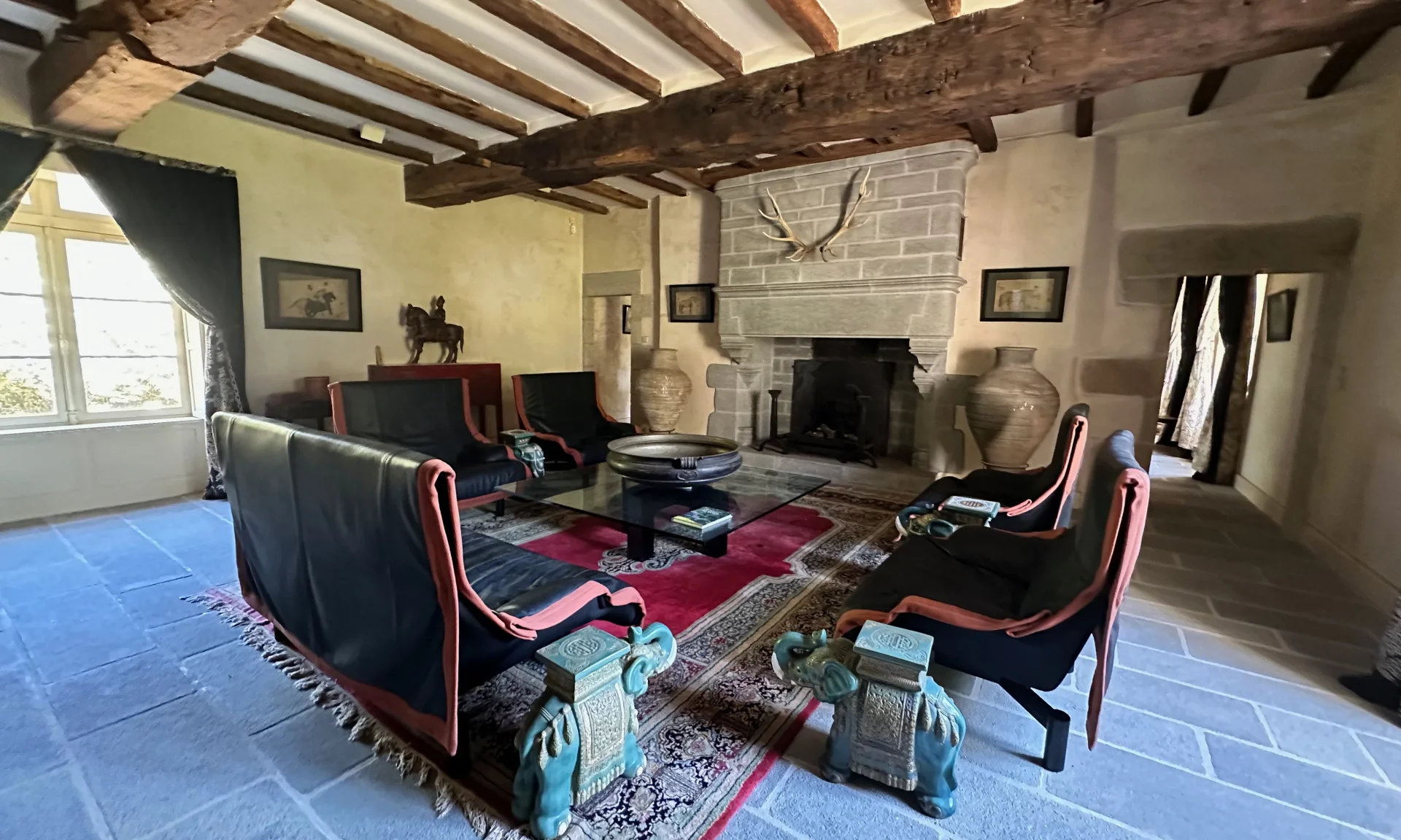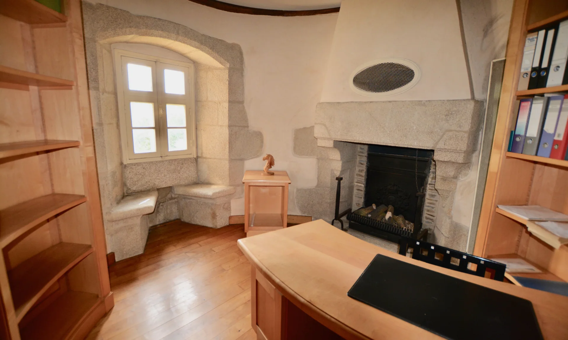 The façade is notably distinguished by mullioned windows and granite surrounds, typical of the region, allowing abundant natural light while offering lovely views over the surrounding gardens. The sculpted and ornate dormer windows further enhance the property’s authenticity and charm.