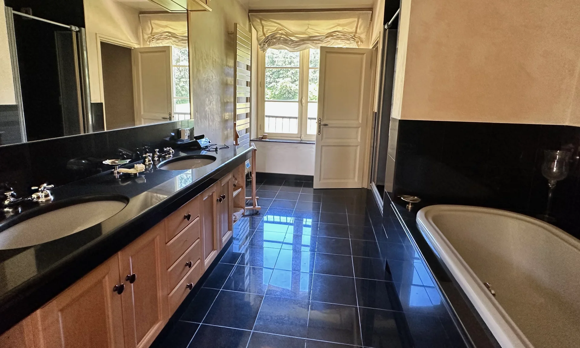 Set within 13 hectares of woodland, the manor opens onto a one-hectare landscaped park designed by Erwan Tymen, featuring ponds, fountains, and subtle lighting effects. Majestic cedars, camellias, and rhododendrons create an enchanting setting—a rare property where heritage and innovation coexist with elegance.