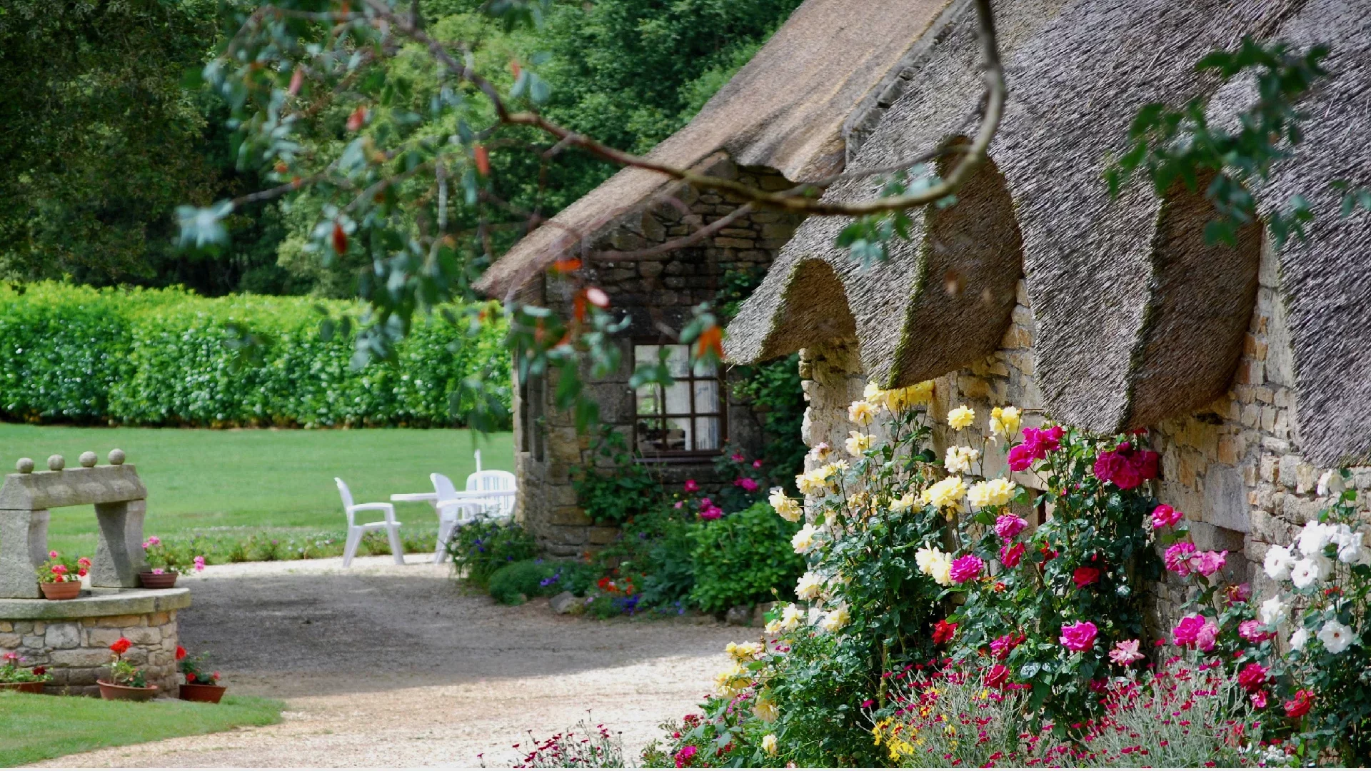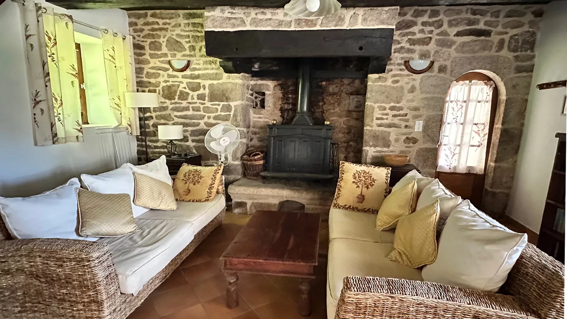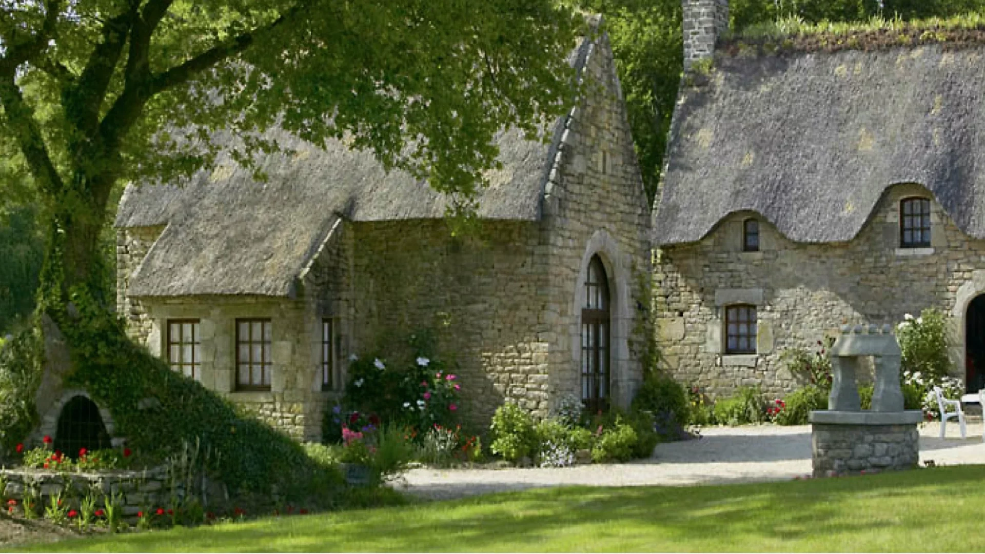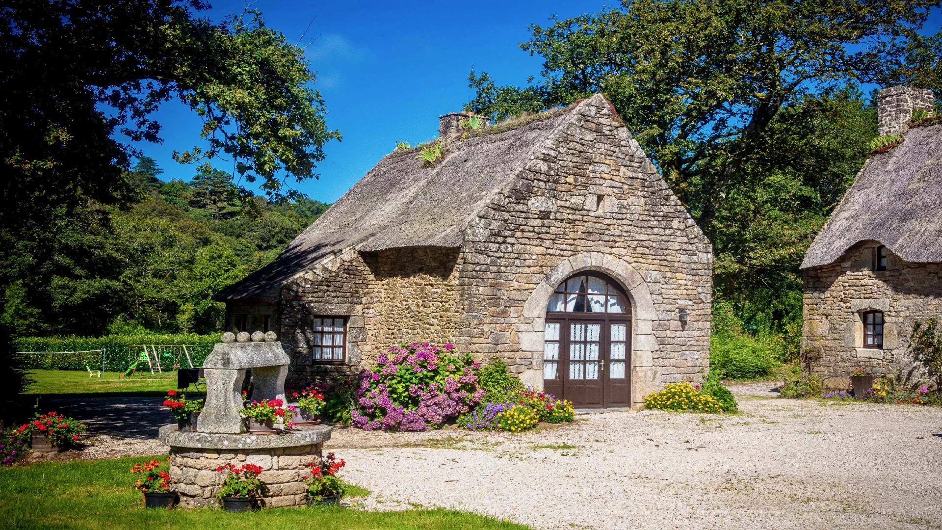 Situated in the heart of the Blavet and surrounded by an enchanting landscape, this magnificent property comprises three thatched stone cottages. Nestled in landscaped grounds spanning over 2 hectares, these independent cottages offer uninterrupted views of the park, the surrounding countryside and the water. Guests can enjoy absolute peace and quiet, as well as a timeless atmosphere, far removed from pollution and the modern era.