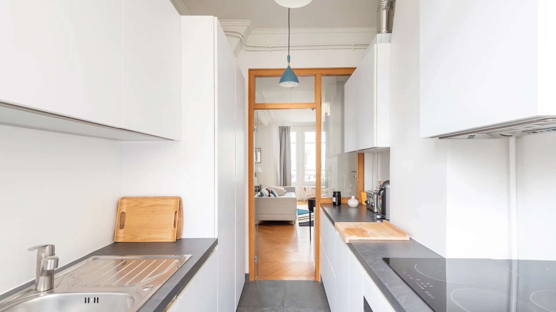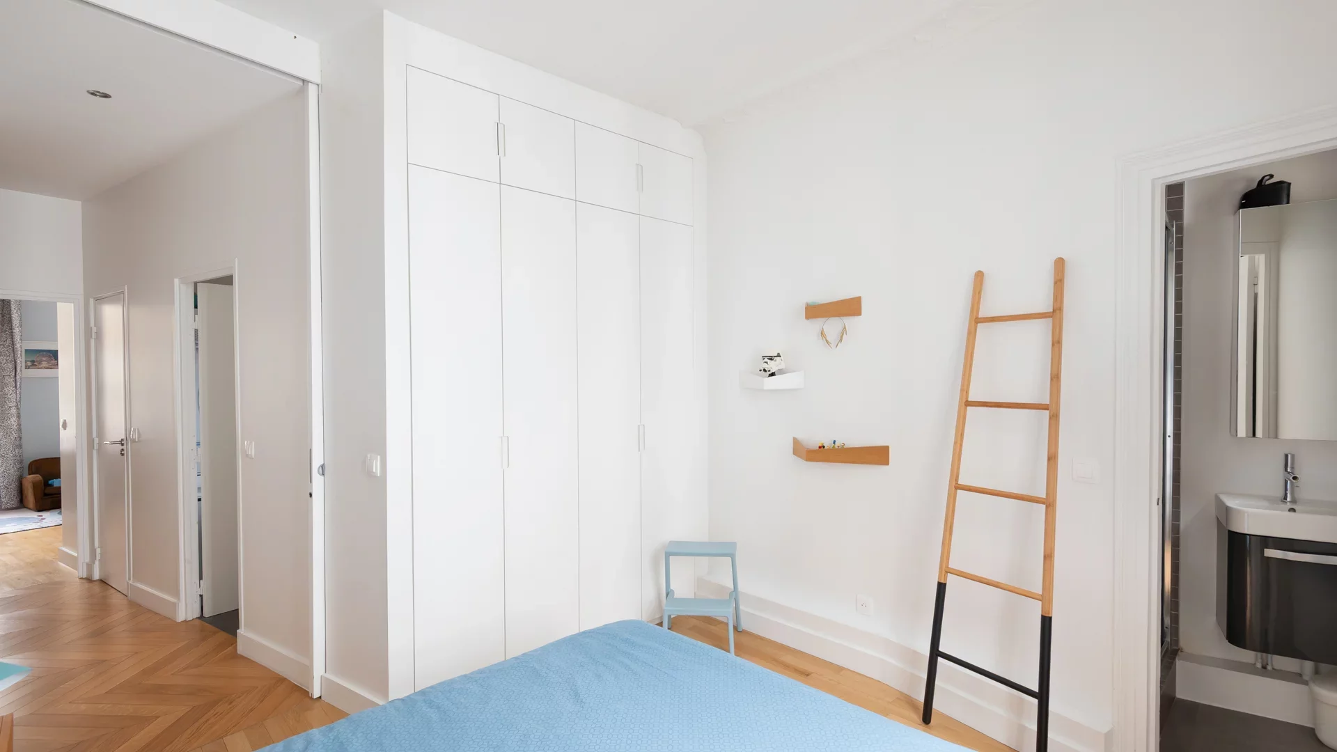 Light and airy, its perfectly optimized layout features a vast 37sqm living room, a kitchen separated by a glass roof and opening onto a pleasant balcony, three bedrooms, a bathroom with laundry area, a shower room and separate toilet.