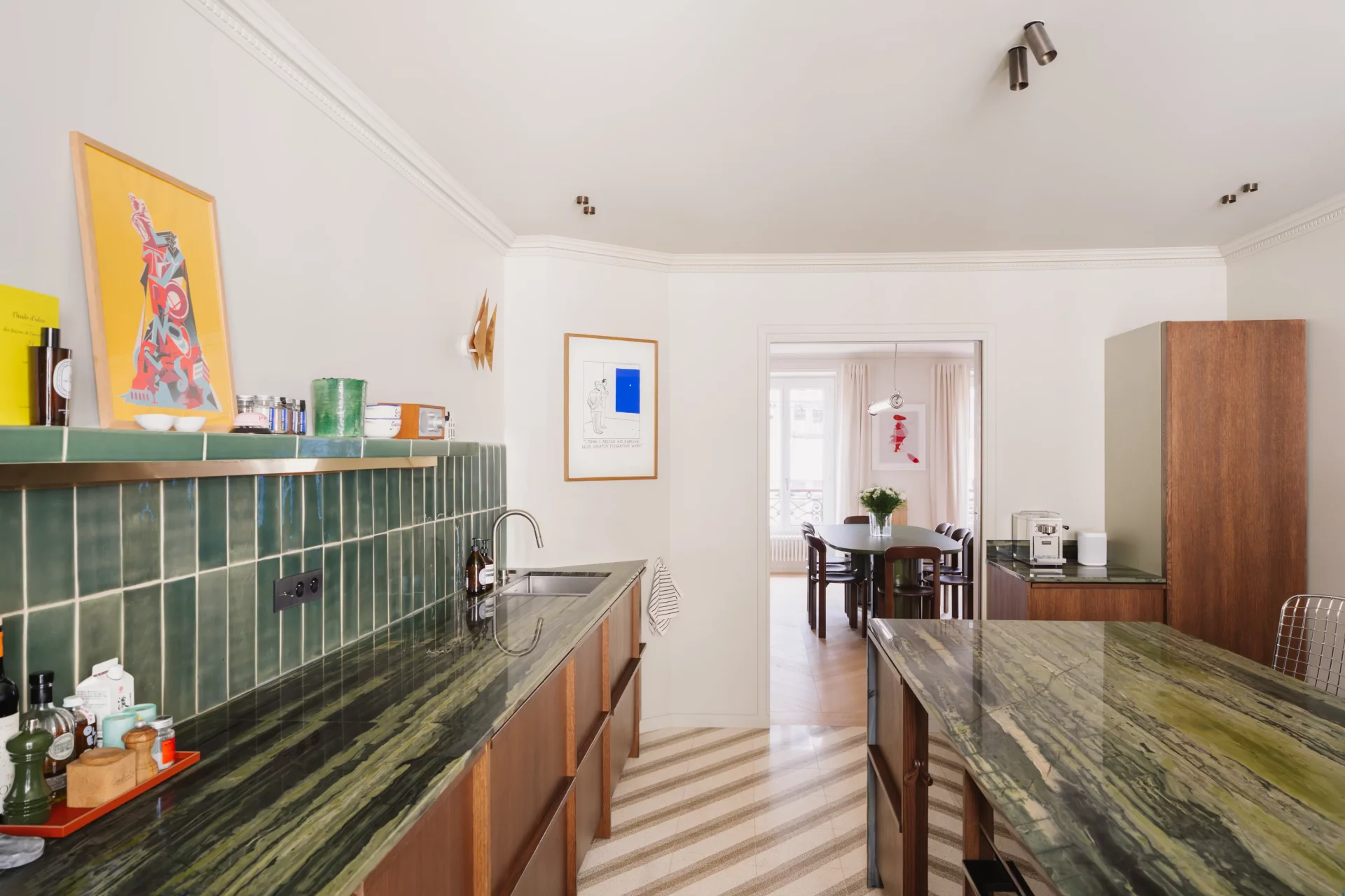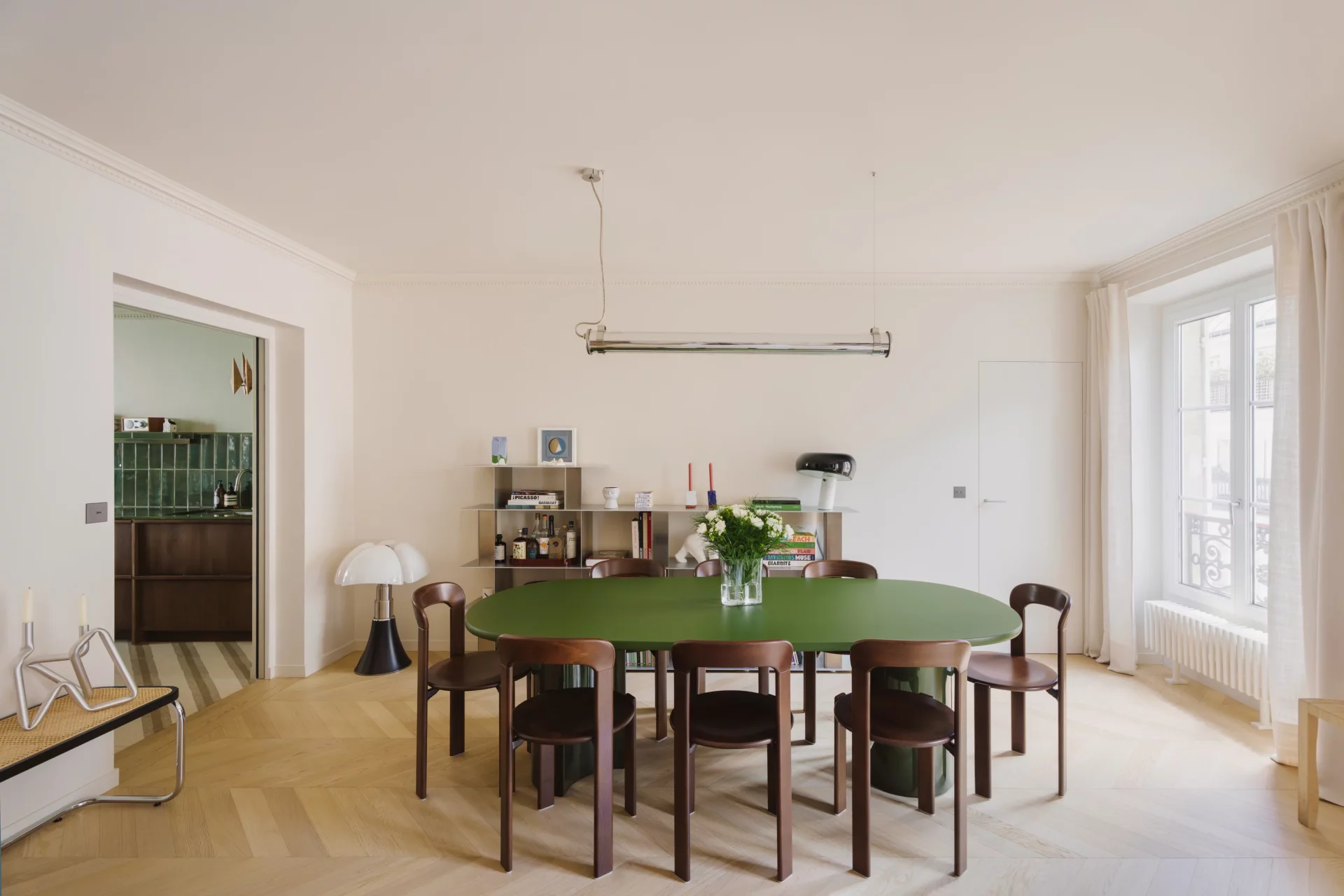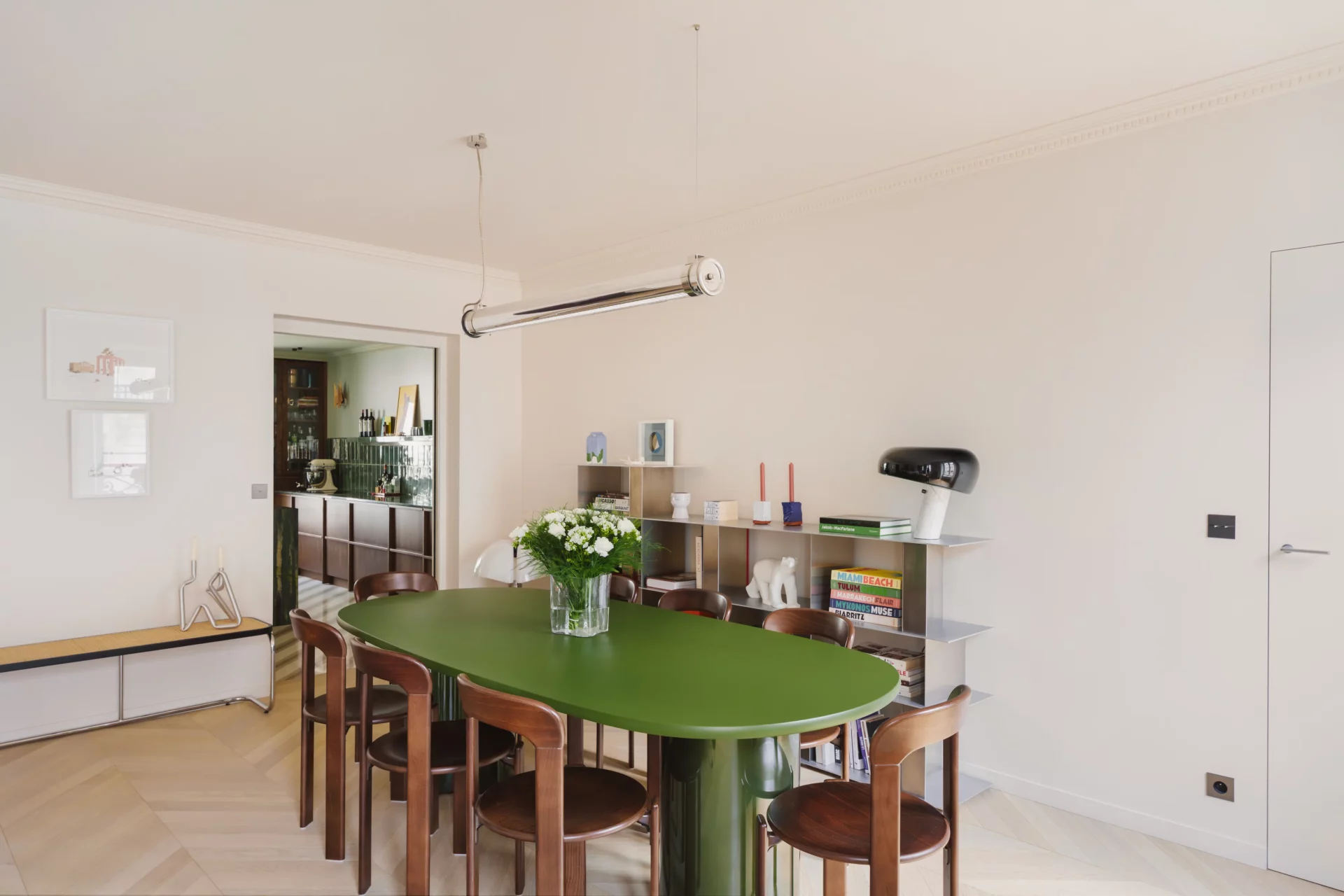 In the heart of a particularly sought-after Haussmann-style building, on the fourth floor with elevator, magnificent through-apartment of 105.18sqm loi Carrez.