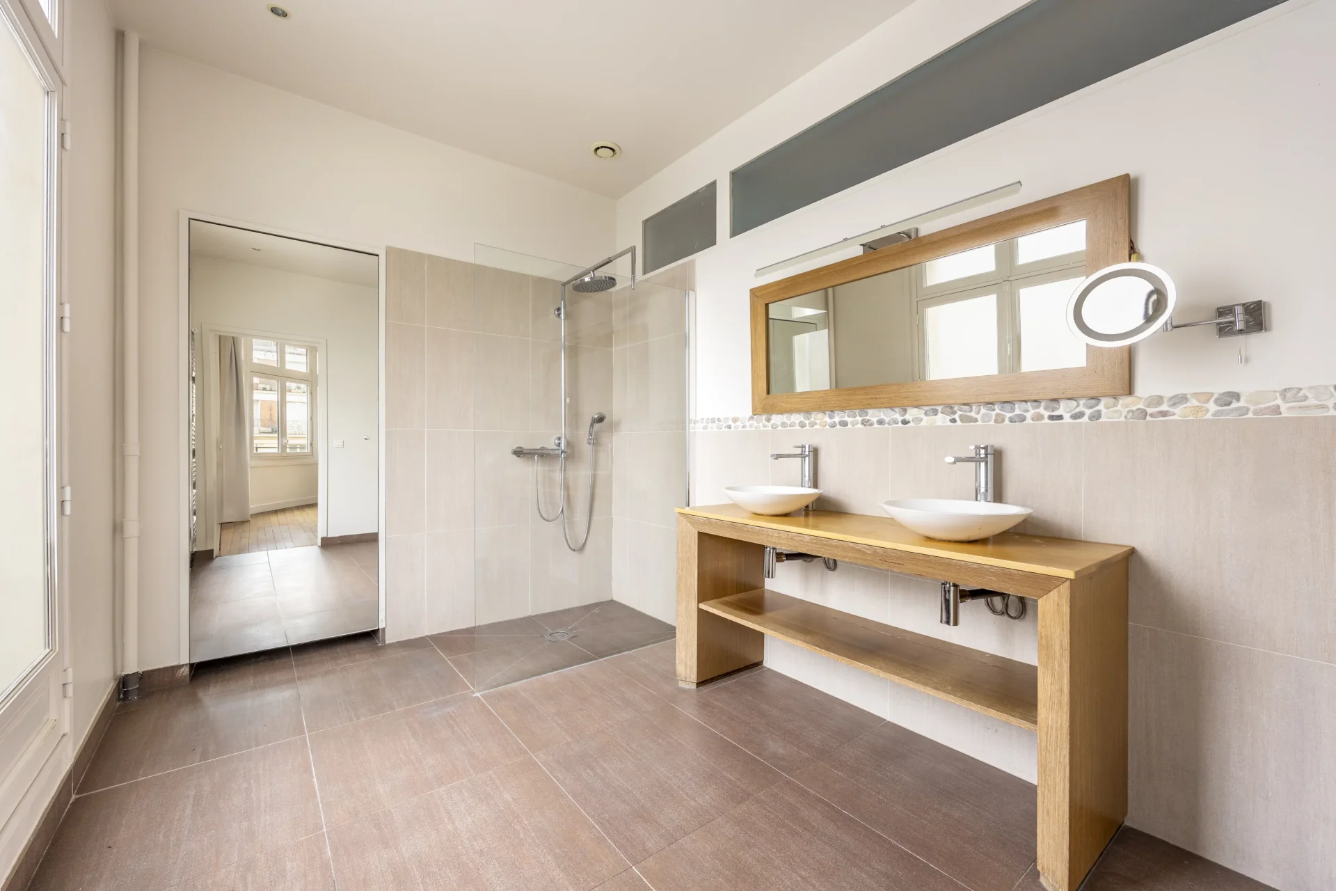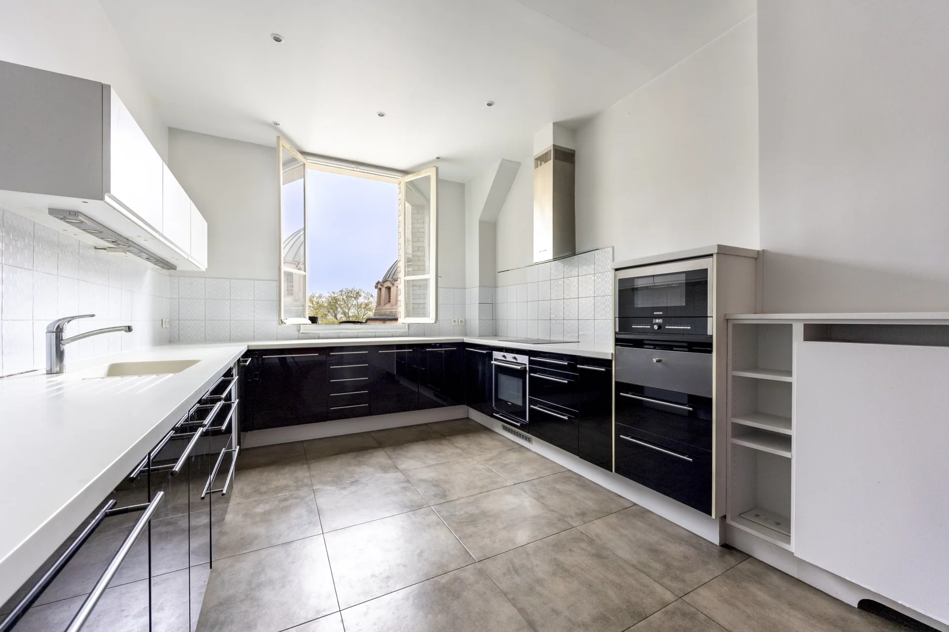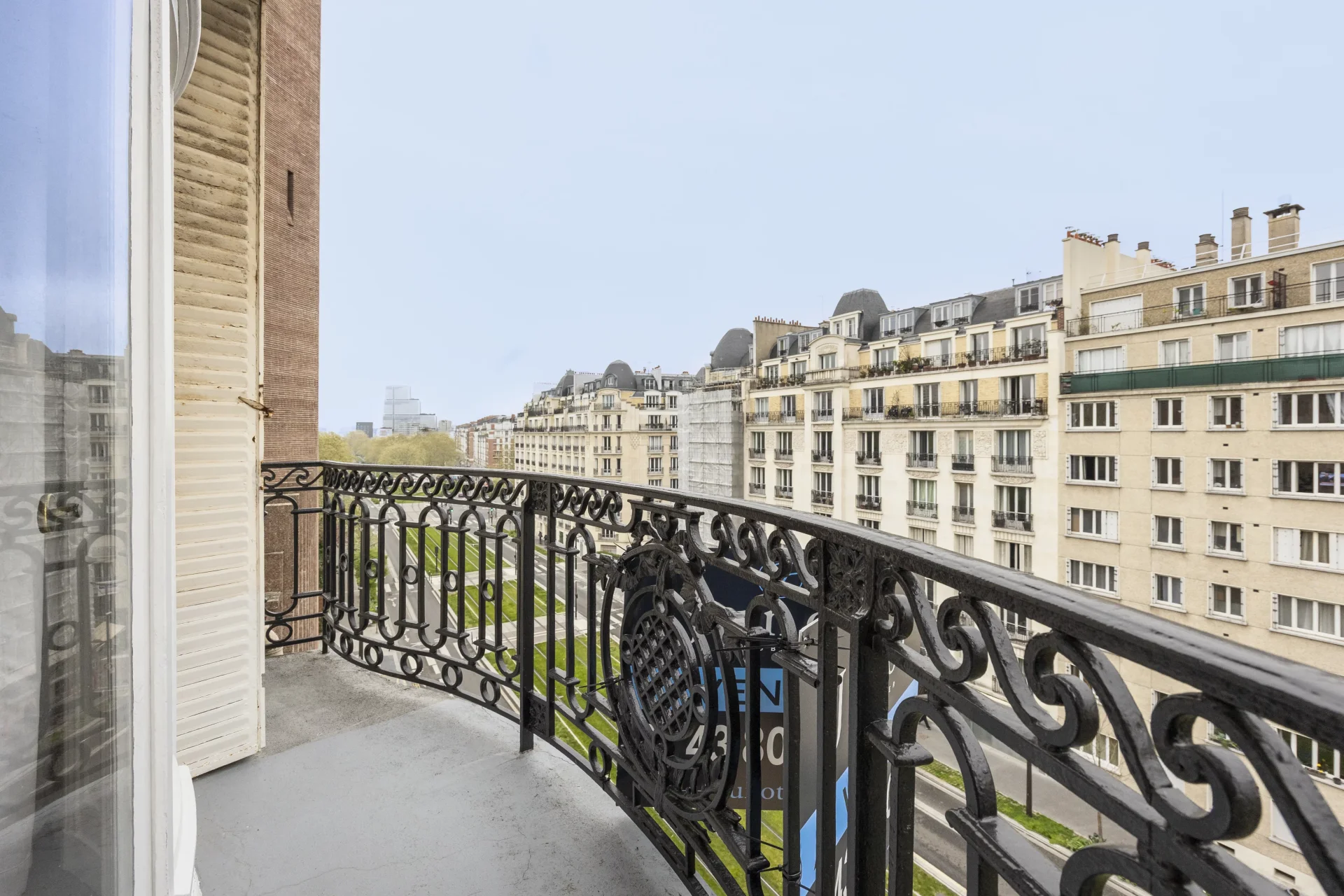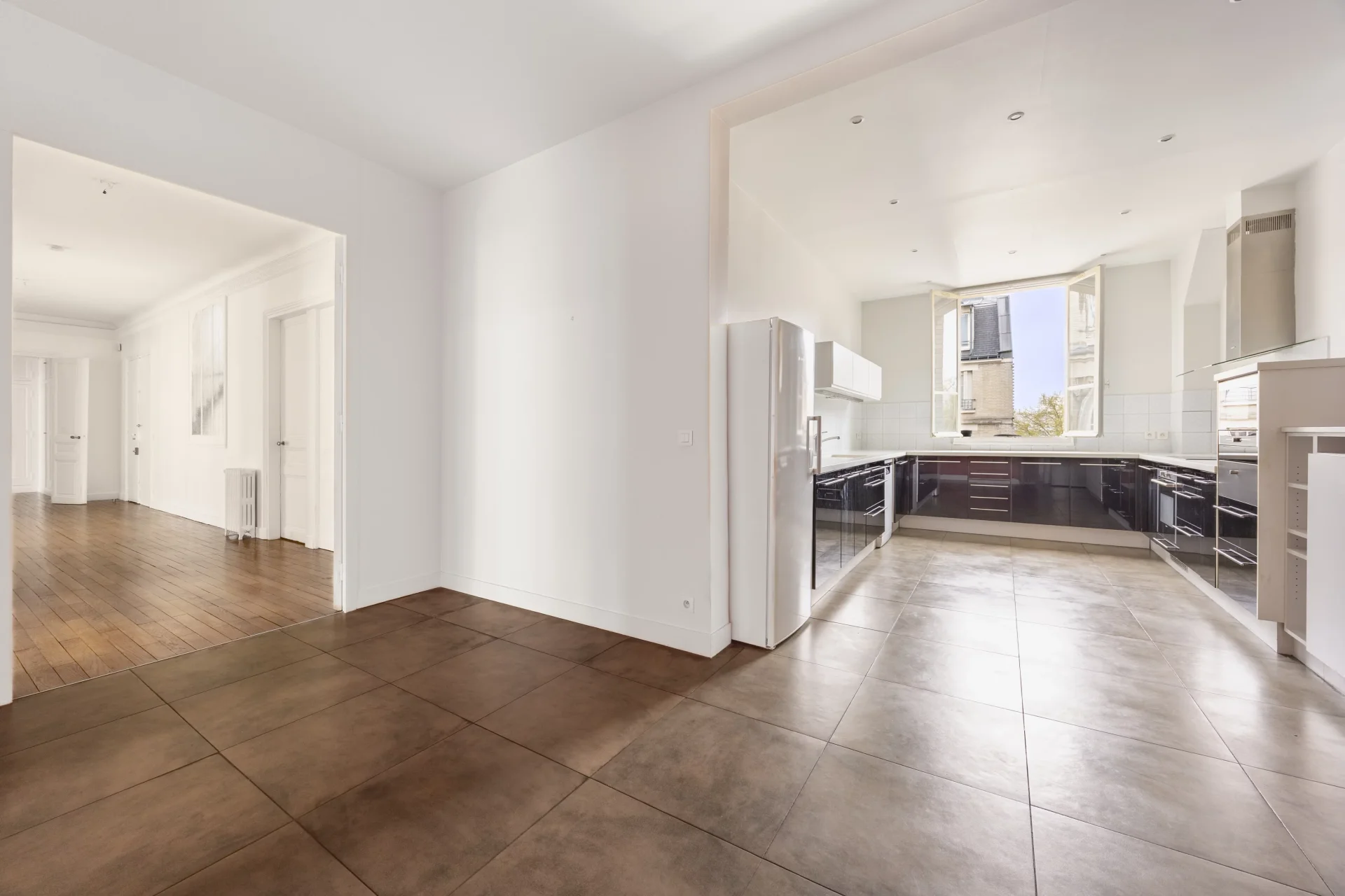 On the fifth floor by elevator of an Art Deco-style freestone building, this light-filled 247.72sqm loi Carrez corner apartment benefits from triple exposure and unobstructed views.