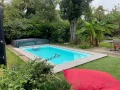 Le jardin, exposé sud-ouest, est agrémenté d’une piscine chauffée par pompe à chaleur et équipée d’un abri rétractable. L'ensemble nécessite une rénovation. Le stationnement sur la parcelle est aisé.