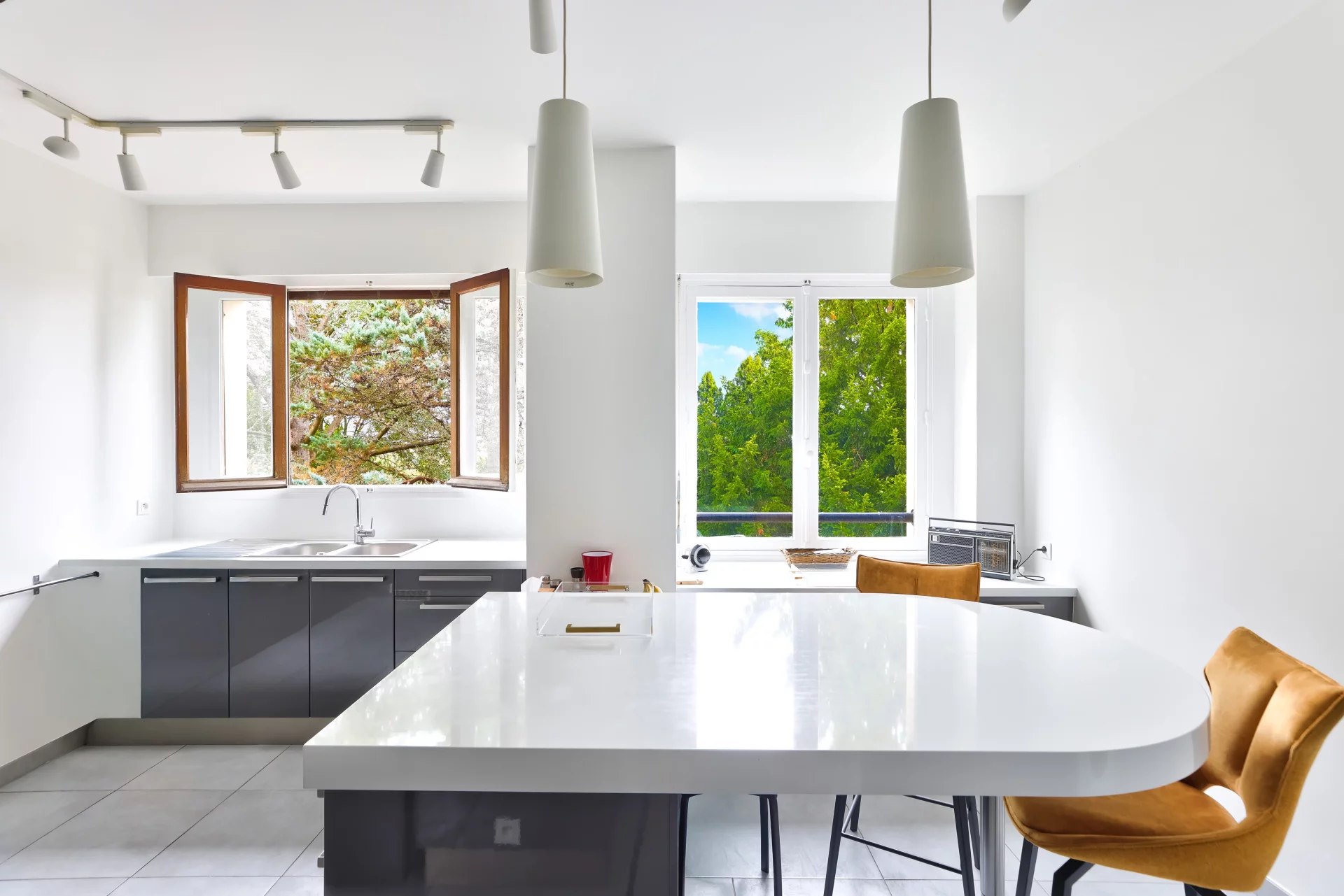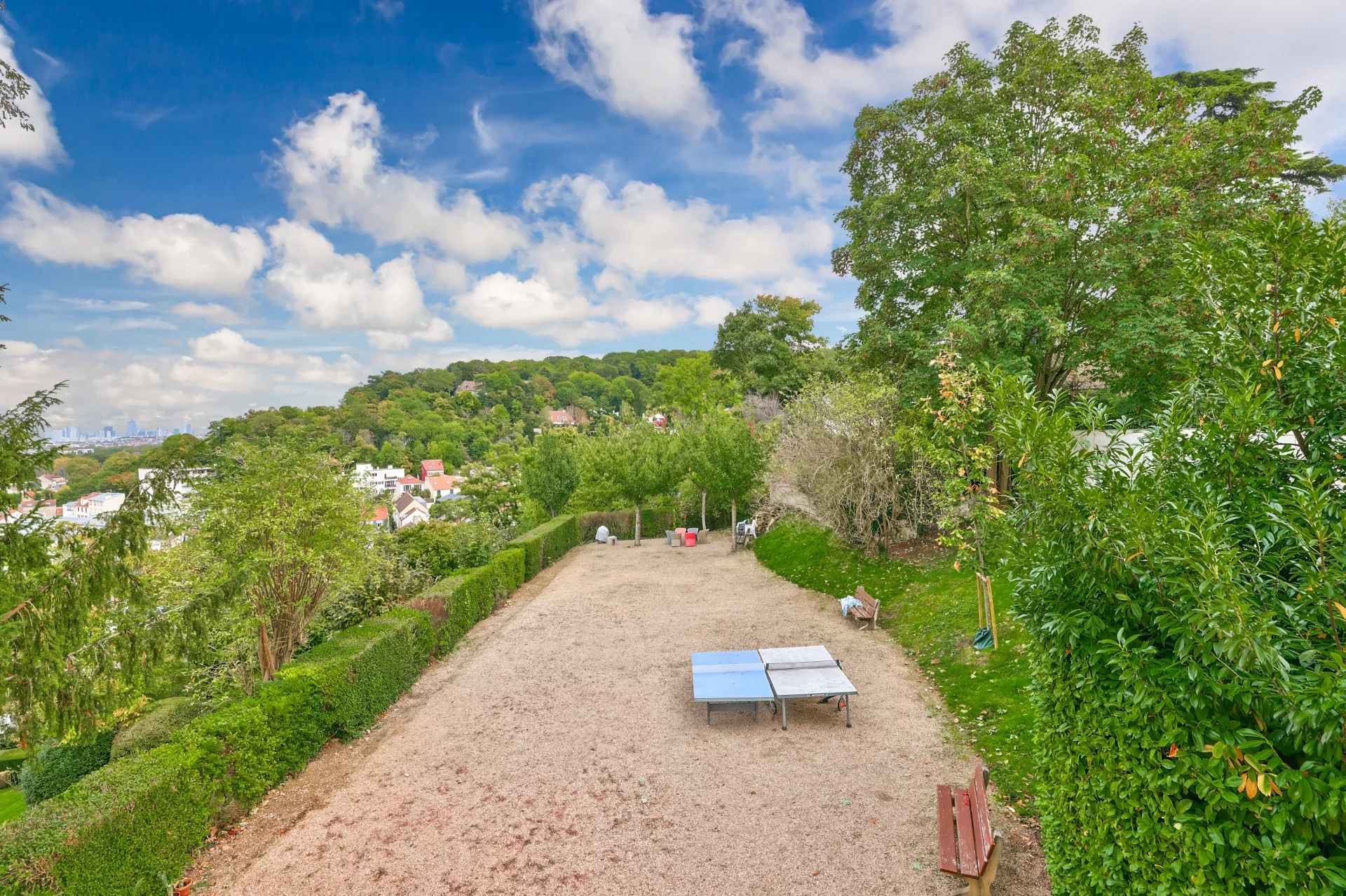 Just a stone's throw from the center of Bougival and in the heart of an exceptional landscaped park, this 156sqm, walk-through apartment offers a rare living environment, steeped in calm and greenery, with a spectacular view of the loop of the Seine and the towers of La Défense in the background.