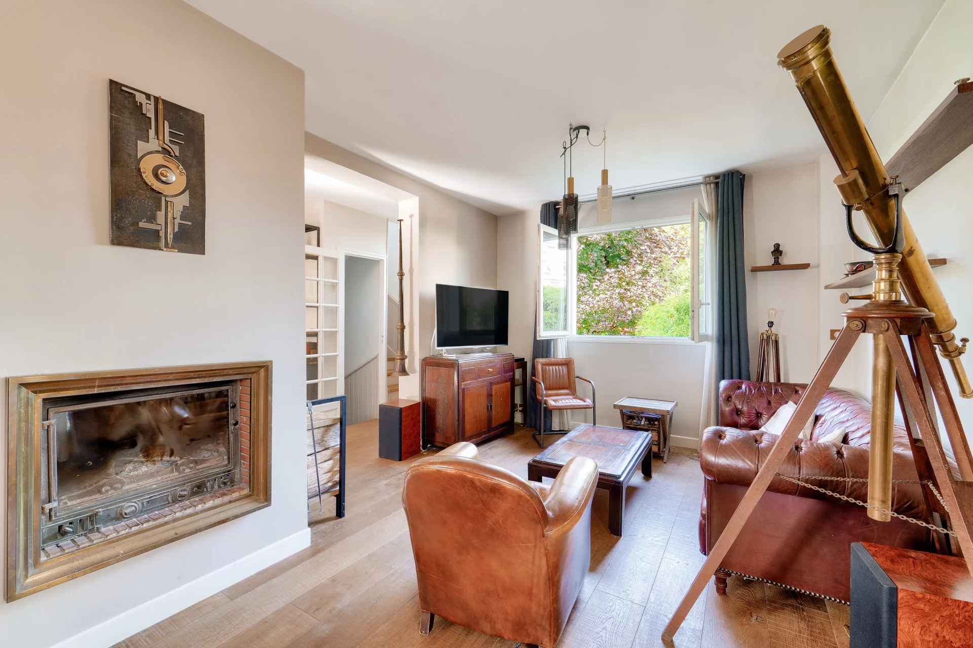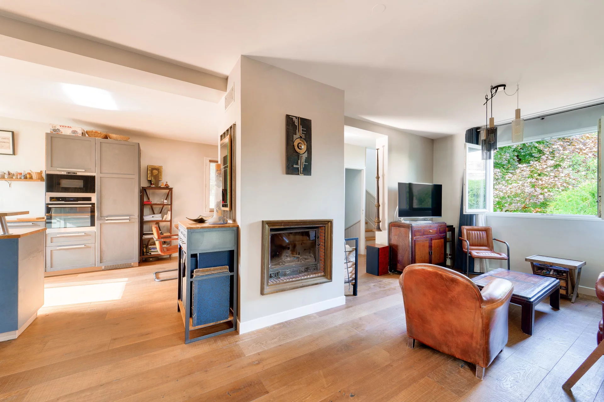 On the first floor, you'll love the spacious living room with fireplace, which opens onto a sunny terrace, and a kitchen that's both convivial and functional.