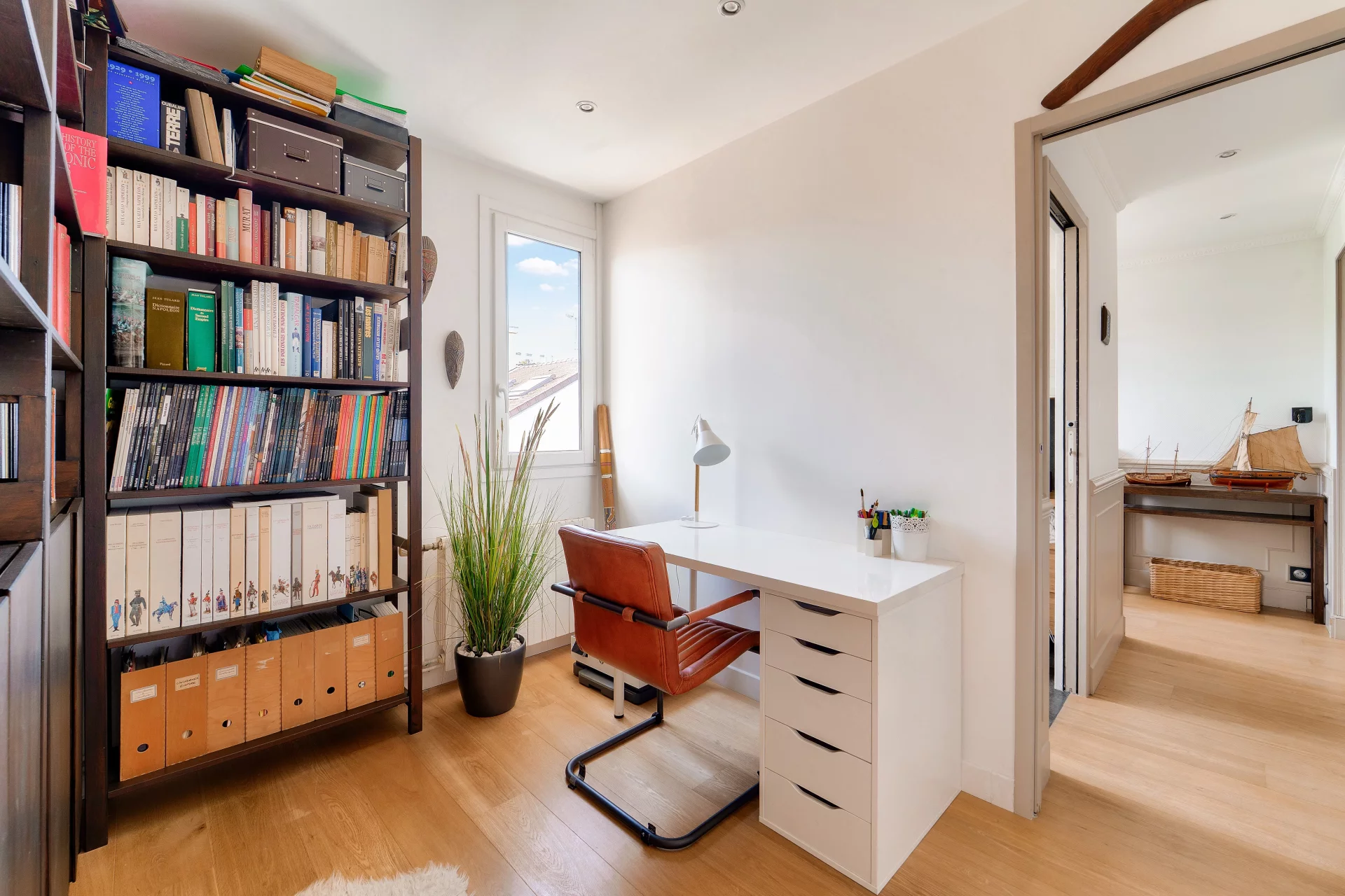 Upstairs, three bedrooms, a study and a shower room with toilet make up the sleeping area, offering a practical and harmonious layout to welcome the whole family.