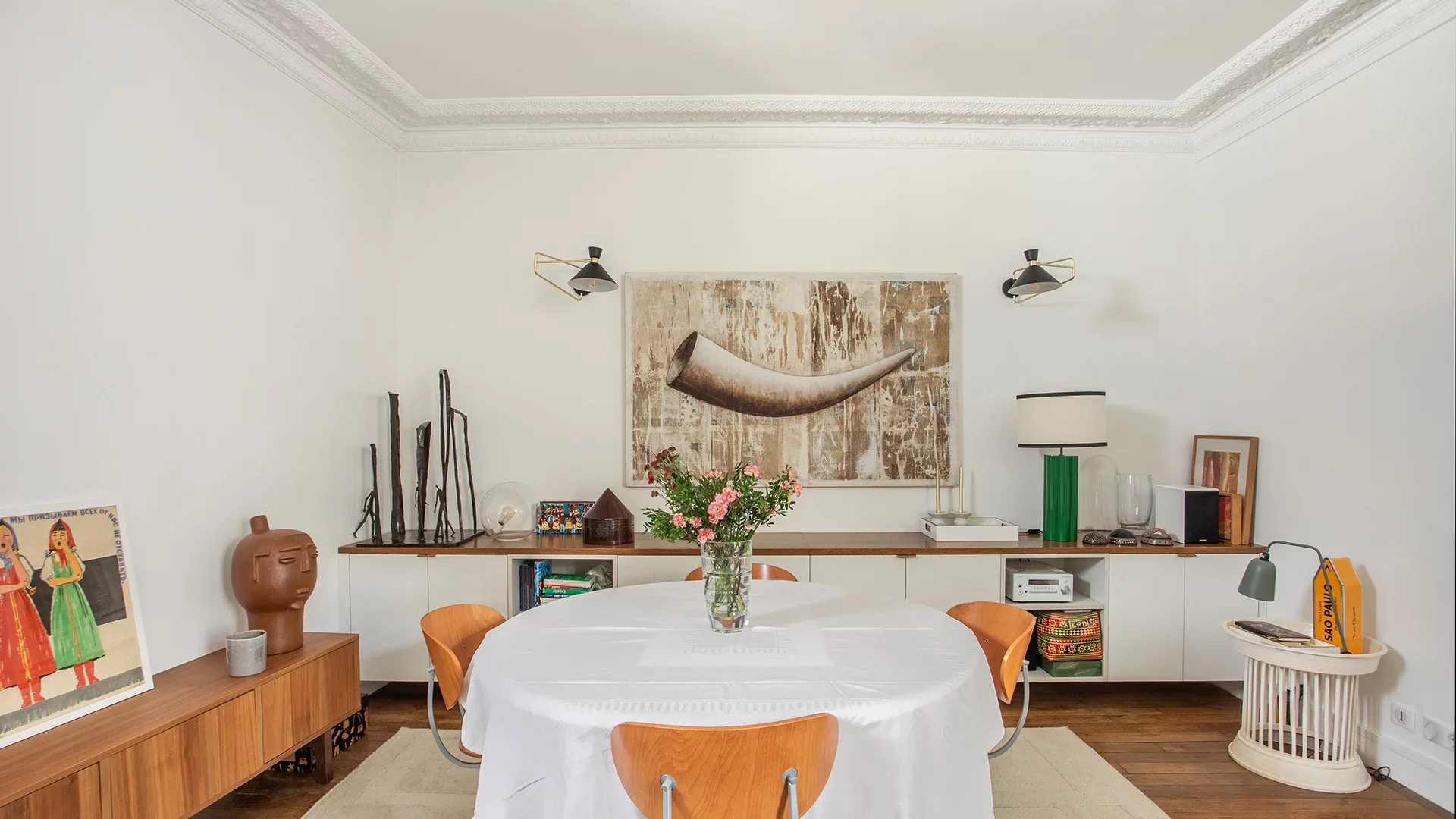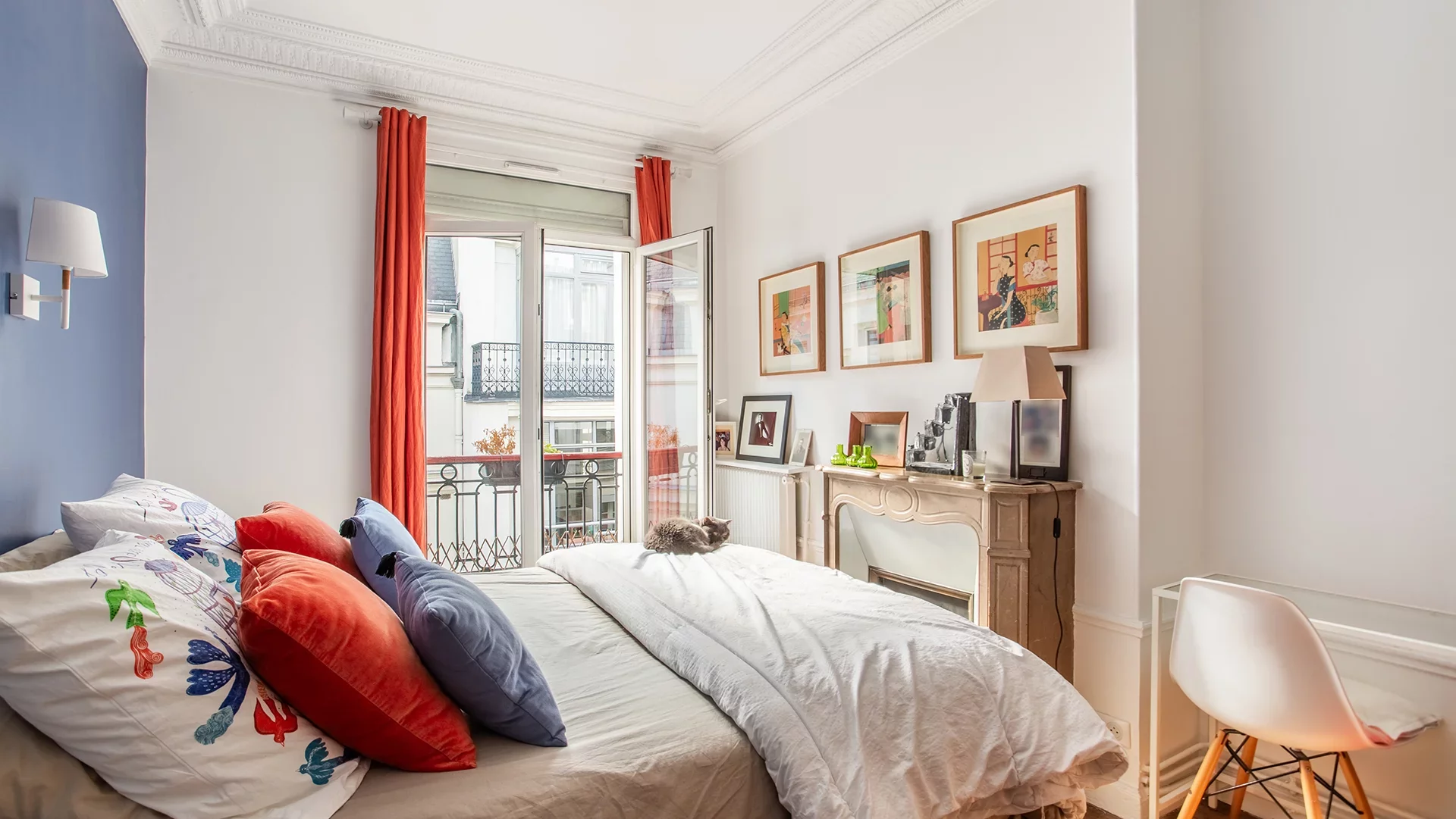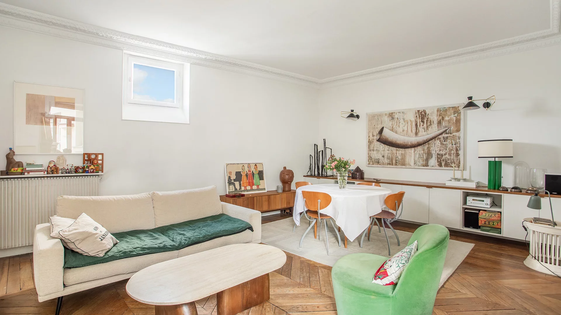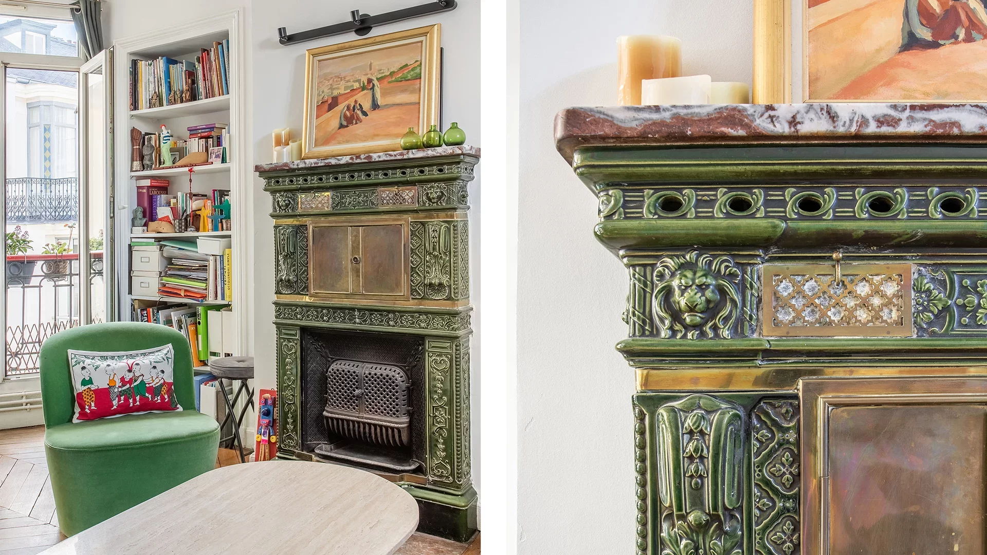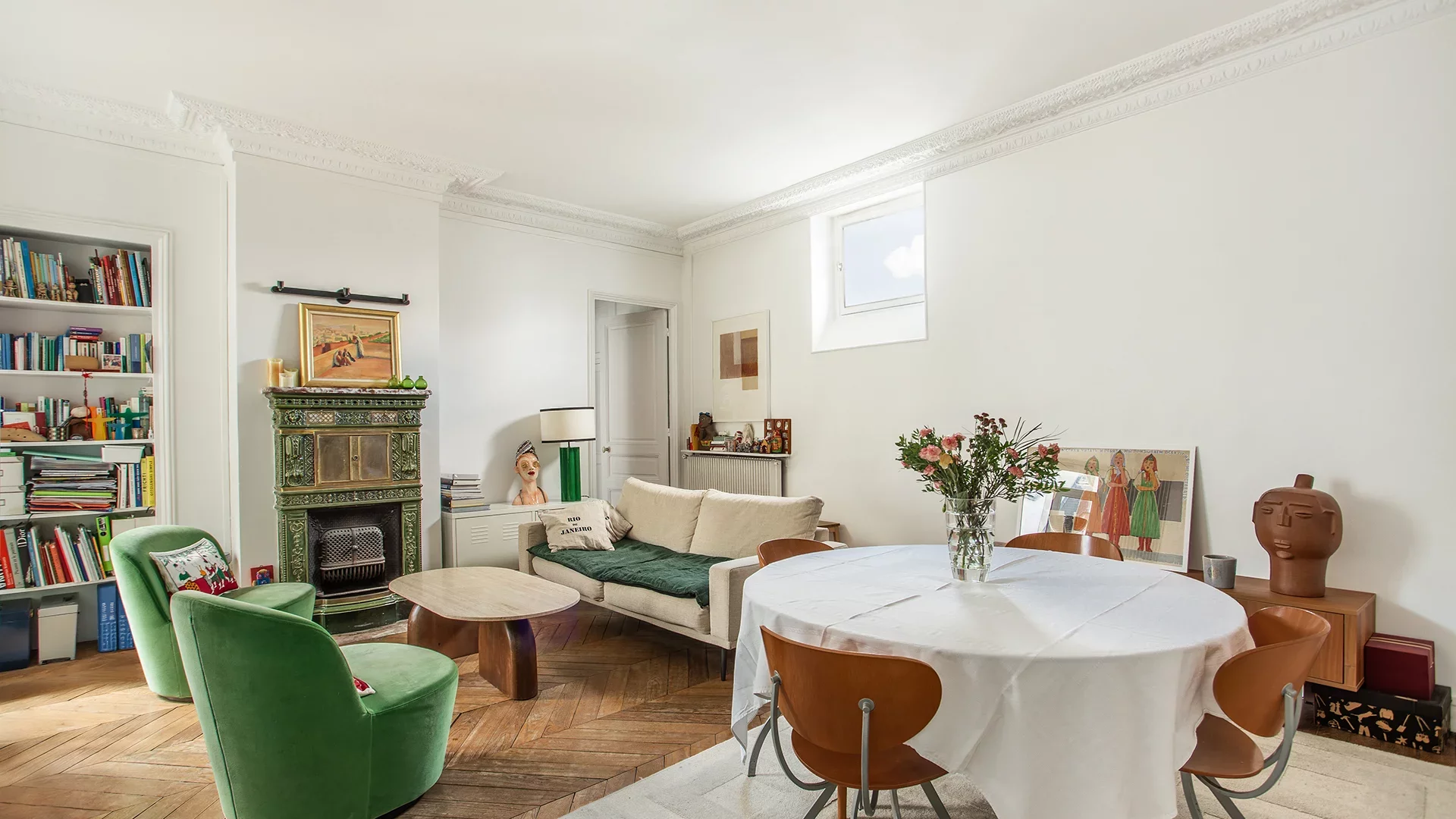 Endowed with old-world charm, the apartment combines old-world character (parquet flooring, moldings, fireplaces), light and calm.