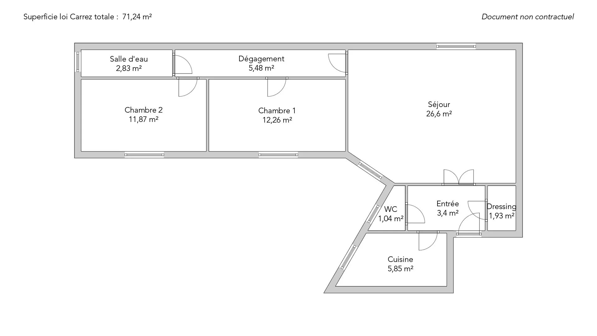 In a quiet street in the 17ᵉ arrondissement, in a well-maintained old building, this 71.26sqm Carrez apartment is located on the fifth floor with elevator.