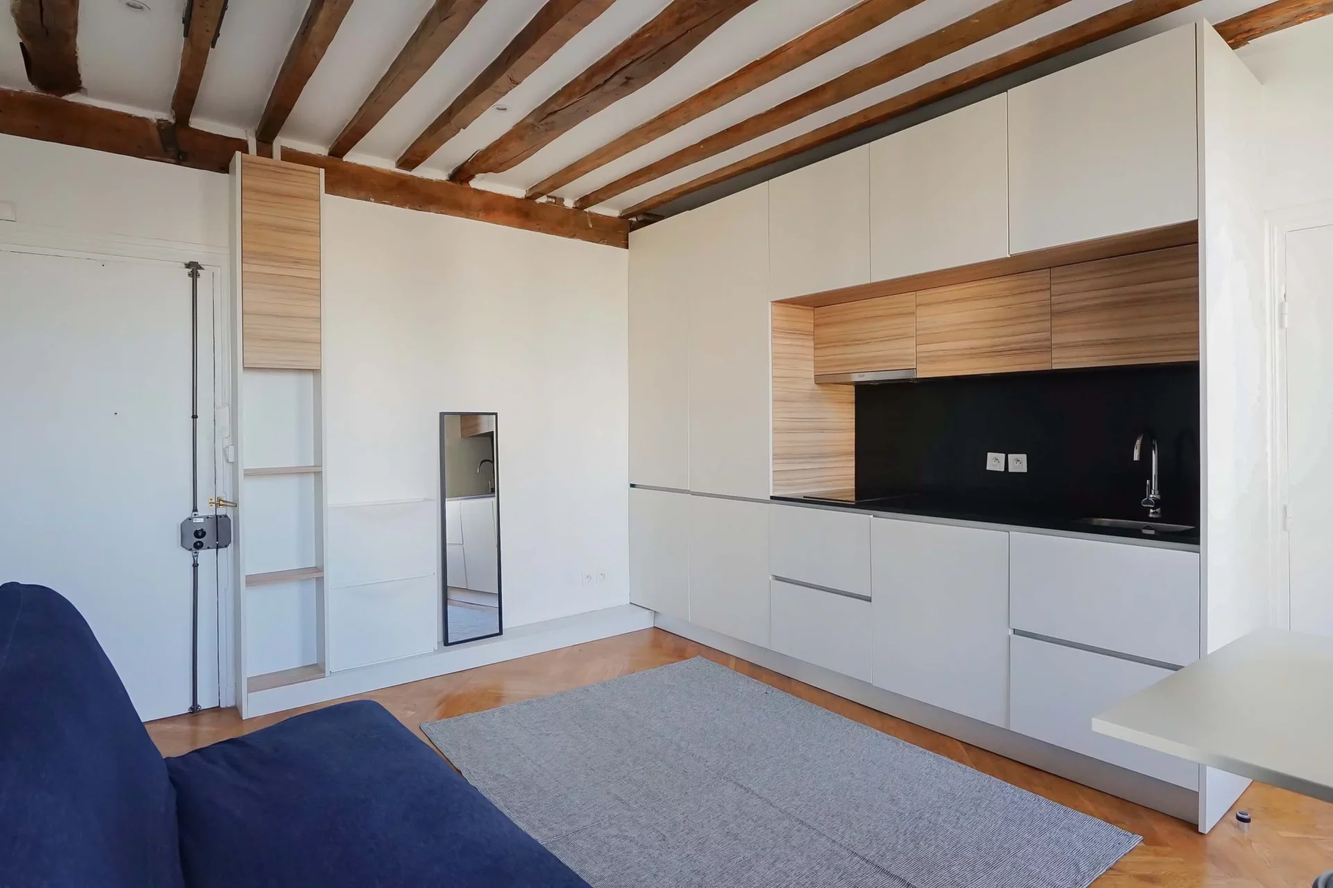 This charming 17.21 sq m (Carrez Law) studio apartment, situated on the fourth floor of a beautiful building, benefits from a lovely southwest exposure and an unobstructed view.