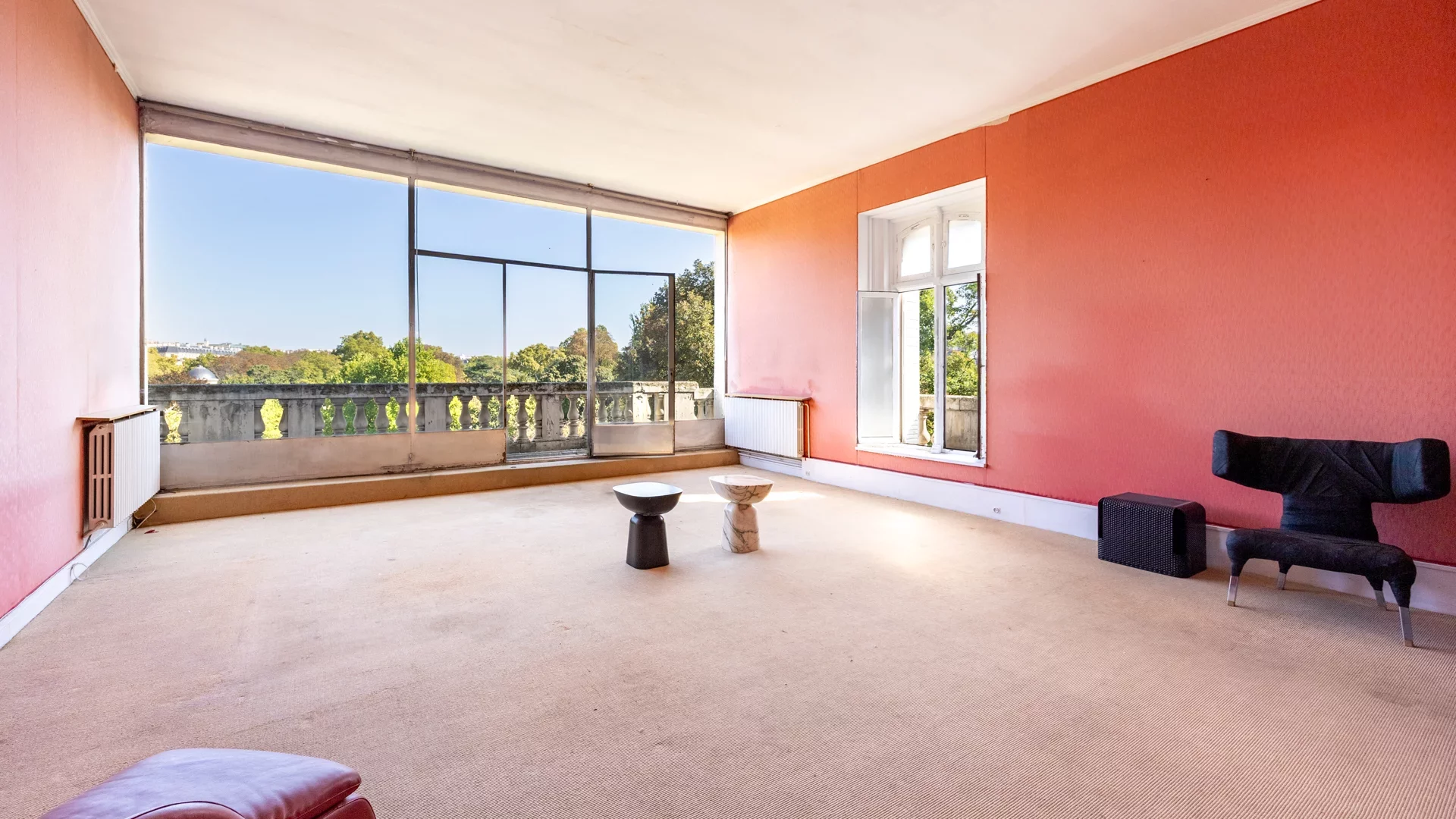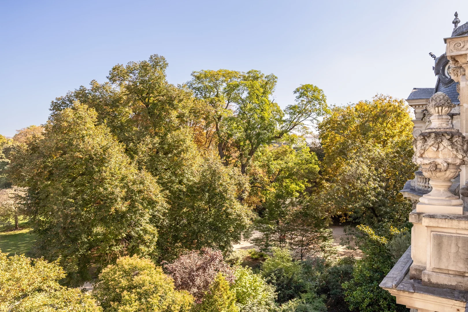 On the front line of the park, it offers unobstructed views over the greenery and avenues of Paris's most elegant garden, as if suspended above a living tableau.