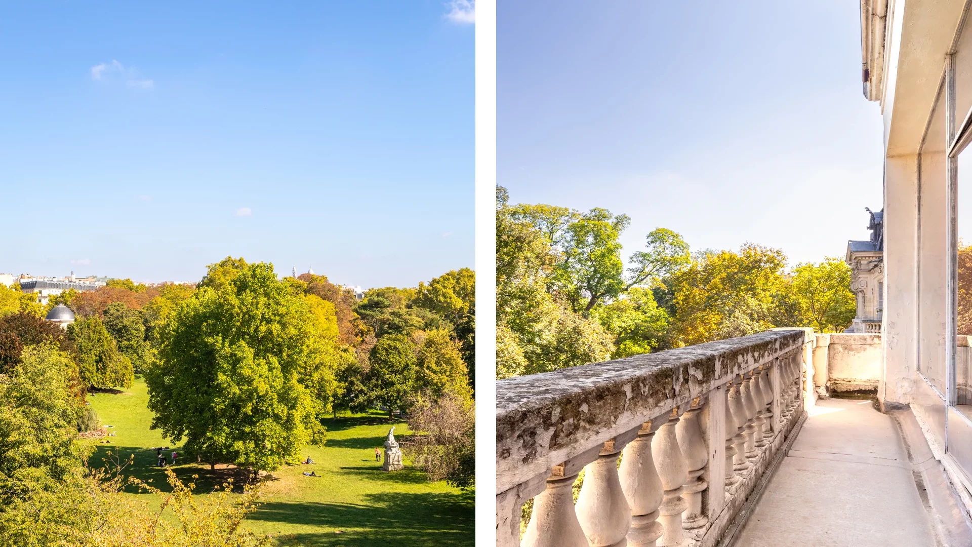 Bathed in light throughout the day, it enjoys a rare luminosity and a large balcony offering a spectacular panorama of the Parc Monceau and its emblematic monuments.
