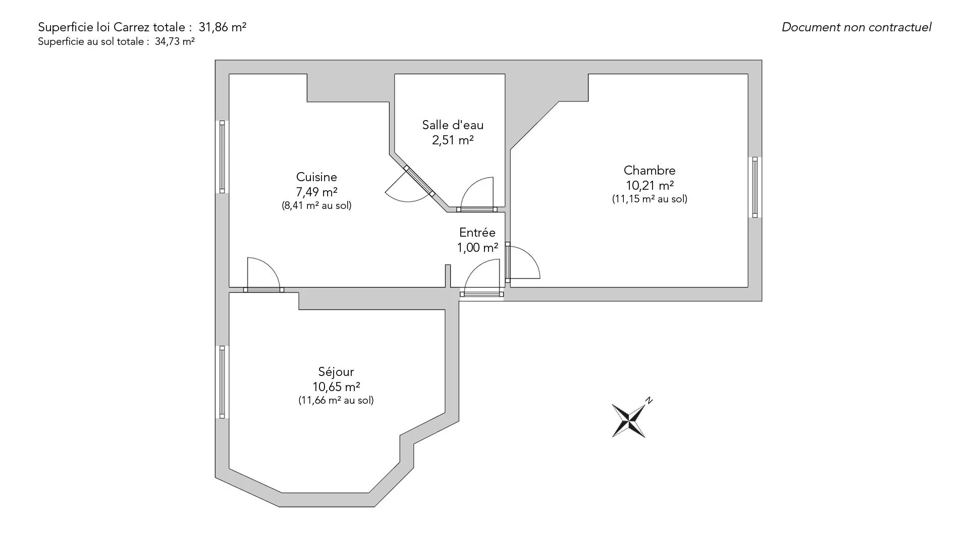 - Habitable : 373,83 Sq Ft Total : 342,94 Sq Ft
