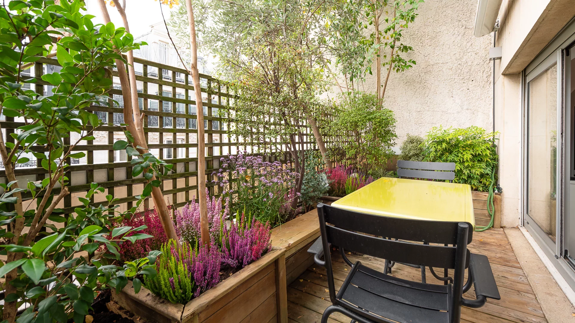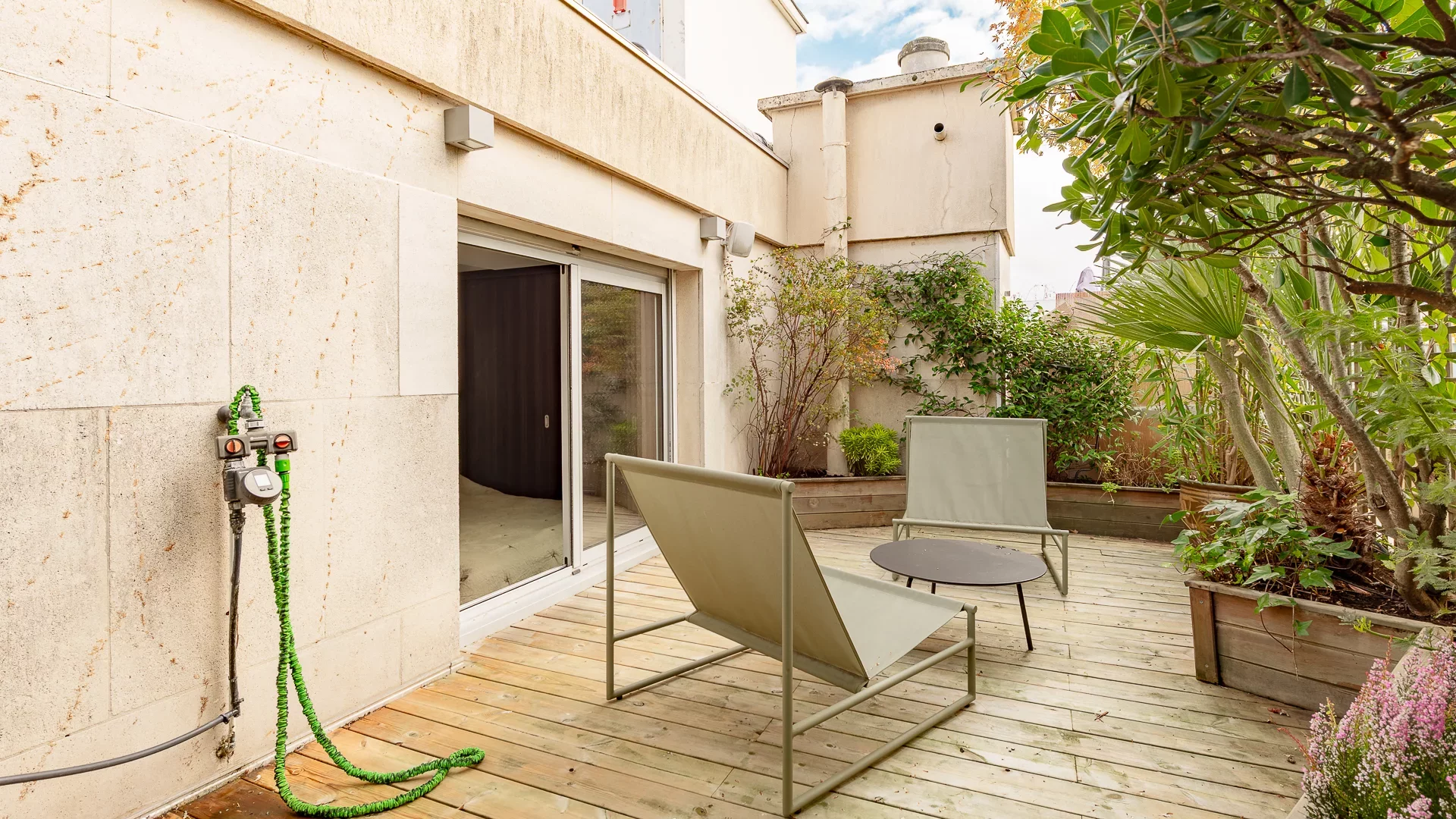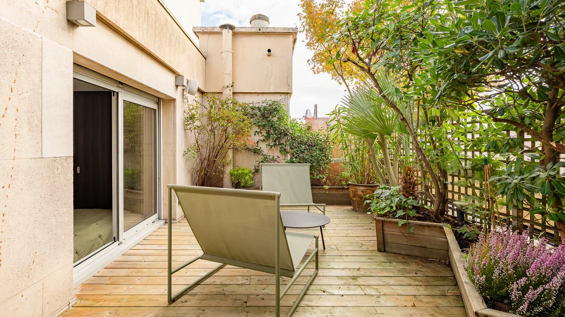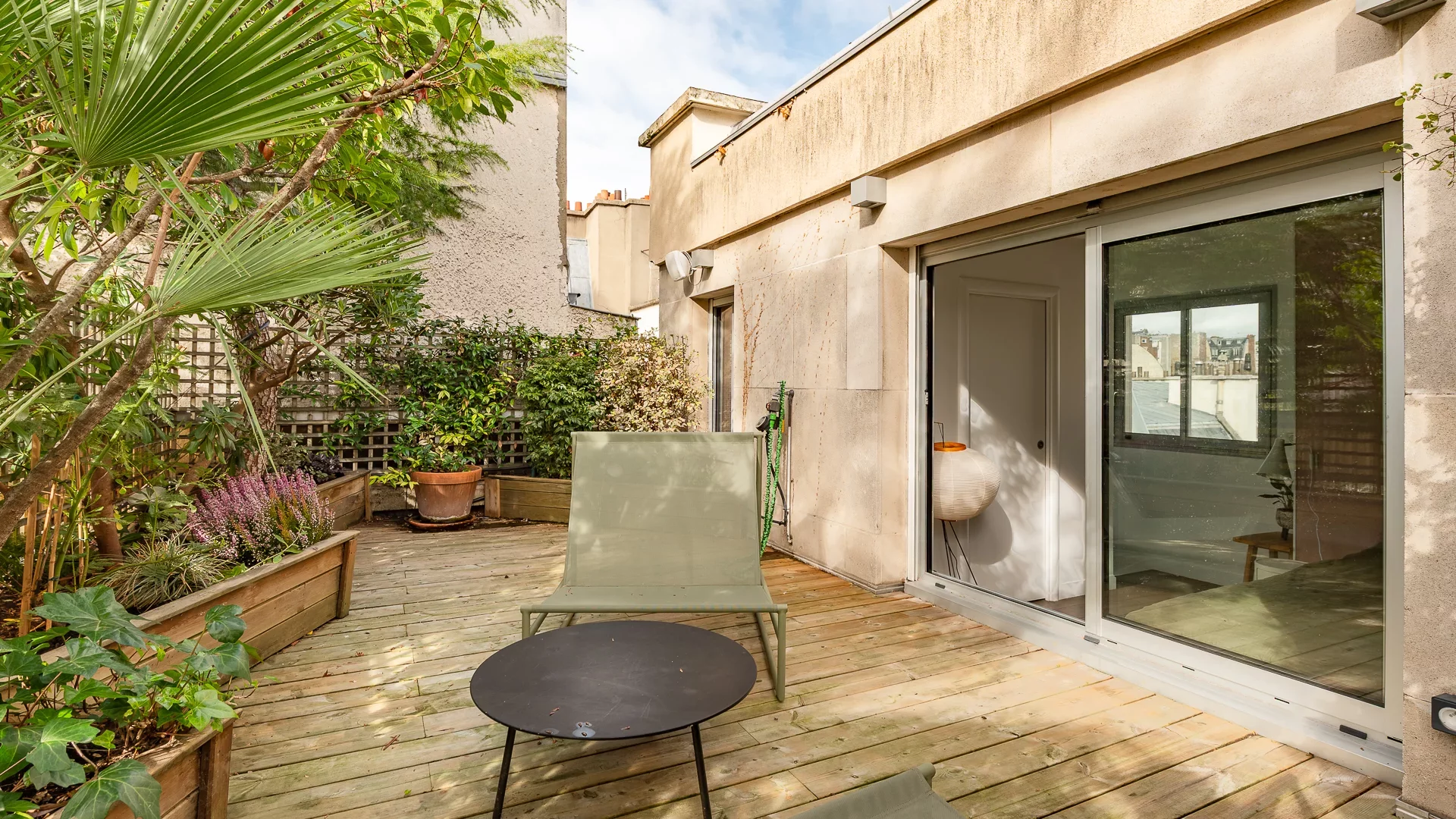 In the heart of the village of Auteuil, nestled on the top floors with elevator of a secure condominium with janitor, located in a private lane, this charming 42.71sqm Carrez two-bedroom apartment is spread over two levels, each benefiting from a south-facing terrace.