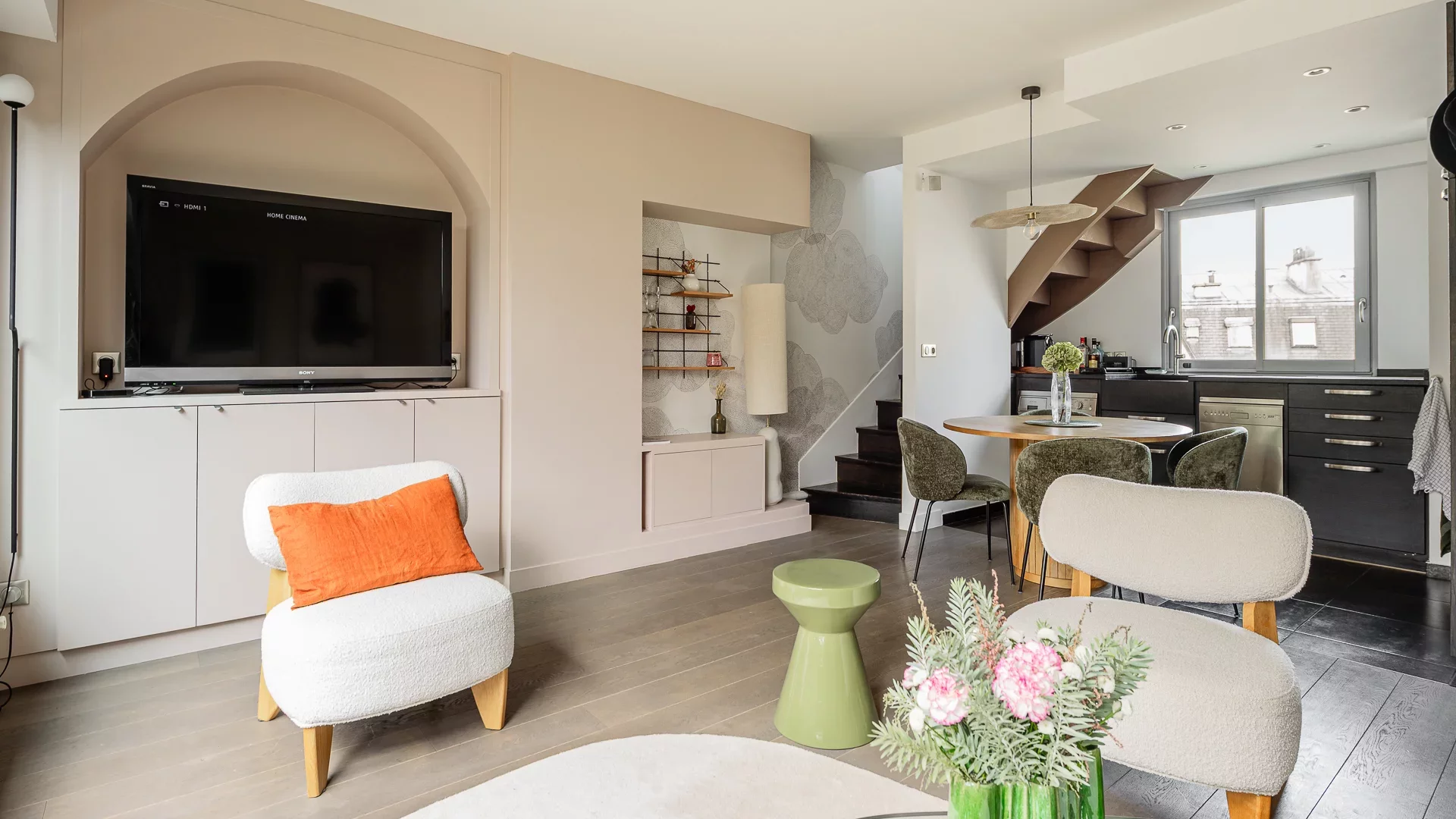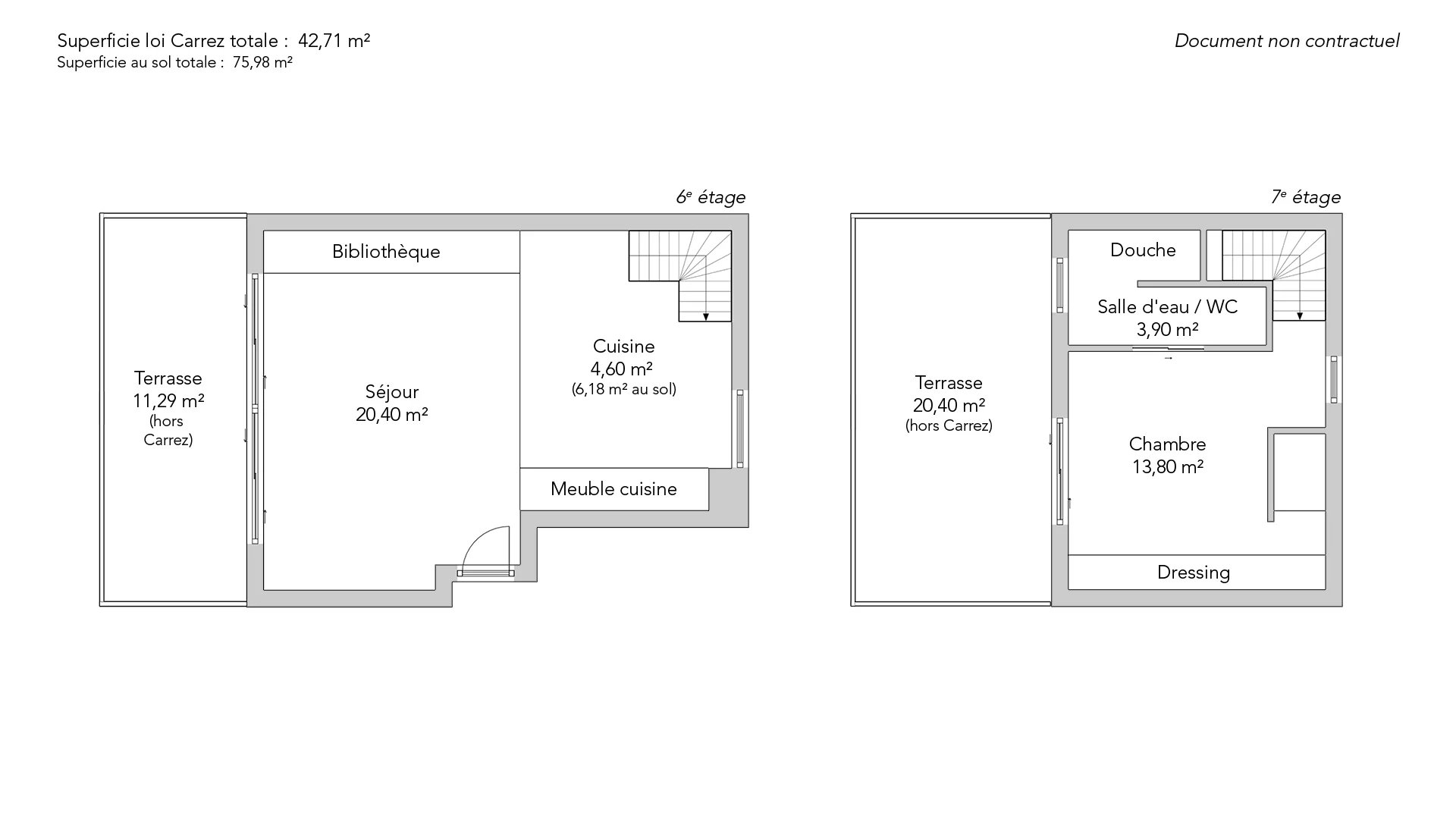 Bathed in light, the sixth floor features a living room with open kitchen opening onto an 11.29sqm terrace. The night space on the seventh floor comprises a large bedroom opening onto a vast 20.40sqm terrace, a shower room with toilet and a dressing room.