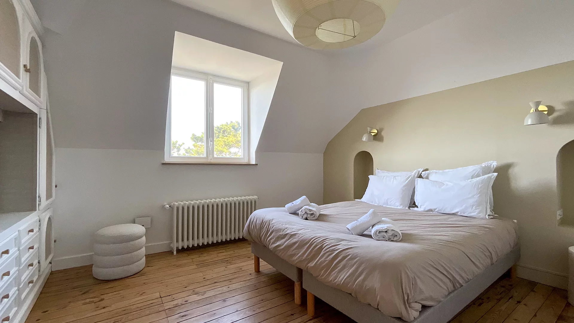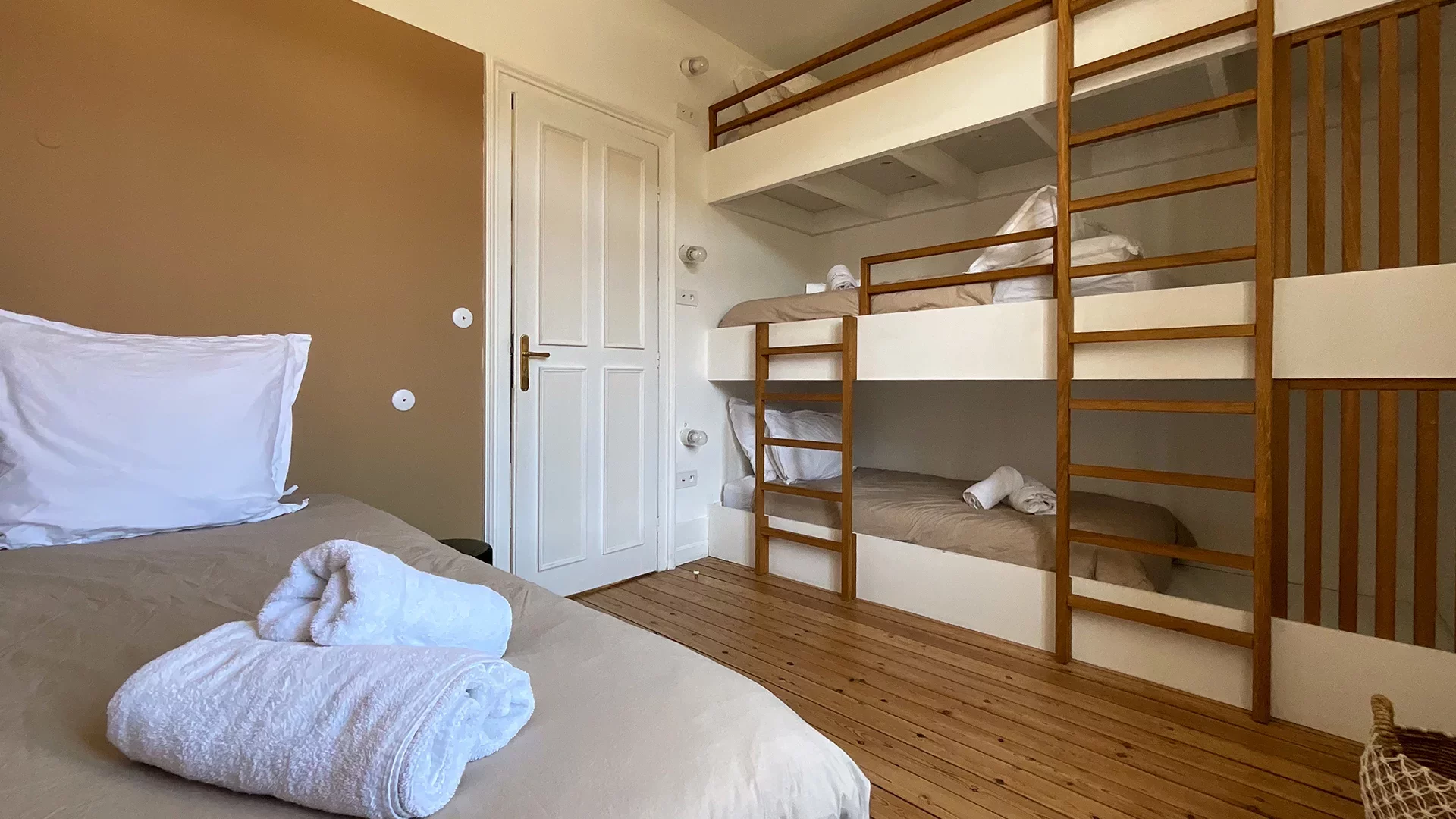 Le premier étage accueille deux suites raffinées, dont l’une avec balcon vue mer, une chambre enfant avec mezzanine ainsi qu’un bureau. Le second étage propose trois chambres supplémentaires, dont une suite vue mer, une salle de douche et un espace enfants.