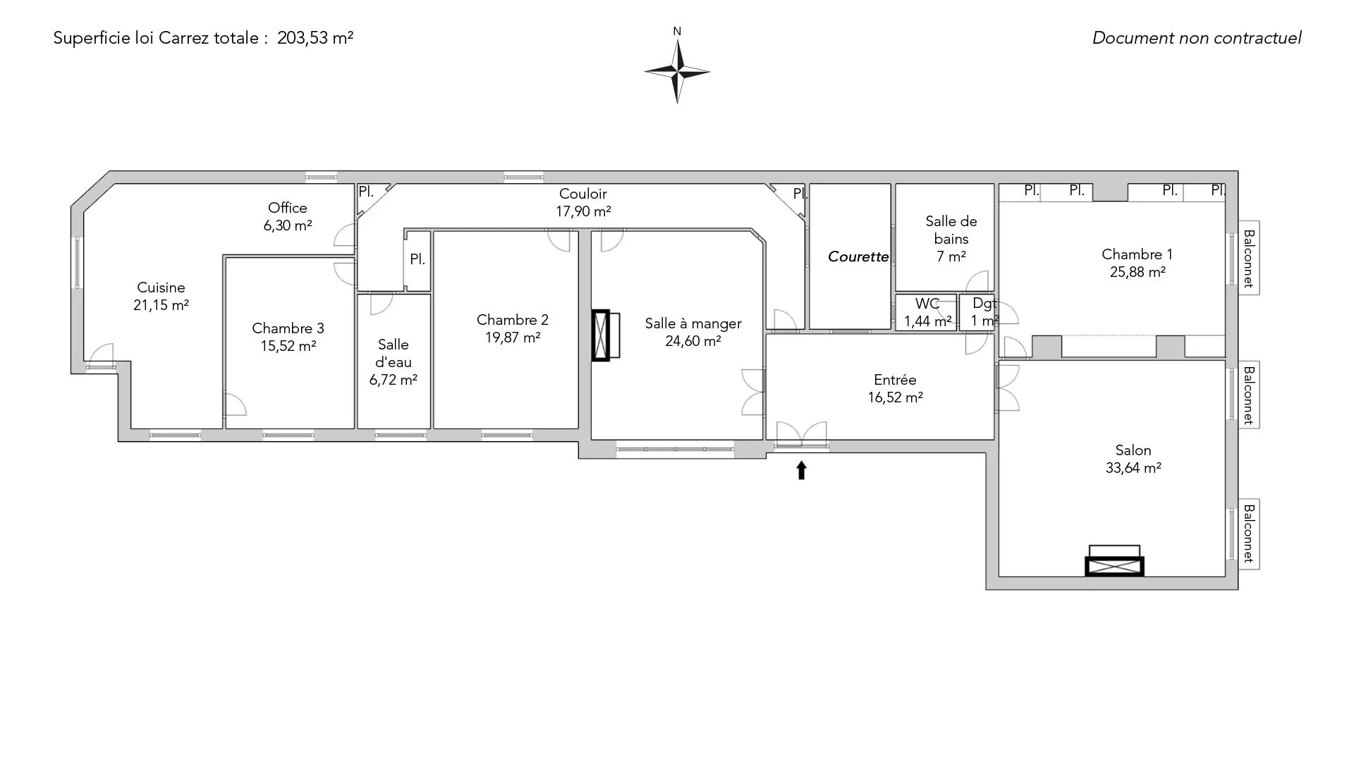 The entrance gallery leads to a pleasant living room, a vast dining room, a kitchen-diner, then to the night space with three bedrooms (with the possibility of creating a fourth bedroom) and a separate toilet.