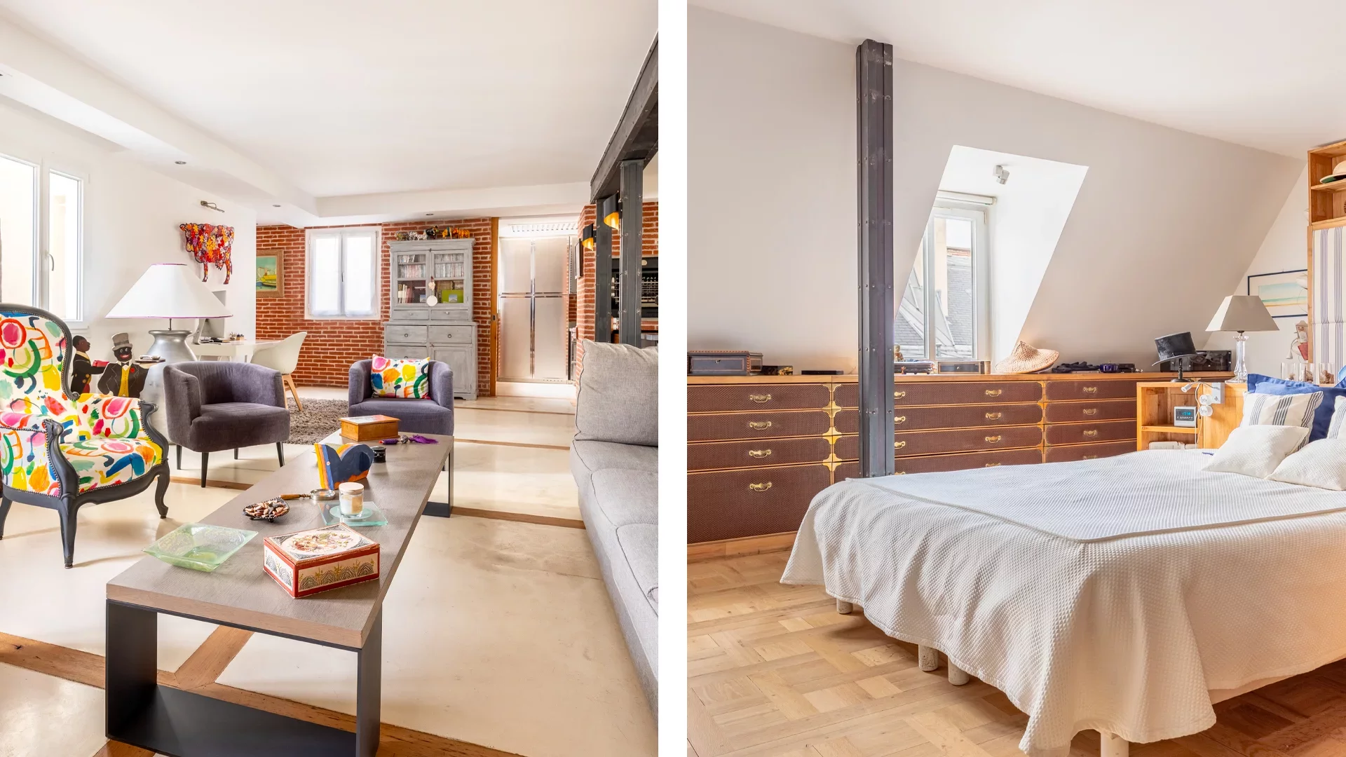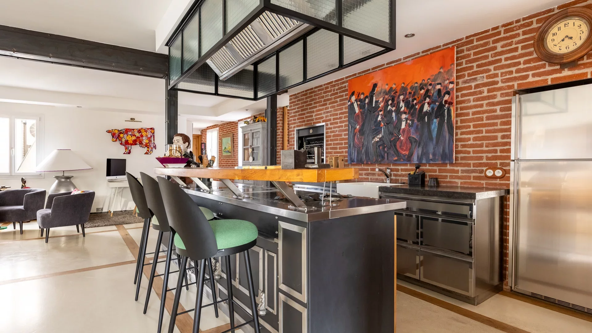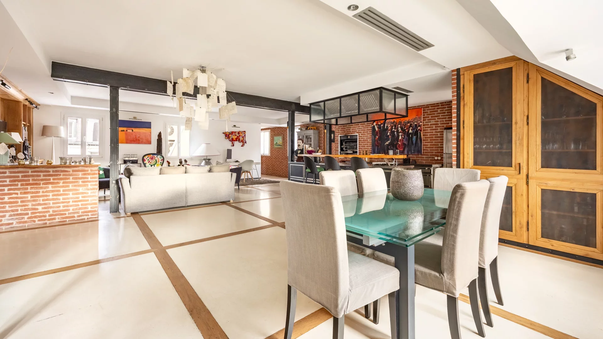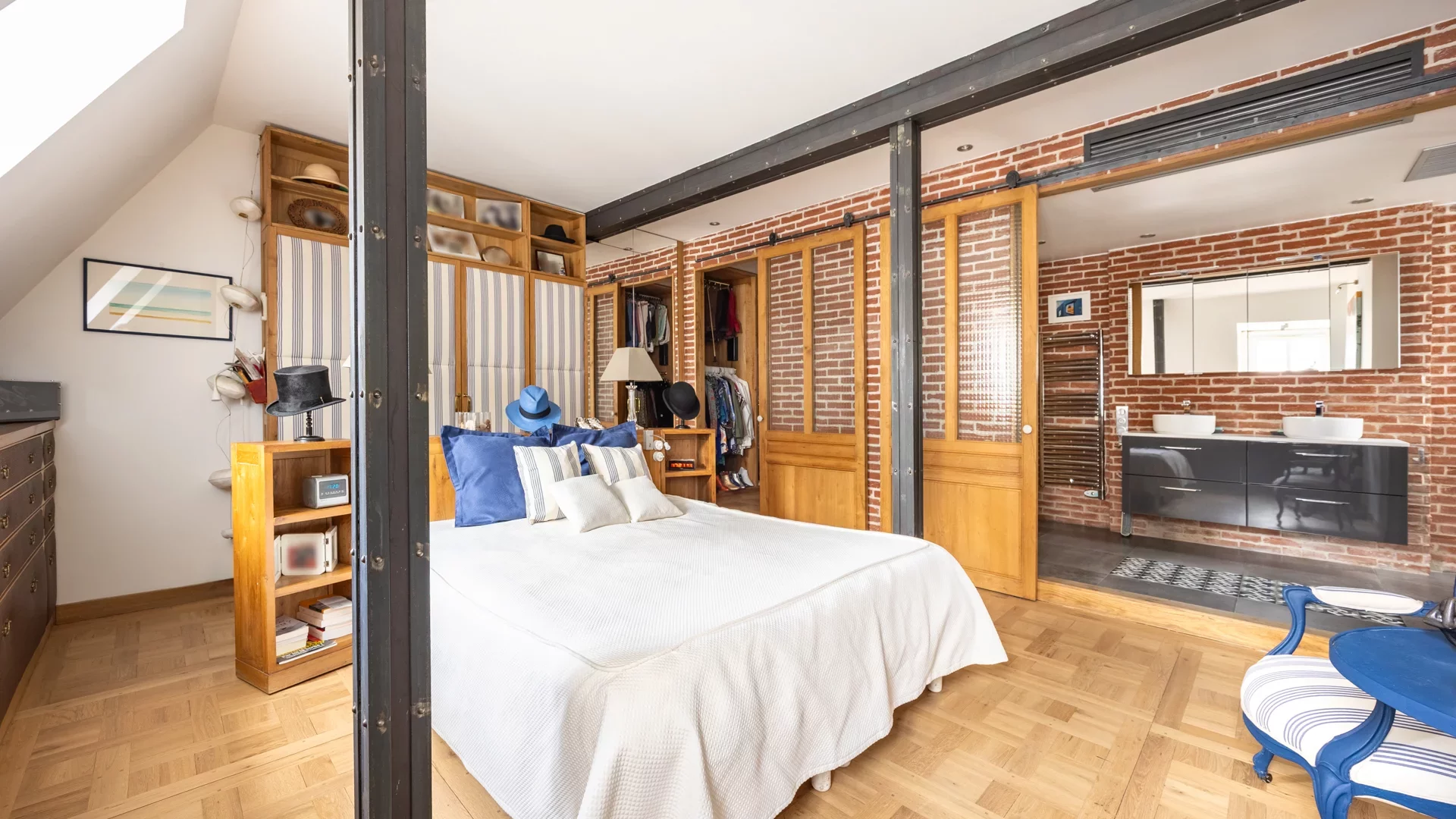 With a surface area of 161.91sqm, it comprises a vast 79sqm double living room with open kitchen, a real convivial living area bathed in light, offering an unobstructed view over the rooftops of Paris.