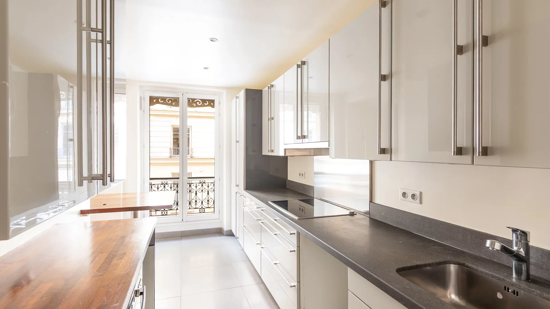 The old-world charm has been preserved: parquet flooring, moldings and fireplace. Plenty of storage space.