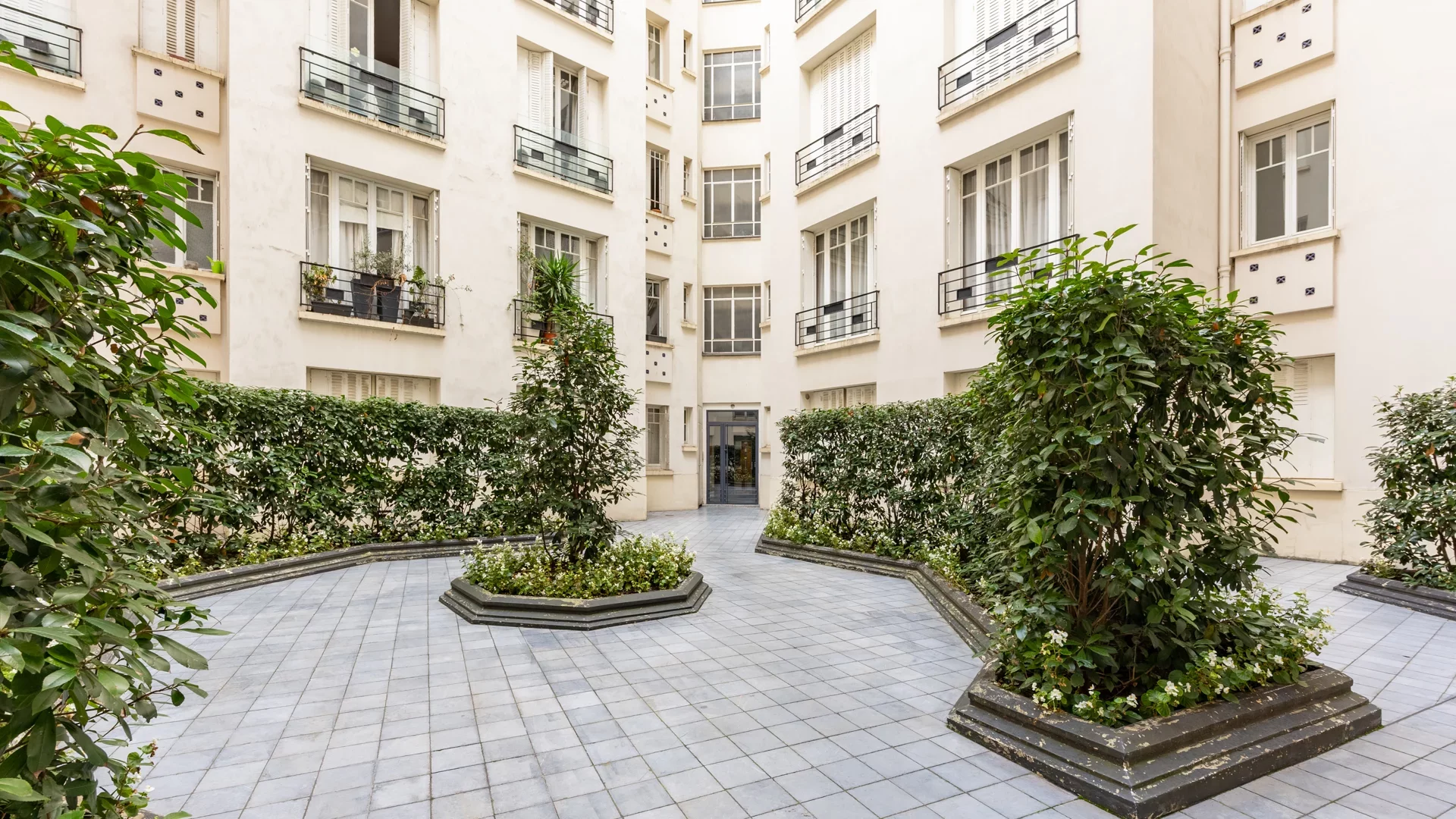 Quietly situated on the courtyard, it comprises an entrance hall, a living room with an open-plan fitted and equipped kitchen, two bedrooms, a bathroom and a separate toilet.