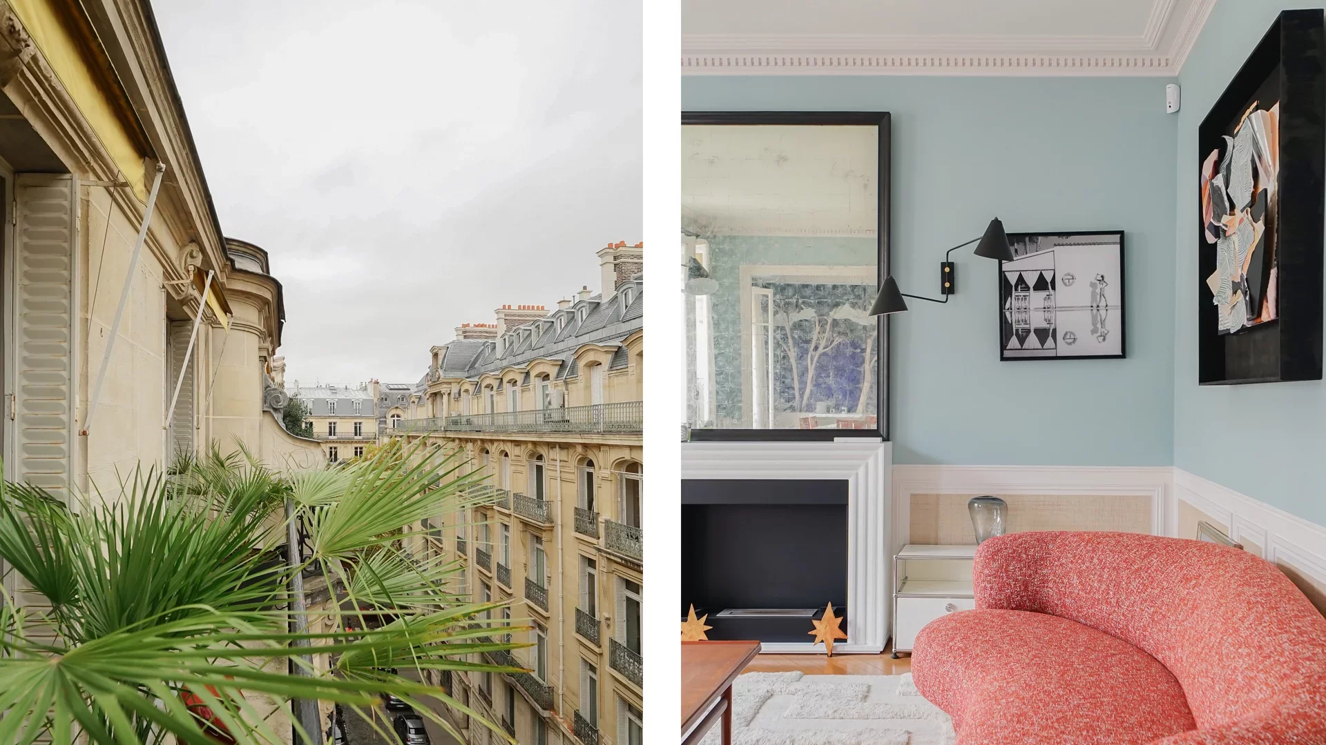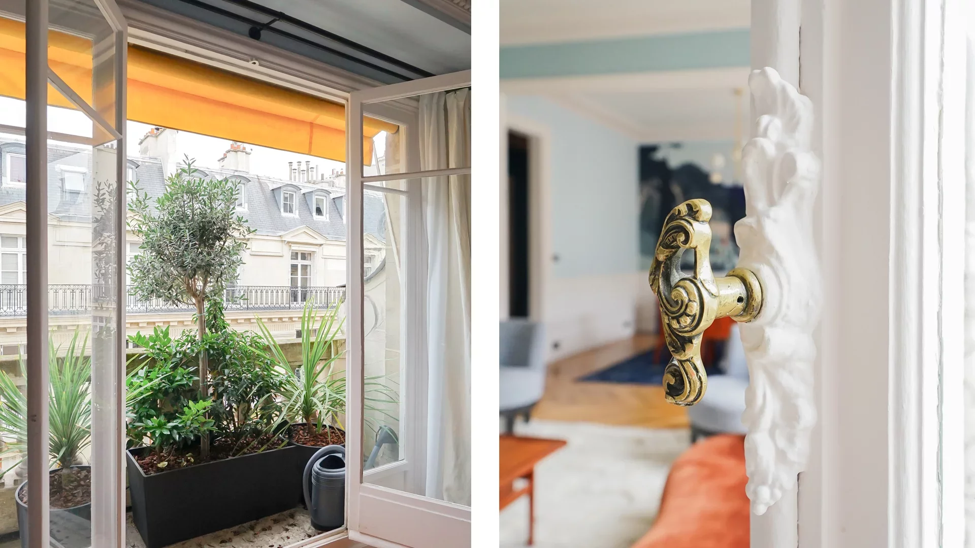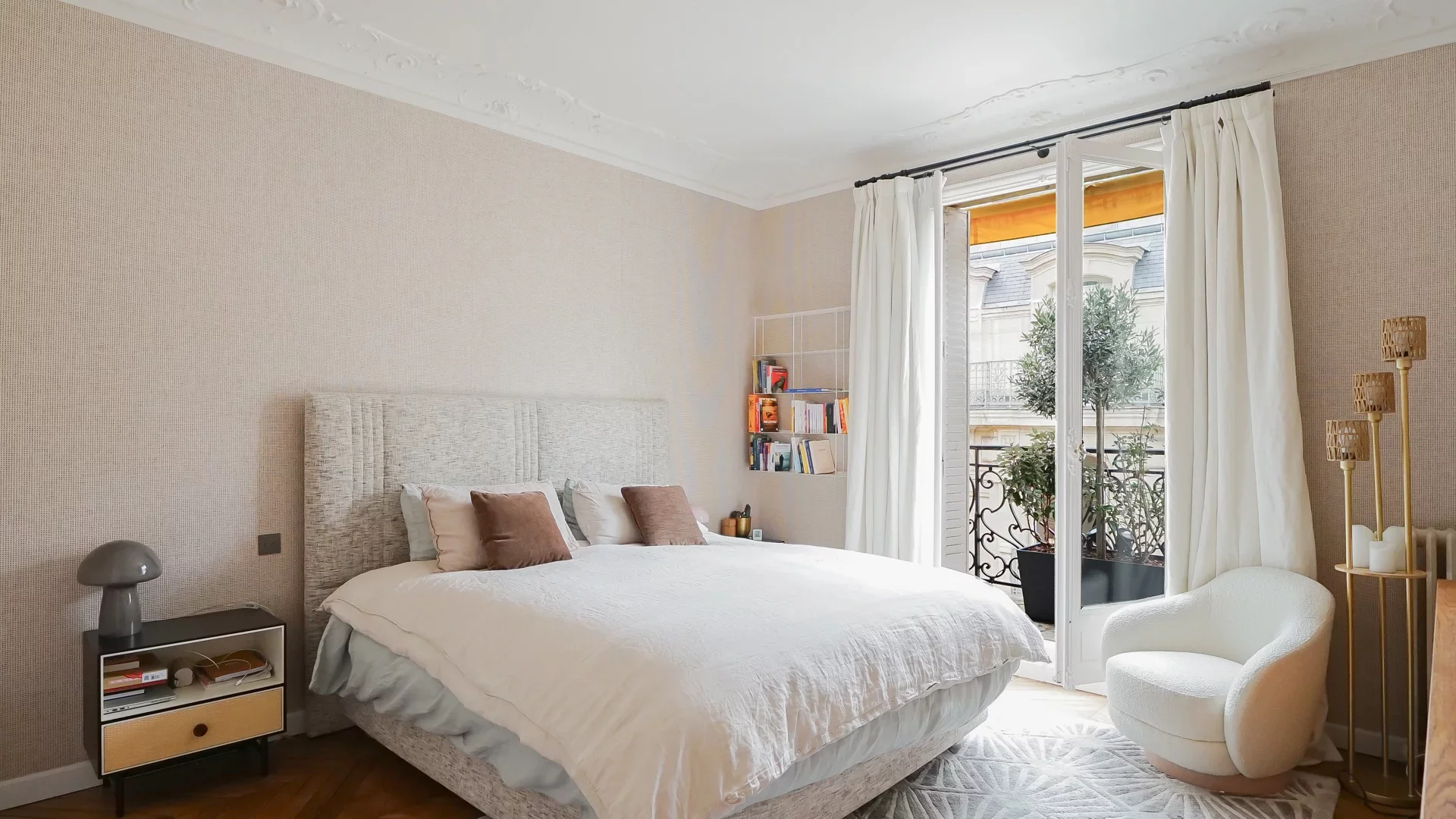 Very high ceilings. Old world charm preserved: parquet flooring, moldings and ethanol fireplace. Beautiful volumes.
