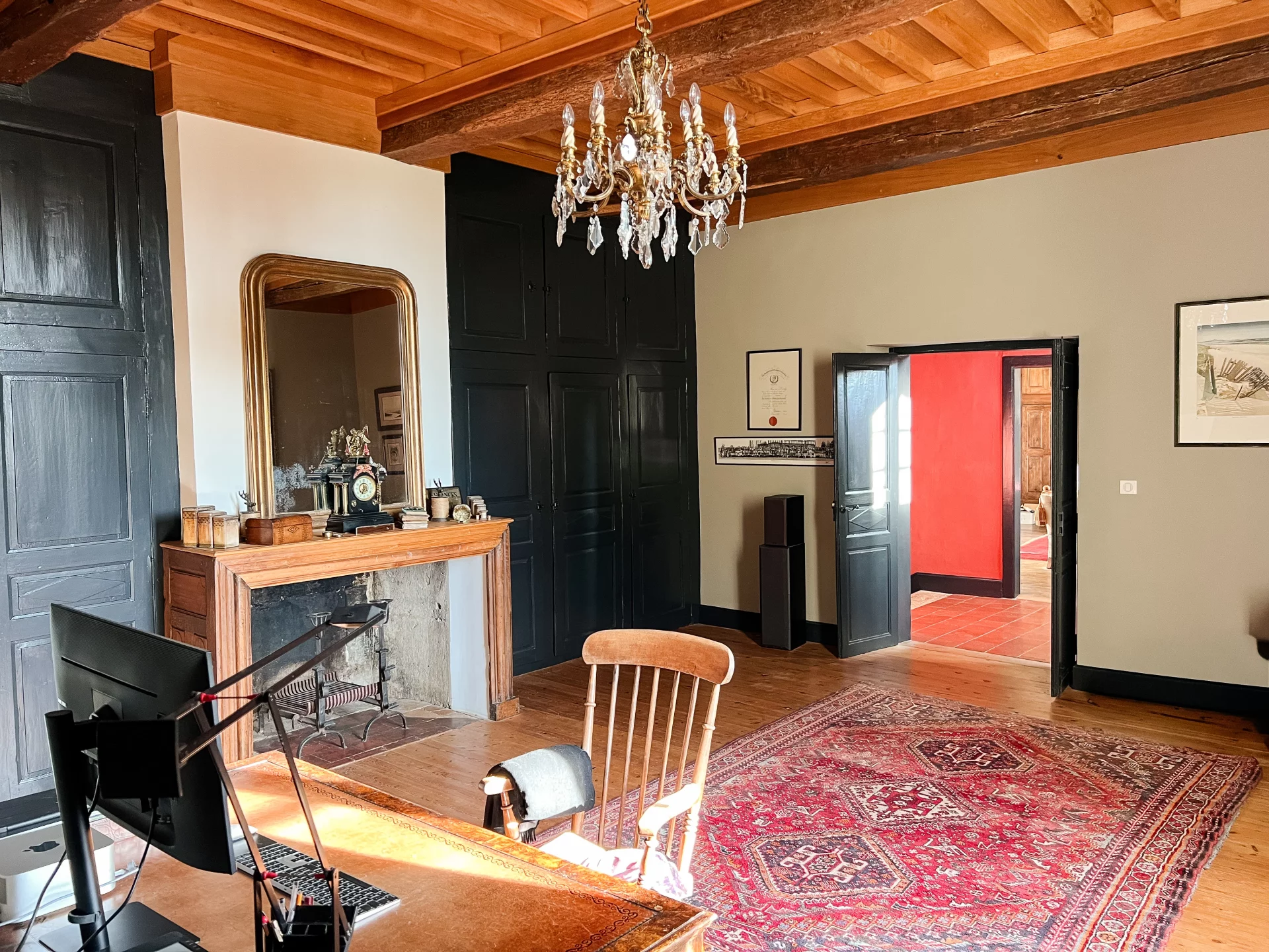 Inside, each room is enhanced by an original fireplace — in marble, stone or wood — each one unique, each telling a part of the château’s soul and history.