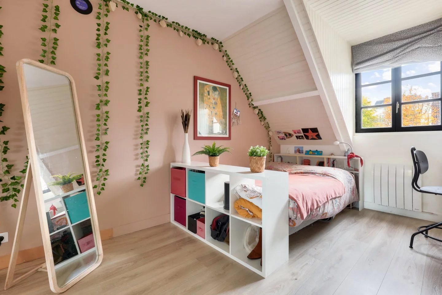 The second floor features a relaxation area, three large bedrooms and a bathroom with shower.