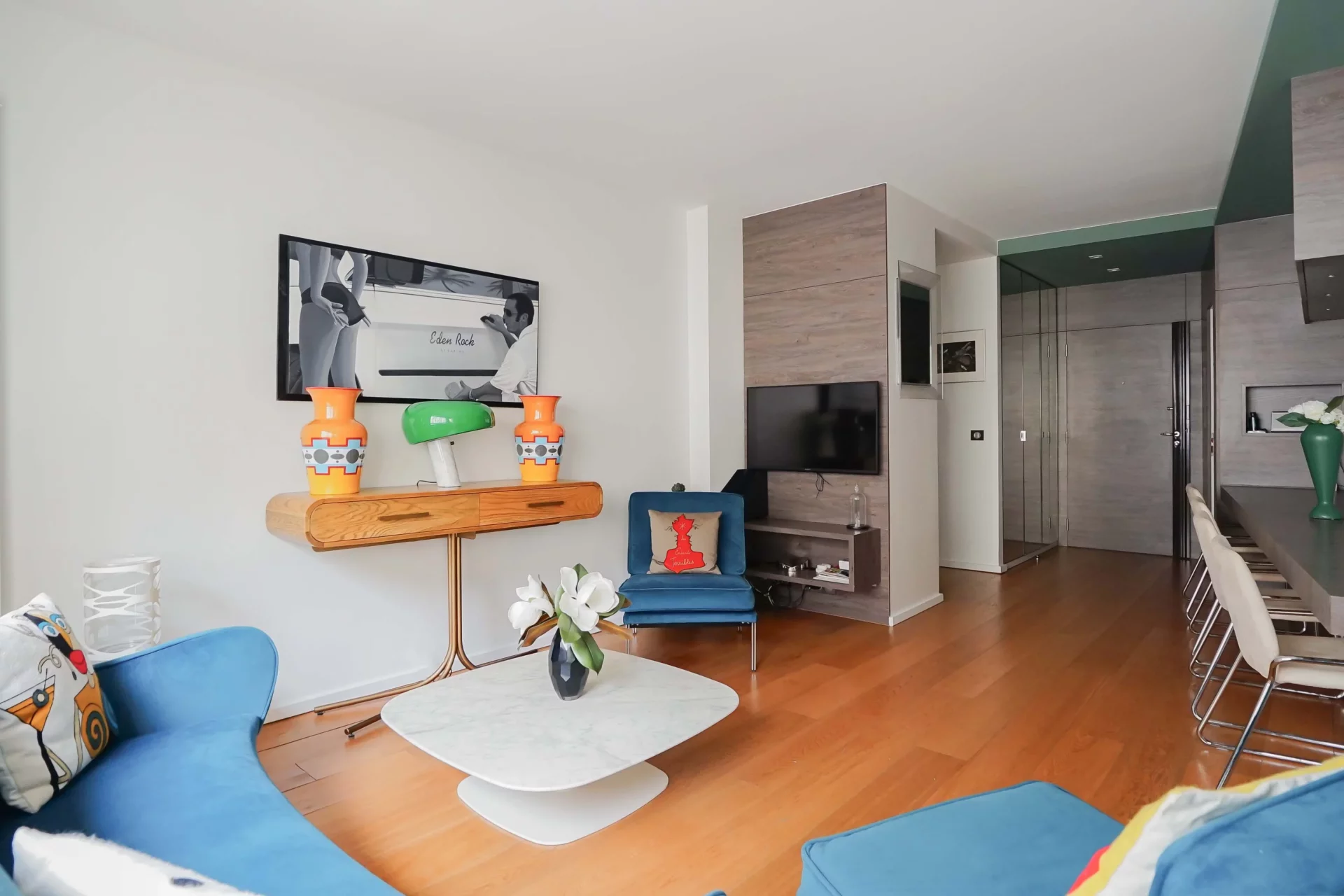 The large windows and optimized layout make this a particularly pleasant place to live. The apartment can be purchased fully furnished.