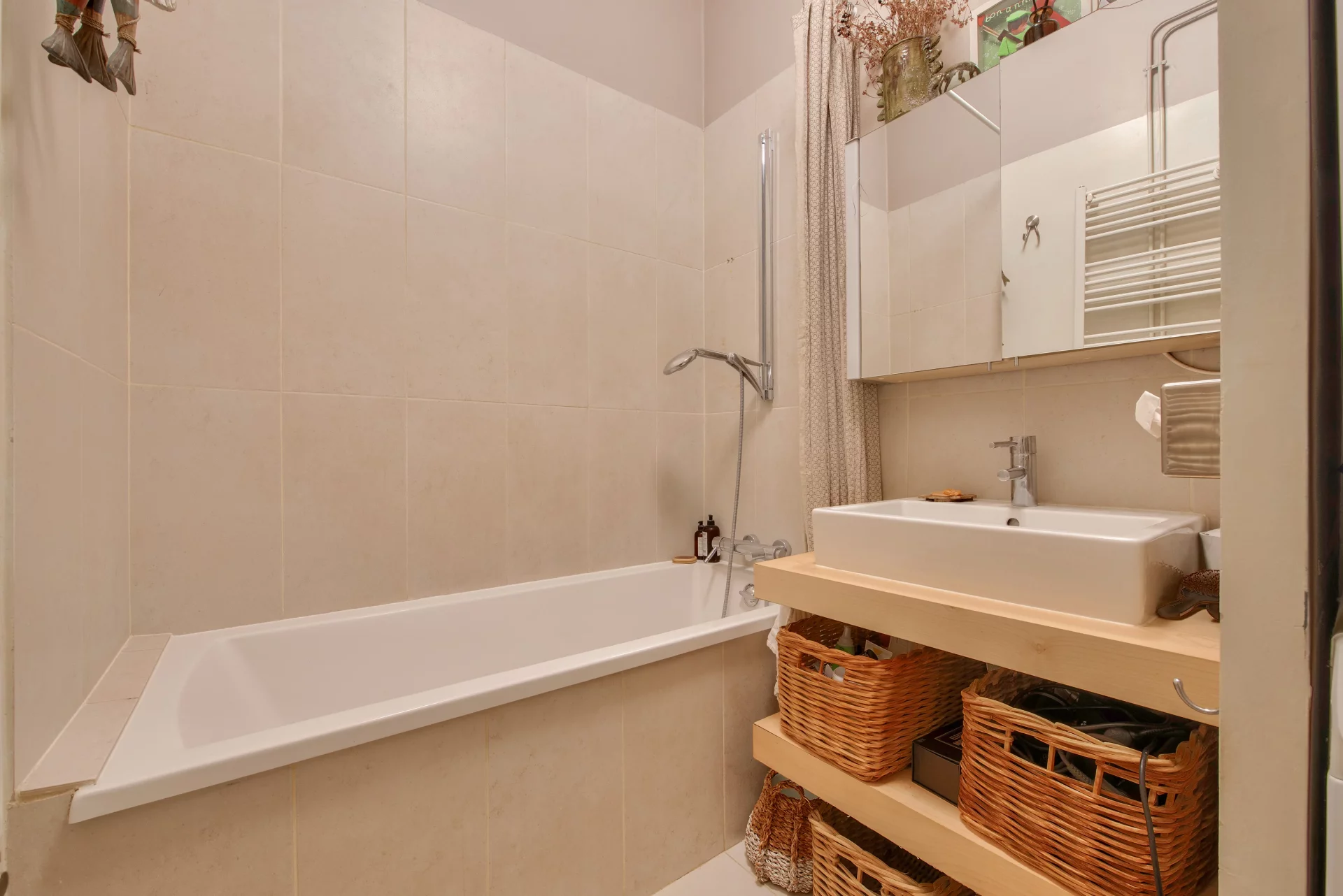 It comprises an entrance hall, a beautiful living room, a dining room (possible fourth bedroom), a separate kitchen, two bedrooms in absolute calm, one with its own shower room and large dressing room, a bedroom with storage space, a bathroom with laundry area and separate toilet.
