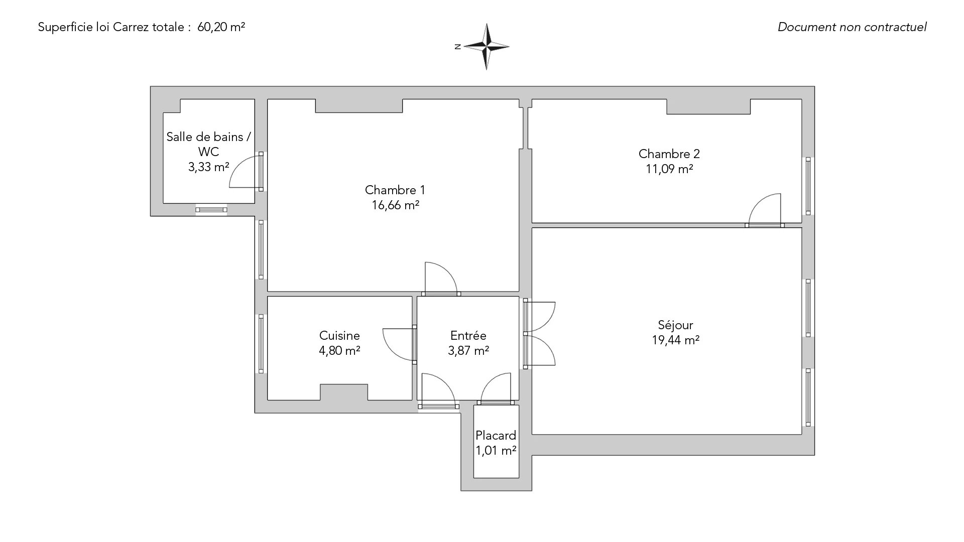Ideally located on the third floor over courtyard of a well-maintained building on Rue d'Enghien, this charming three-room through-apartment has a surface area of 60.20sqm loi Carrez.