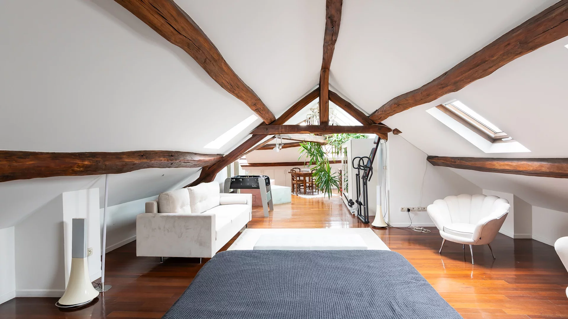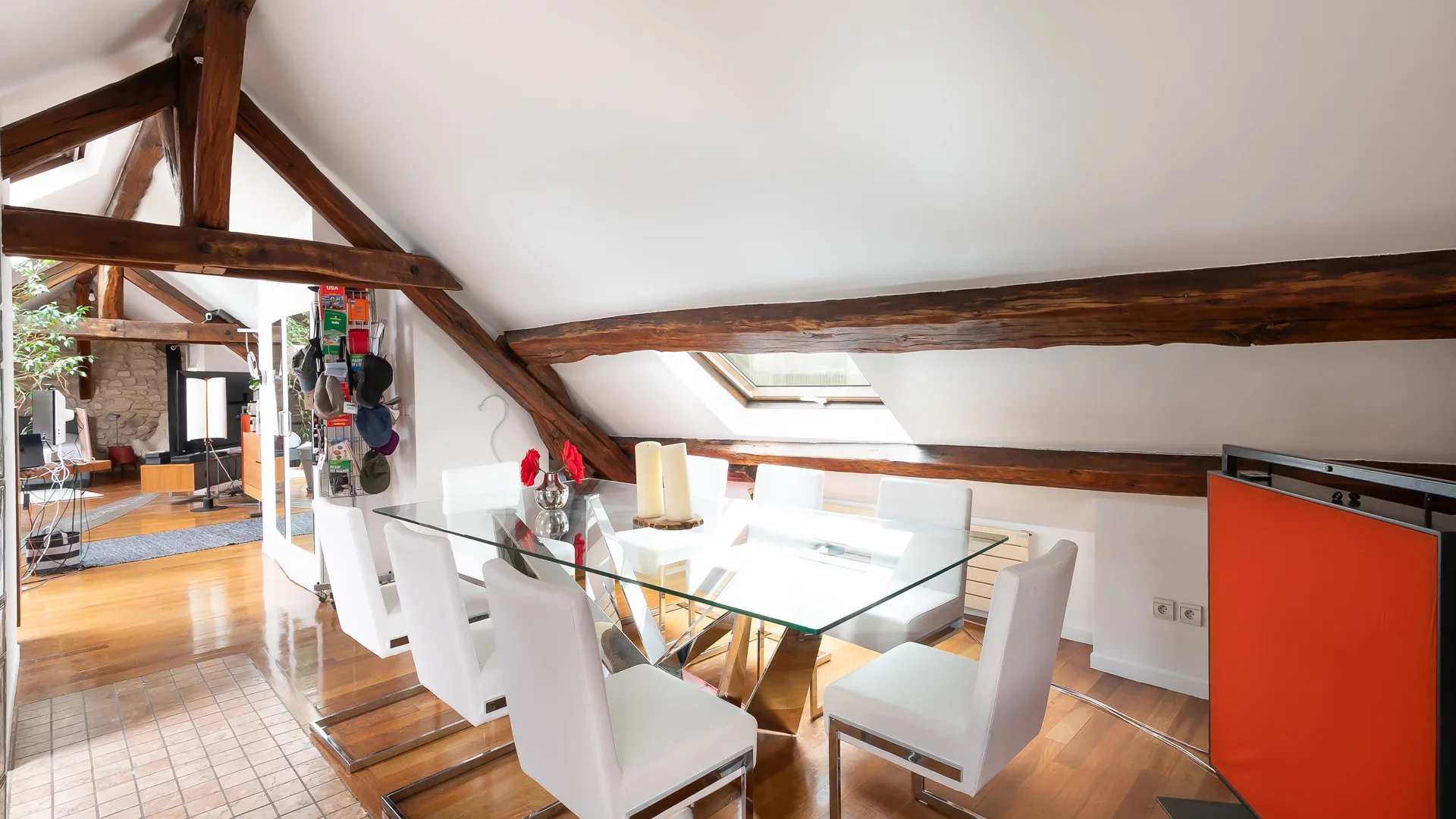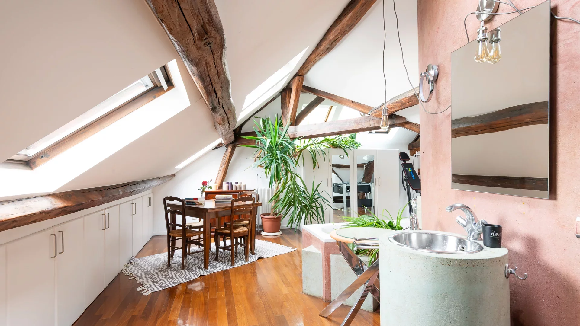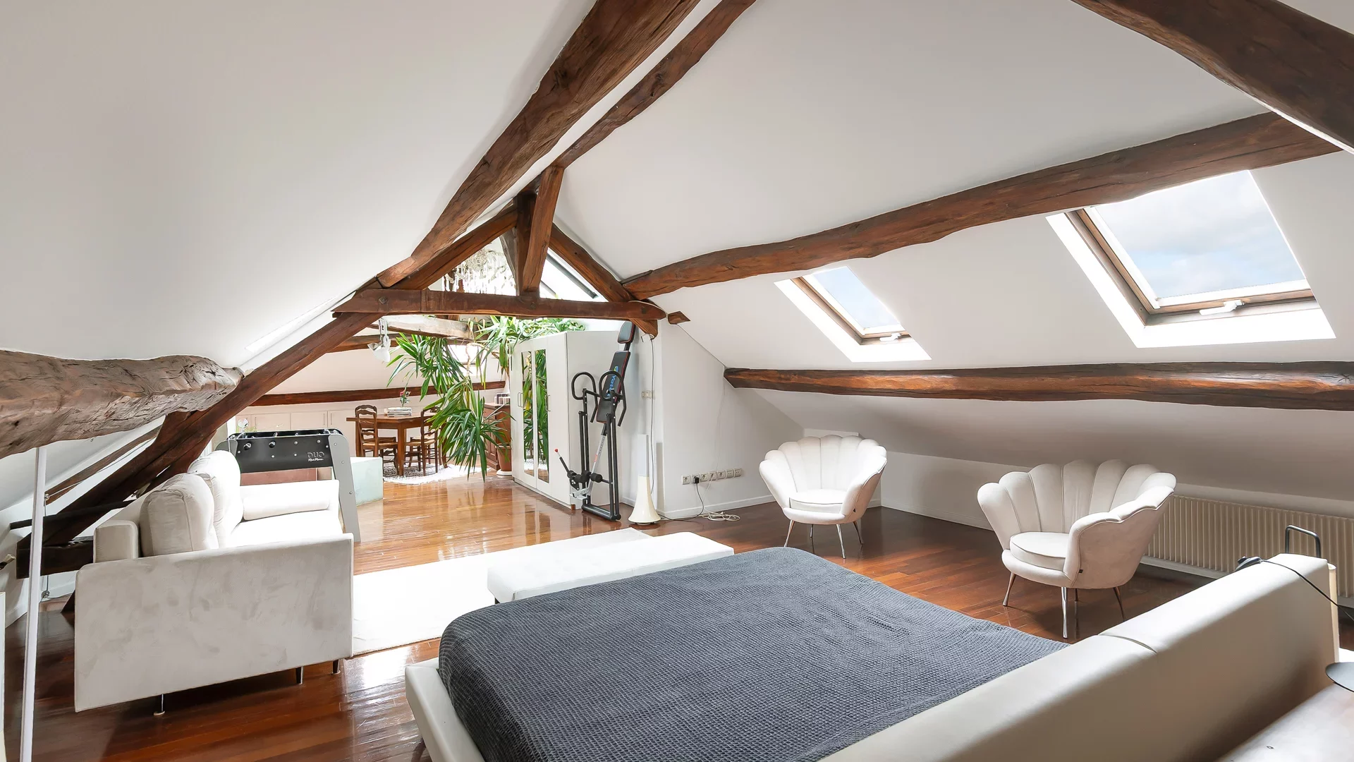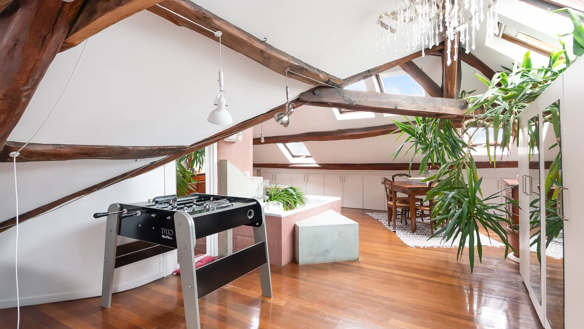 This apartment benefits from abundant natural light thanks to numerous skylights throughout and offers complete privacy.