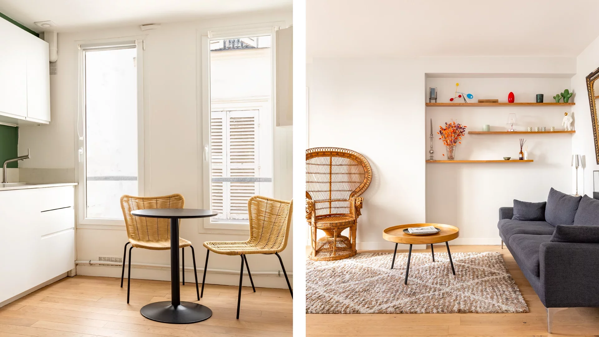 On the second floor of a small, quiet building overlooking a courtyard, 39.31m² furnished apartment (Carrez law).