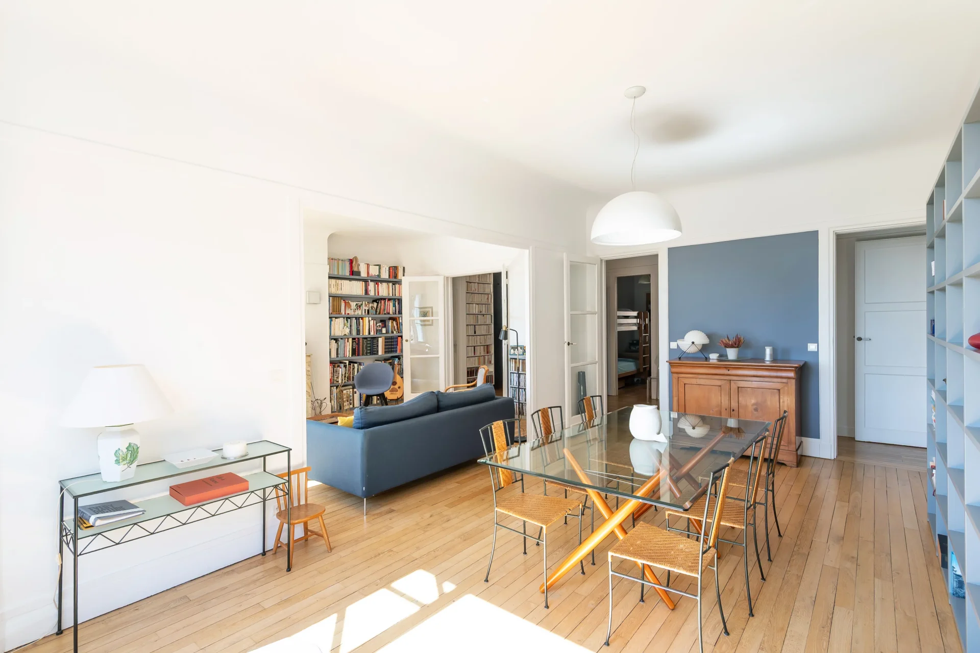 It features a gallery entrance with dressing room, a double reception flooded with light, facing south-west, which benefits from beautiful openings and a pleasant unobstructed view. The eat-in kitchen, fully equipped, opens onto a balcony.