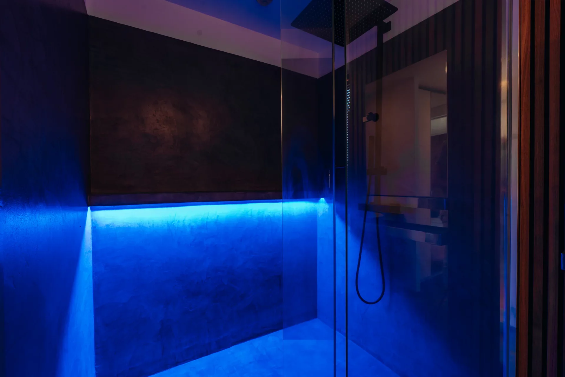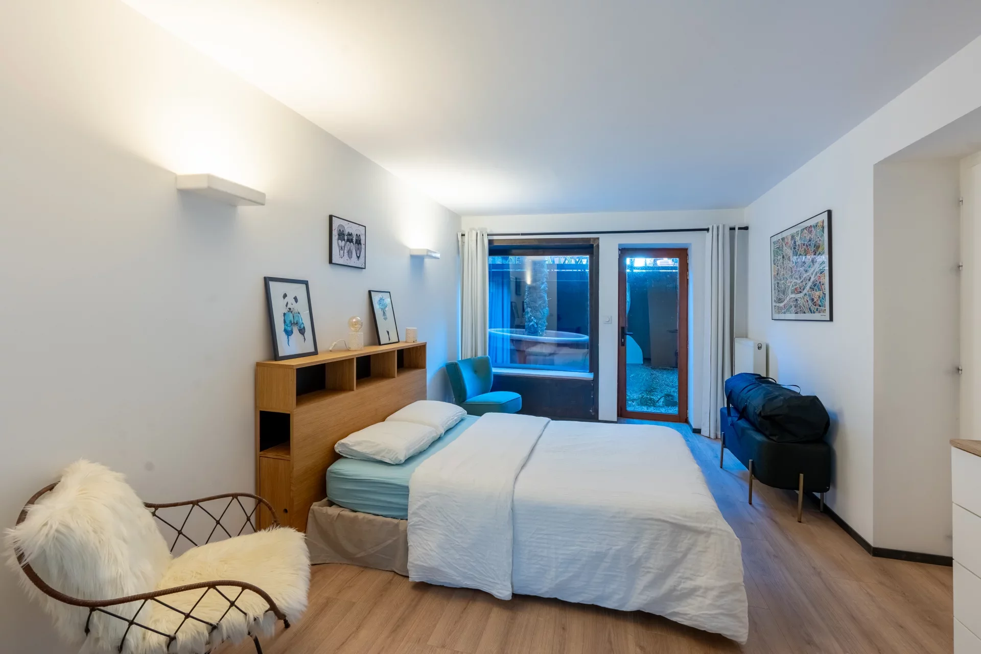 On the garden level, a first sleeping area with 2/3 bedrooms open to the exotic garden, one of which has a private shower room and the second has a mezzanine space, toilet, and bathroom. Outside, an independent studio with living room, toilet, bedroom, and bathroom.