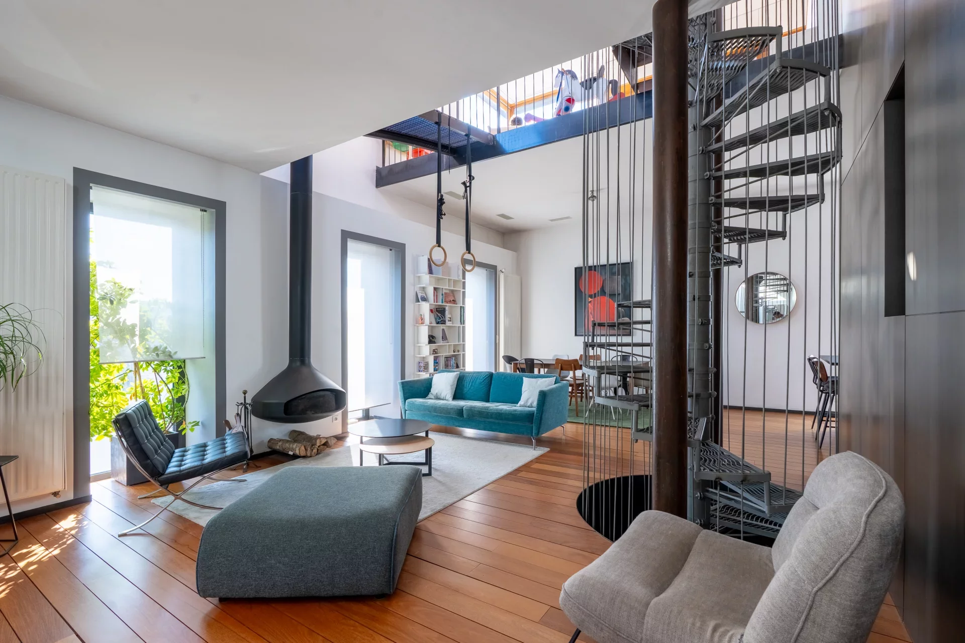 Designed by the In Situ agency, this house is not just a living place but an architectural manifesto, structured in successive layers, from the tropical garden below to the 360° viewpoint on the roof offering a magnificent view of the Loire, the Titan crane, and the Nantes horizon.