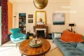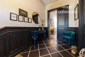 On the first floor, the entrance is via a large two-level vestibule with granite steps, which opens onto a hallway with an elegant wooden staircase leading to the various levels of the house. On the right is a bright, spacious double reception room, where antique fireplaces and period parquet flooring create a warm, refined atmosphere, with 3.20m high ceilings. The room opens onto a colorful cement-tiled terrace overlooking the garden. Extending from the entrance hall, a vast fitted and equipped kitchen opens onto the garden and terrace, providing a pleasant extension to the living space.