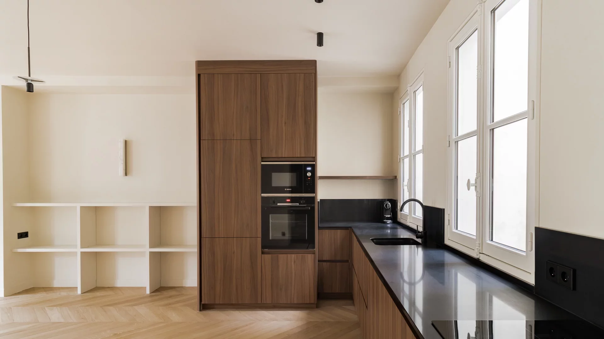 Located on the second floor by elevator of a beautiful old building with janitor, magnificent family apartment of 105,26sqm loi Carrez entirely renovated by architect.