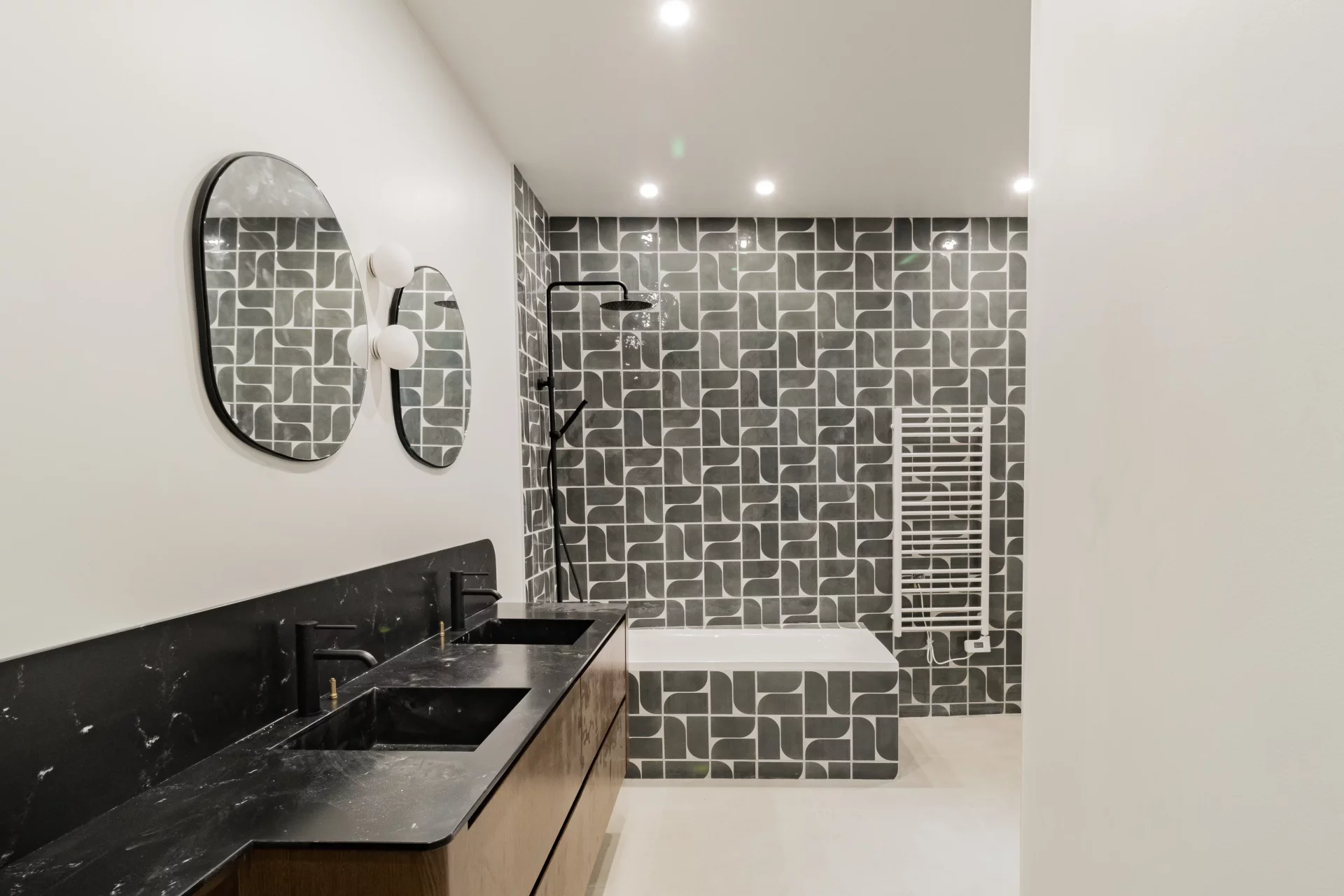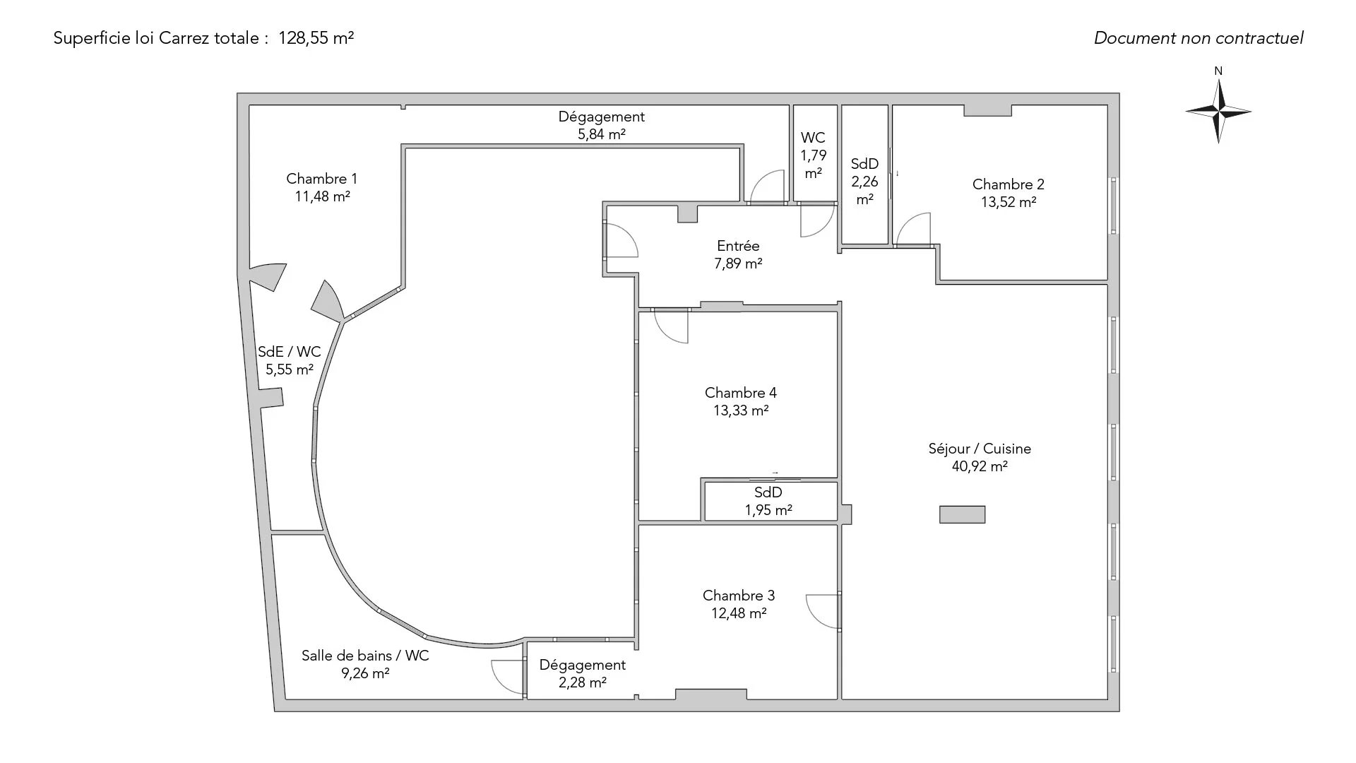 Located on the second floor of a beautiful old building, this 128.55sqm loi Carrez family apartment has been entirely renovated by an architect.