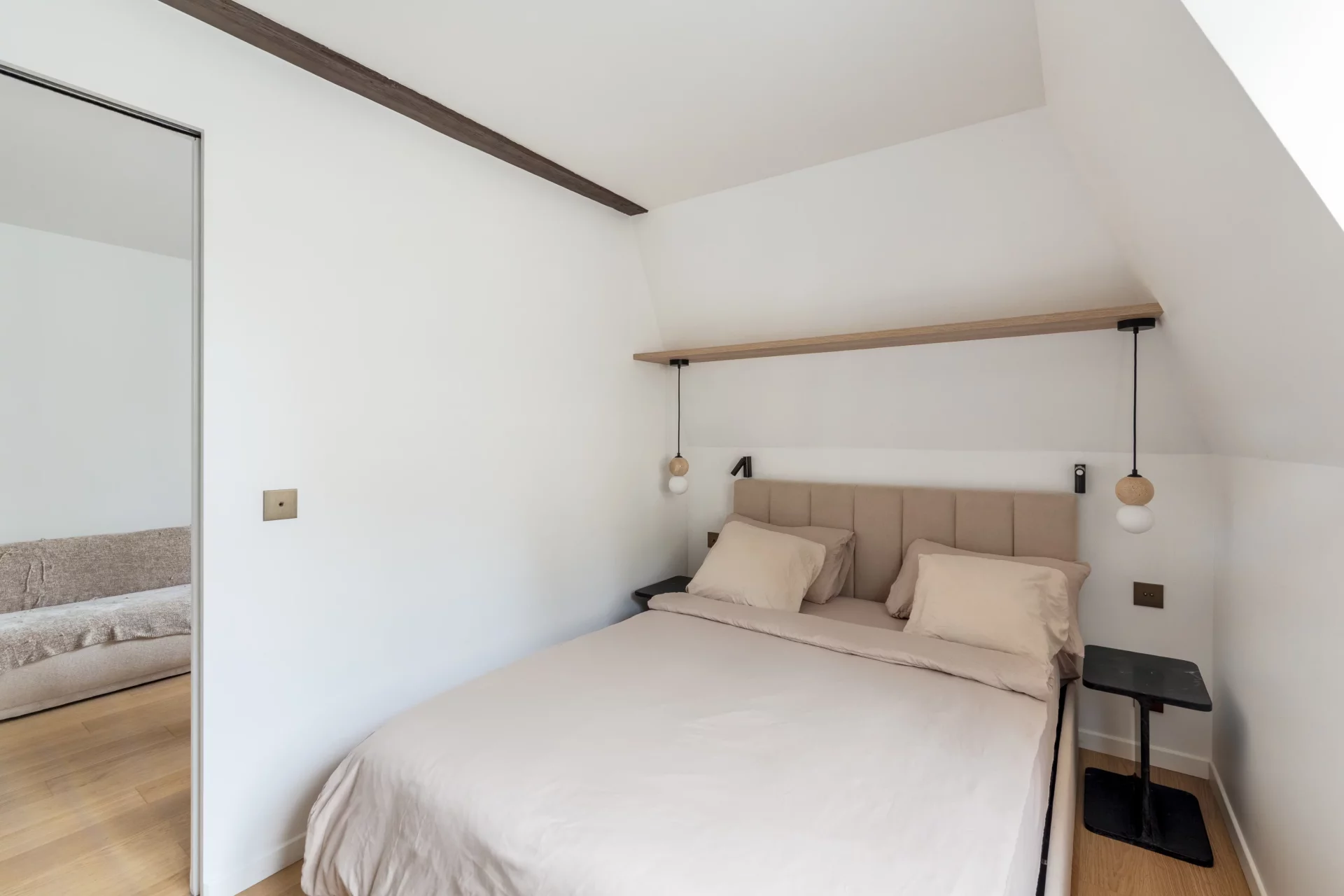 Entirely redesigned by an architect, it comprises a pleasant west-facing living room, an open kitchen with plenty of storage space, a bedroom with its own shower room and a separate toilet.
