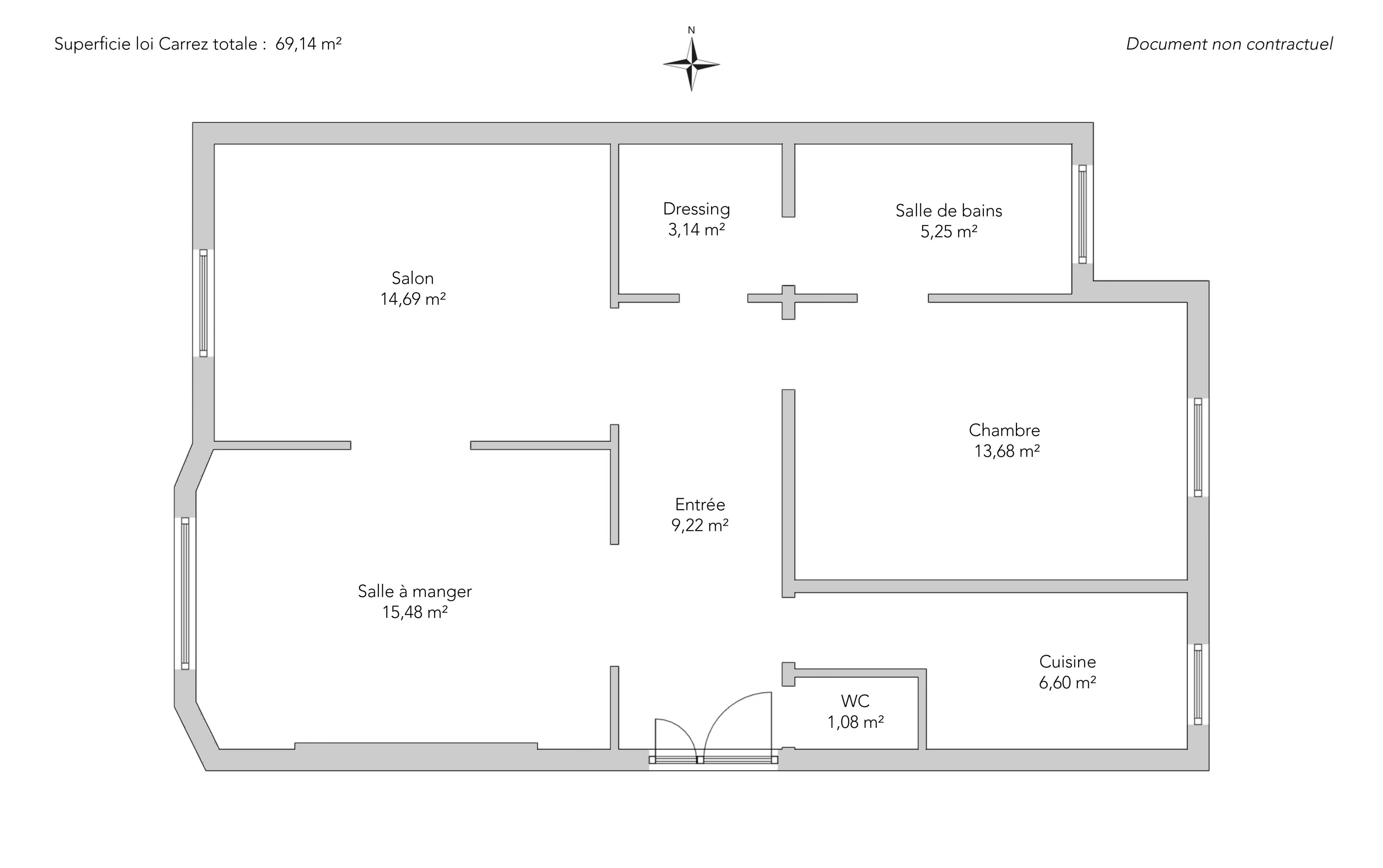 Located on the second floor by elevator of a prestigious old building, this 69.14sqm loi Carrez apartment is in very good condition and has preserved all its original charm: original parquet flooring, moldings and fireplace.