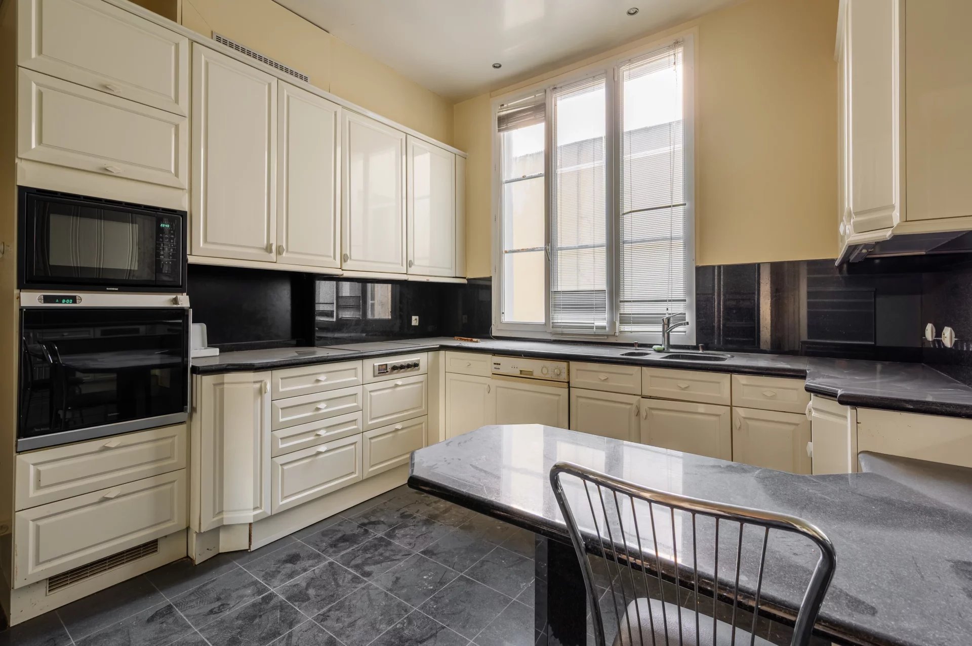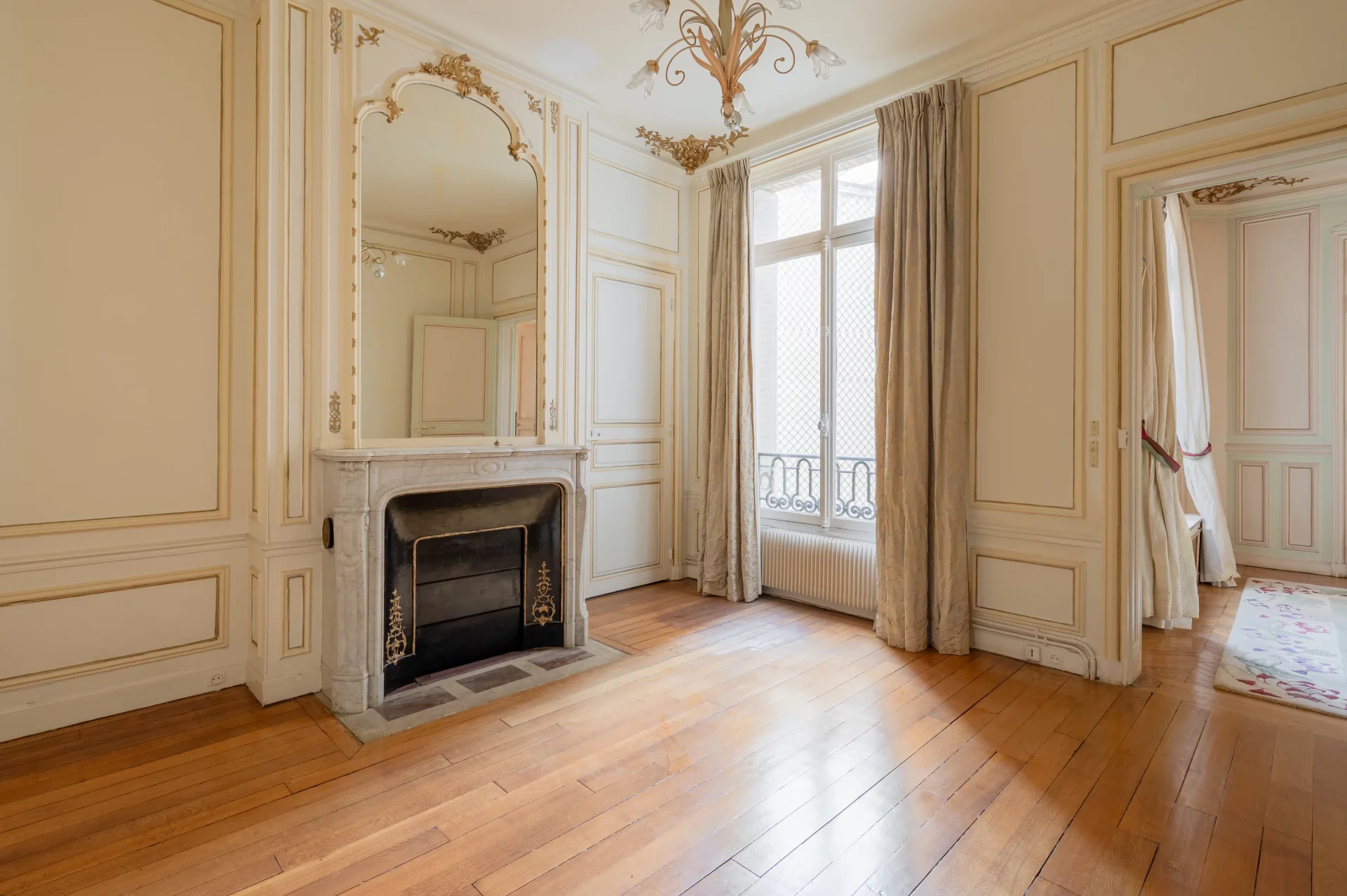 Situated on the second floor by elevator, this through-planning, absolutely quiet apartment will seduce you with its location, its preserved old-world charm (herringbone parquet flooring, fireplaces and attractive moldings) and its spaciousness thanks to its 3.20m high ceilings.