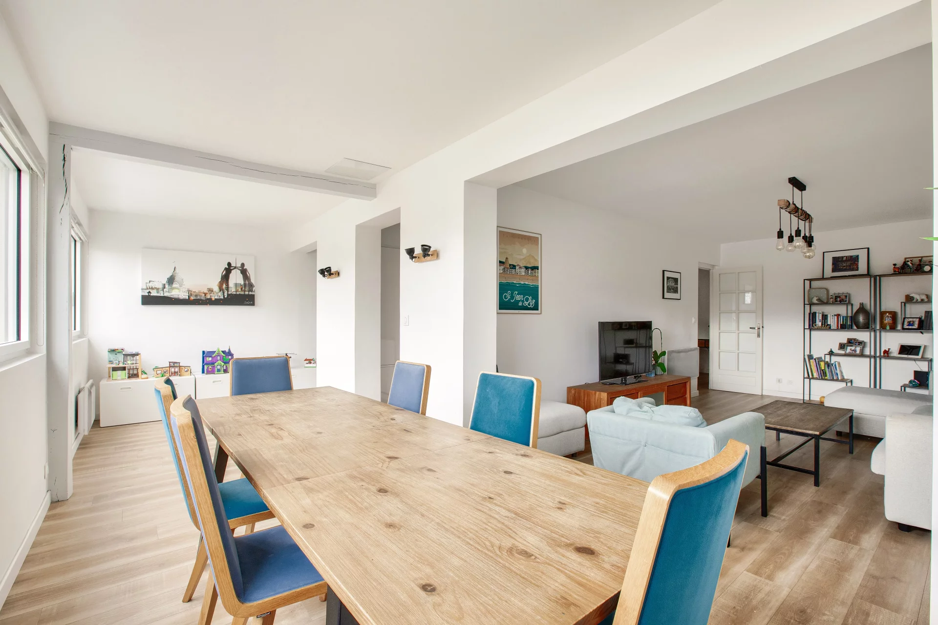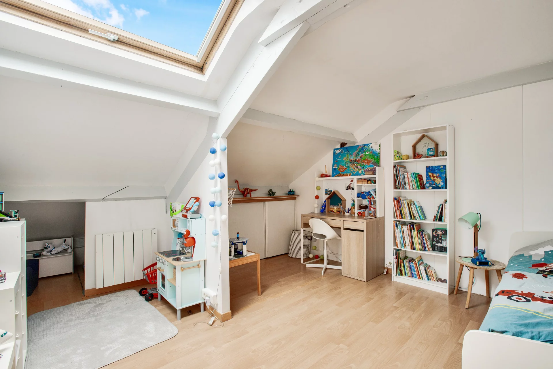 À l'étage, un palier dessert deux chambres de plus de 25 m² et 19 m², une spacieuse troisième chambre dotée de son dressing ainsi qu'une salle de douche avec toilettes et espace buanderie.
