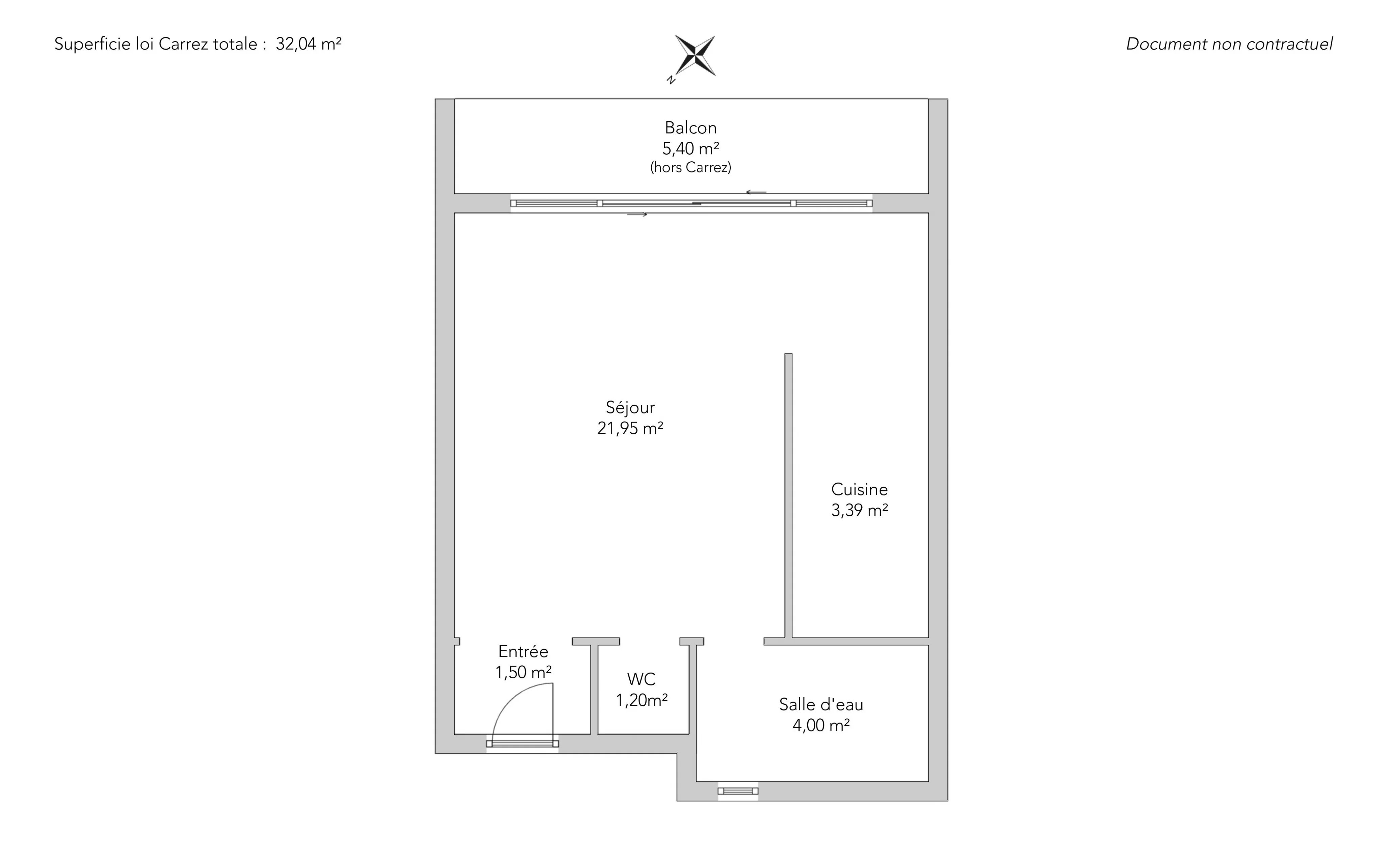 On the third floor of a building with elevator, this 32.04msqm loi Carrez studio features a 5.40sqm balcony with southeast exposure and unobstructed views.